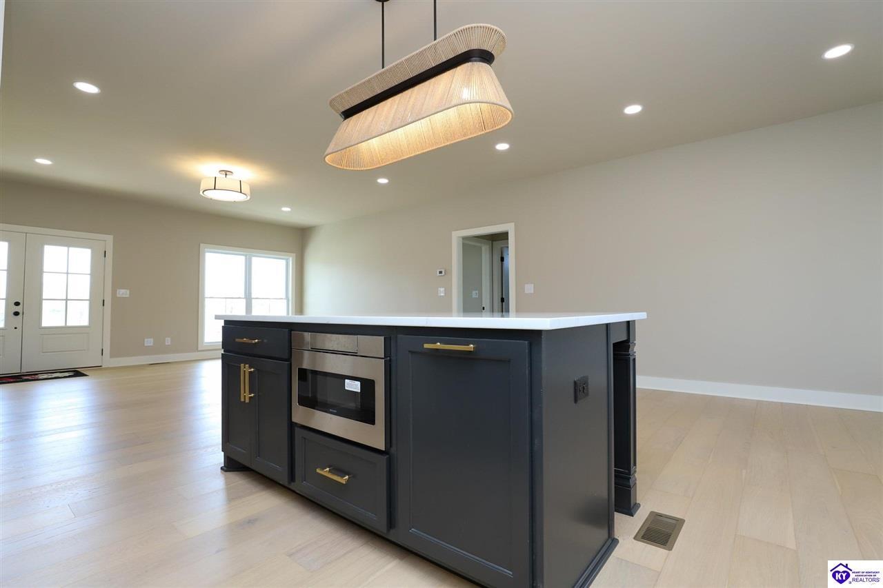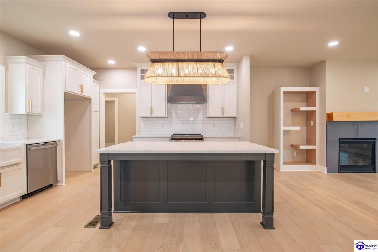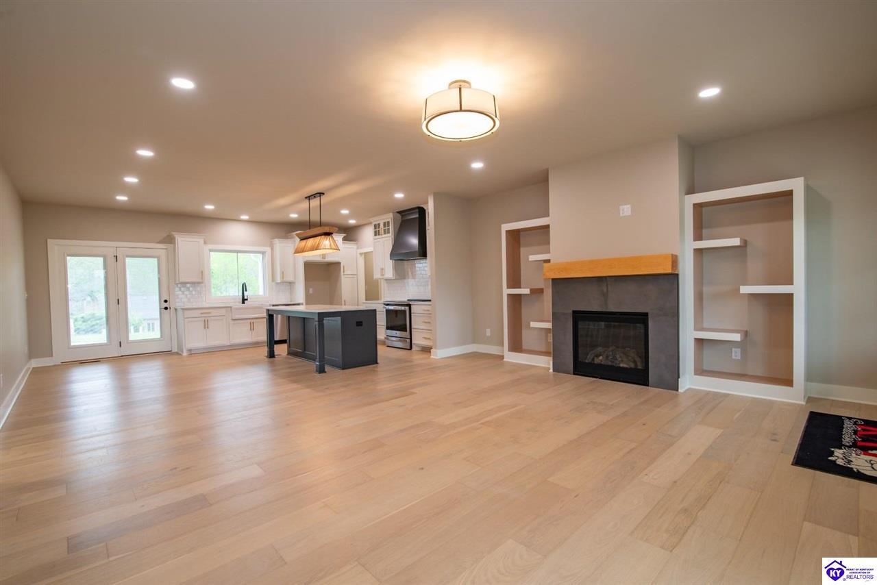 Realtor's notes: Beautifully upgraded and stylish! Quality and luxury surround you within this beautifully appointed ranch style home, that is located in Briarwood Forest! This well-crafted home is on a desirable corner lot, has an abundance of natural light from the large windows, high ceilings and elegant hardwood floors that flow seamlessly from room to room. The heart of this home is the gourmet kitchen, featuring custom cabinetry from Walter's Cabinets, high end appliances, a large farm sink, a center island and enough counter space to create your culinary masterpieces. The open concept layout effortlessly connects the kitchen to the spacious dining and living areas, ideal for hosting family gatherings or cozy evenings at home. Retreat to the luxurious primary suite, where you’ll find a beautifully appointed bathroom complete with modern finishes, a soaking tub, a separate tiled shower and a 12x8 walk in closet. Each of the additional bedrooms offers ample space and comfort, perfect for family or guests. Other features of the home include a natural gas fireplace, an oversized walk-in pantry, a split bedroom floor plan and a large laundry room only steps away from the primary suite. The exterior of this home is extra special to include an oversized covered front porch and covered patio area for relaxing or drinking your morning coffee. All of this and the home has a full basement for the future expansion of your living space as well as the garage has wiring for a future car charger! The builder will provide an allowance for mirrors and will work with the buyer on the pantry & closets shelving layout. Schedule your viewing today!