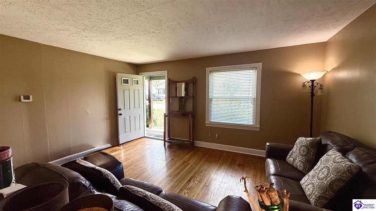 Realtor's notes: Nestled on a spacious .46-acre lot in a quiet, established neighborhood, this Bardstown, Ky home offers 3 bedrooms and 1 full bath across approximately 1,057 sq ft of comfortable living space. Step inside to discover real hardwood floors, tile and carpet-covered living areas, and a warm, inviting layout that lends itself to both relaxed family living and casual entertaining. The oversized attached one-car garage and off-street parking provide convenience, while the vinyl exterior and newer shingled roof ensure low-maintenance living. One of the true highlights is the large, lush yard and landscape area — perfect for outdoor gatherings, gardening, or simply unwinding in your own private green space. Previously equipped with a serene koi pond and mature landscaping, the lot invites your personal touch. Situated just minutes from downtown Bardstown, this home offers easy access to local amenities, schools, and the charm of small-town living. Whether you’re a first-time buyer, downsizer, or savvy investor, this property checks all the boxes. Don’t miss your chance to own a delightful, move-in ready home in Bardstown, Ky. Schedule your showing today and envision the possibilities!