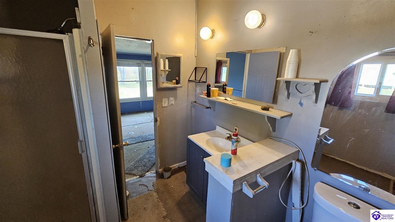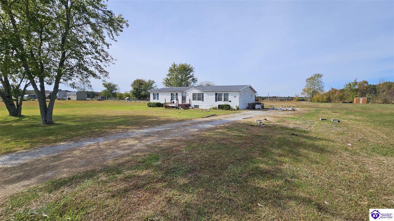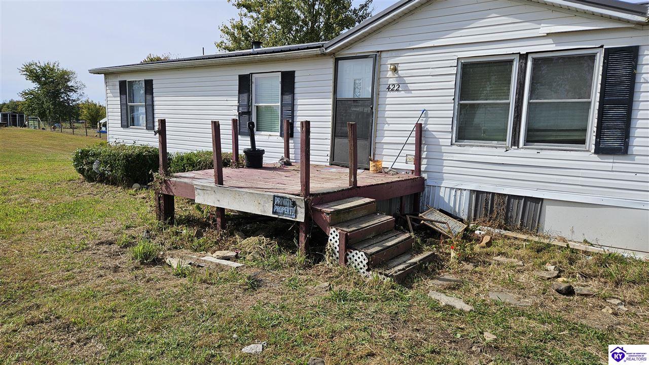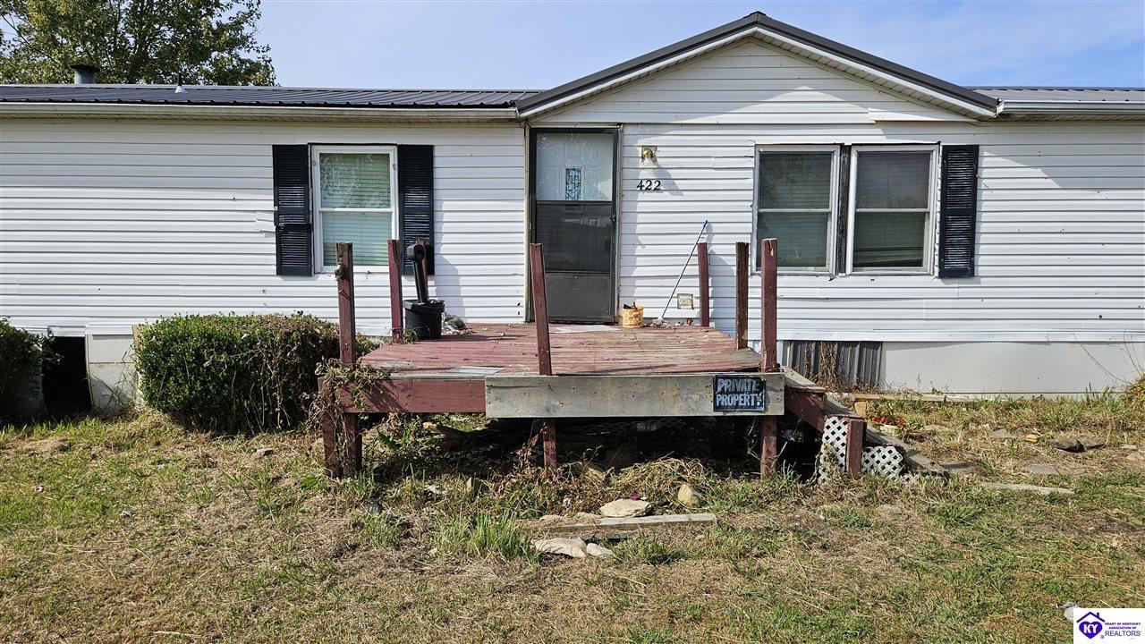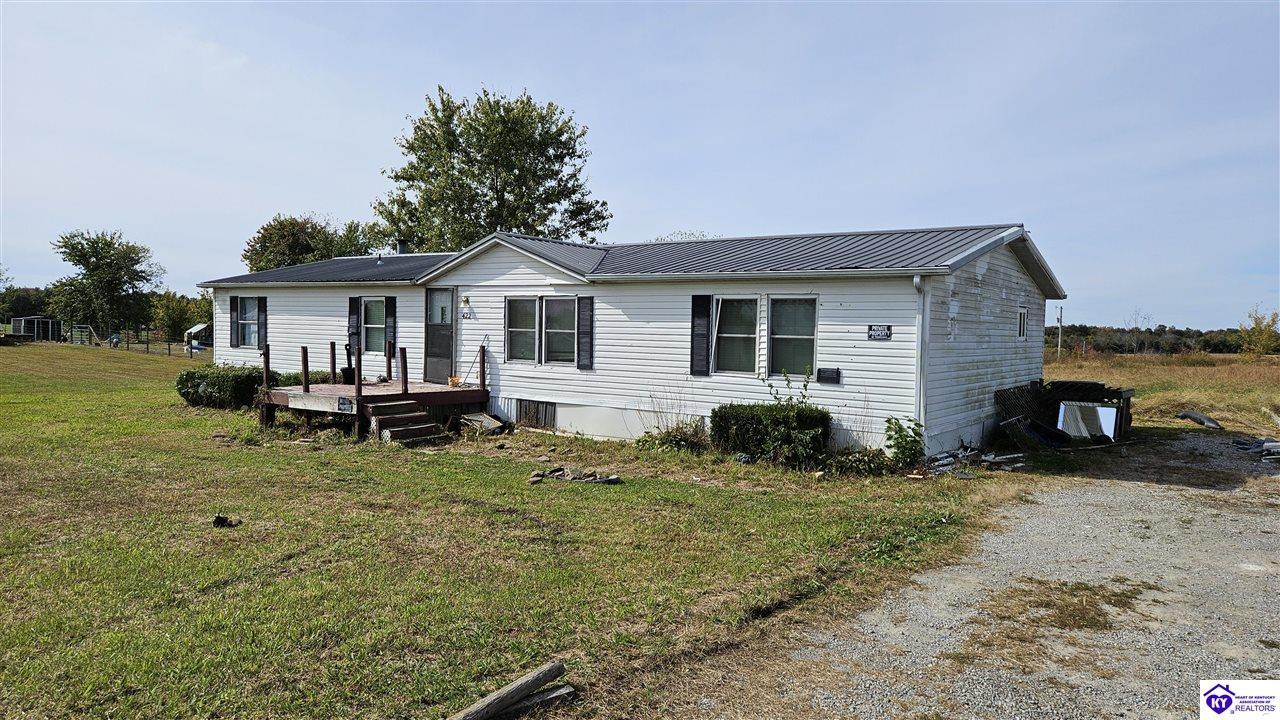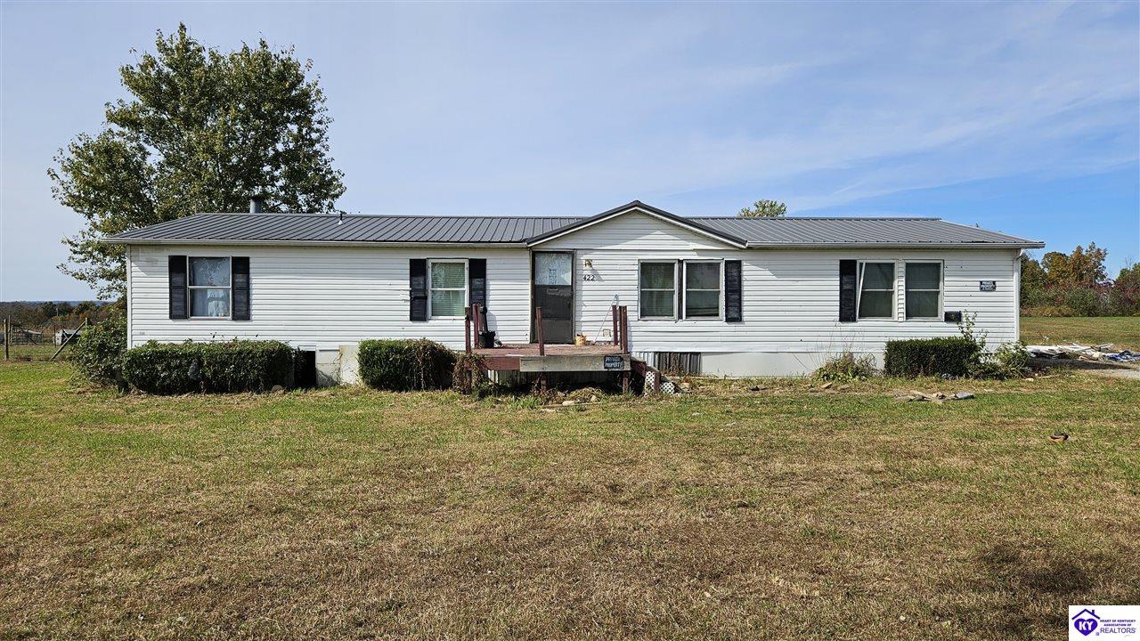 Realtor's notes: Welcome to 422 Kiper Road. Attention investors! If you're looking for your next flip, rental property, or are a first time home buyer who doesn't mind putting in a little work, this sprawling ranch presents an excellent investment opportunity. Nestled on 1 acre, just 5 miles north of Leitchfield, come enjoy this quiet slice of country life while still being close to the city. Loaded with potential and good bones, this home primarily needs an interior cosmetic refresh. Mature trees and a 10' x 10' front deck greet you as you walk up. Heading inside, into the living room, you will immediately notice how bright and airy the entire home is thanks to the abundant natural light and half vaulted ceilings that are in every room. Behind the living room are an open dining area and family room that then flow right into the kitchen. The family room is highlighted by the stone fireplace and has a sliding glass door leading out to a 10' x 16' deck. The kitchen offers ample all white cabinetry, island, and pantry. Off the back of the kitchen is a combination laundry, utility, and mud room. The primary suite will be found off the side of the living room. This suite offers a spacious bedroom with walk-in closet and private bath with whirlpool tub and separate shower. This home does have a split bedroom floor plan to provide additional privacy to the primary suite. There are two more generously sized bedrooms and a 2nd full bath that can be found off the back of the family room. Out back is a huge yard offering tons of space for kids or pets to play in. Or raise small animals, if you're more farming inclined. The lengthy driveway offers plenty of parking space, but the property has tons of room to build a detached garage or other out buildings. Don't miss out on this one and schedule a showing today! This property is being sold "as-is."