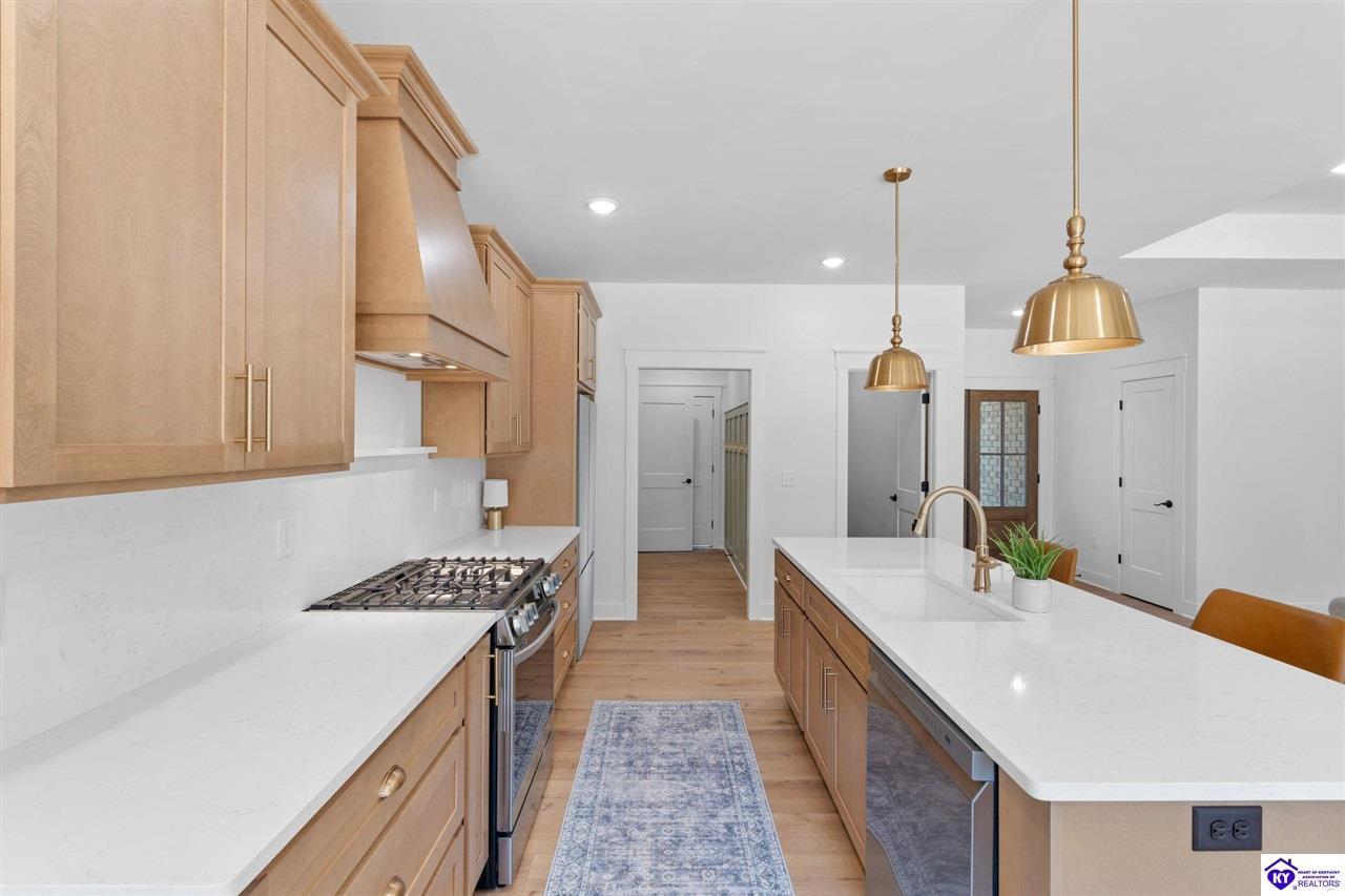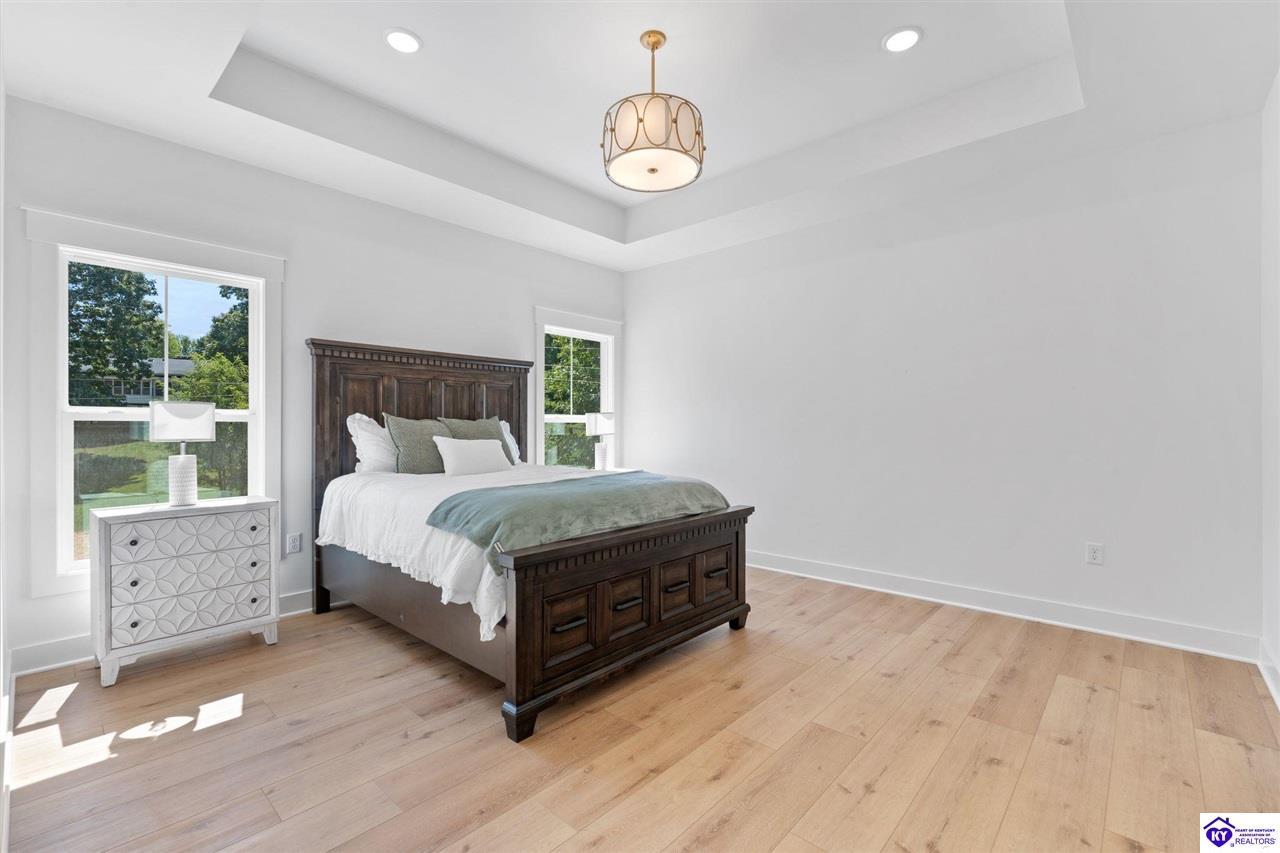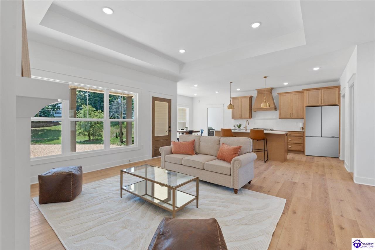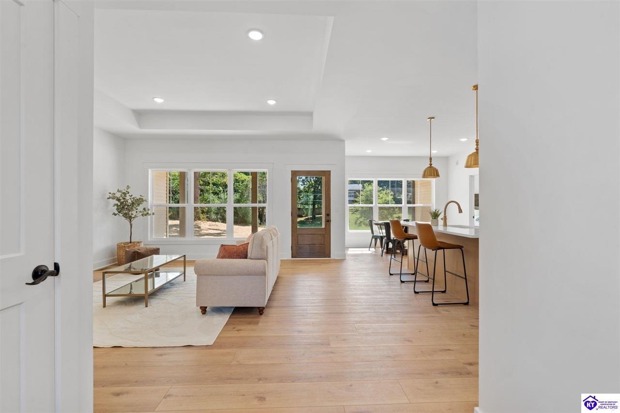 Realtor's notes: Welcome to this stunning, custom-level new construction home offering an elevated lifestyle just minutes from downtown Elizabethtown and the Sports Park. This 4-bedroom, 3-bath residence is thoughtfully designed with an open-concept layout, ideal for modern living and effortless entertaining. The gourmet kitchen features stainless steel appliances, a massive center island, and a walk-in pantry, flowing seamlessly into a sun-drenched living area with expansive windows and natural light throughout. A spacious laundry and mudroom provide everyday convenience, while the main-level primary suite serves as a luxurious retreat with a spa-inspired bath—complete with a walk-in tiled shower, dual vanities, and a private water closet. Two additional main-level bedrooms share a beautifully appointed full bath, while the walkout basement boasts soaring ceilings, a generous family room, and a private fourth bedroom with an additional full bathroom—perfect for guests or multi-generational living. Enjoy serene views from the covered back porch overlooking the flat backyard, and take in the elevated vantage point this home offers from its prime location above Elizabethtown. With a two-car garage and exceptional craftsmanship throughout, this home is the perfect blend of luxury, comfort, and convenience.
