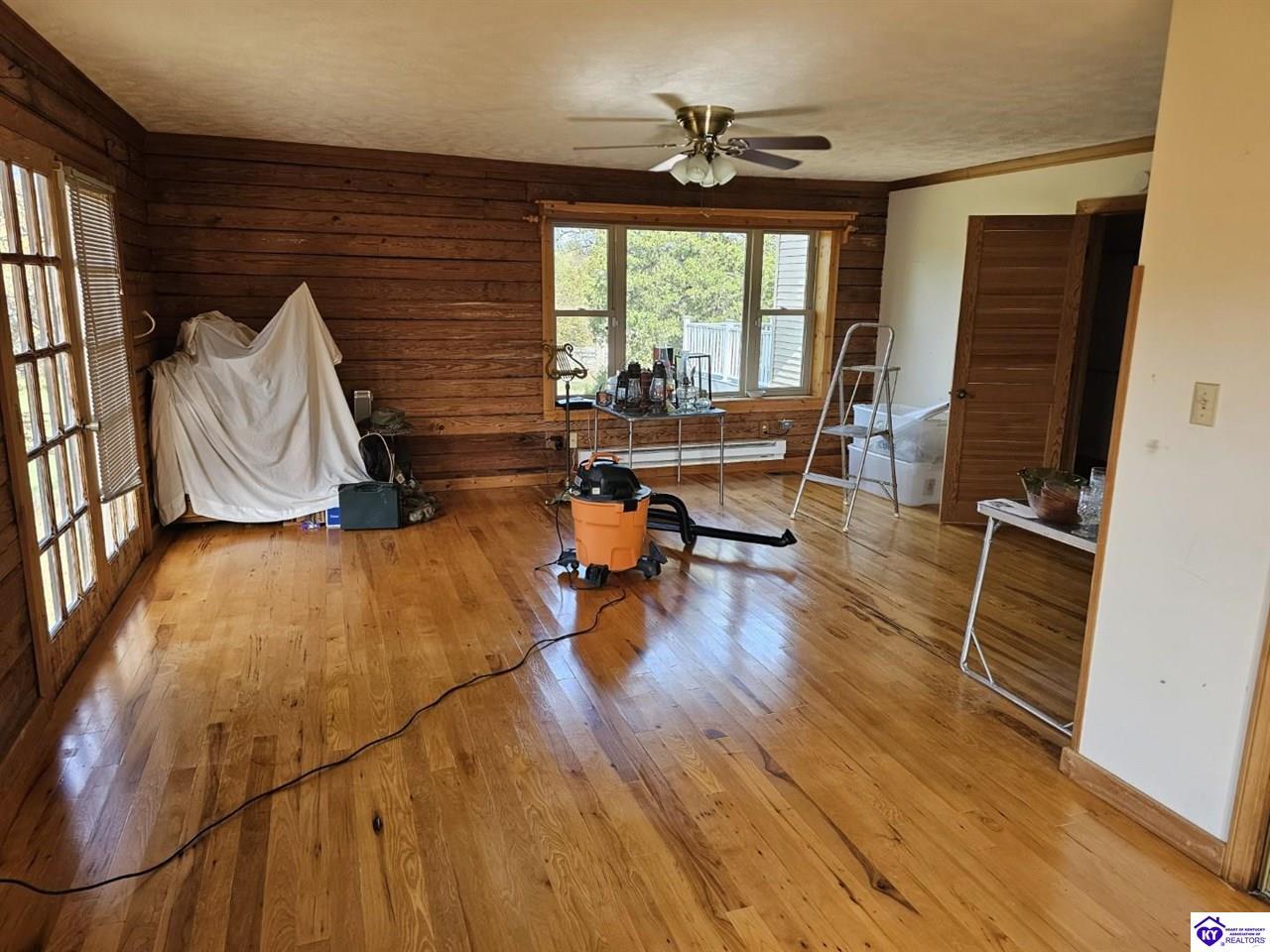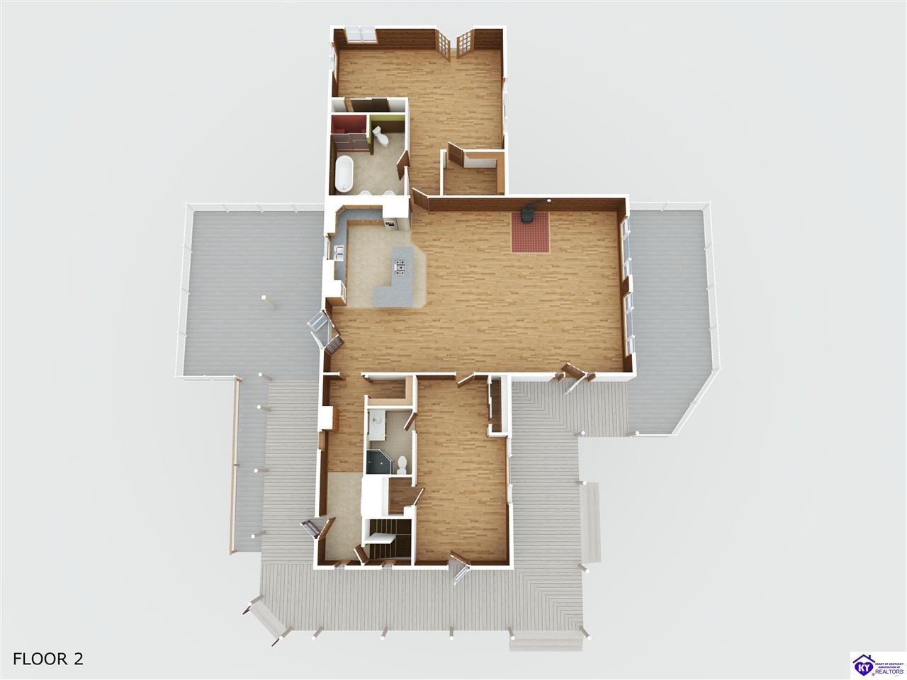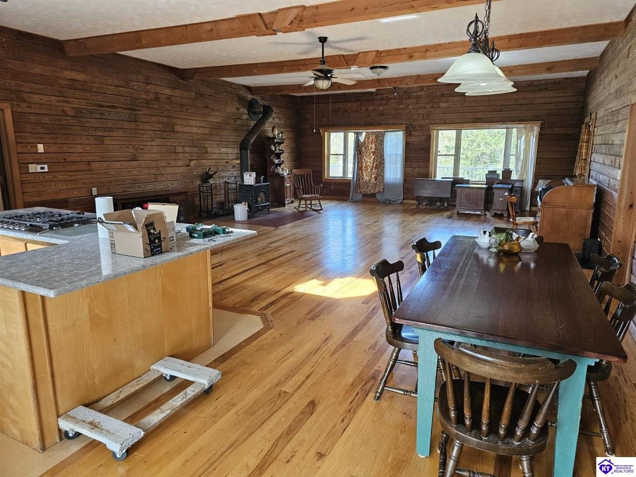 Realtor's notes: WELCOME TO PARADISE!!! LOG HOME ON NEARLY 40 ACRES WITH 1/2 MILE FRONTAGE ON LITTLE BRUSH CREEK! This secluded 2,300 square-foot log home with basement is constructed of logs from the Daniel Boone National Forest. The home boasts custom hickory flooring throughout, two suites with full baths, and large great room with woodstove. The home is in the center of the property with wonderful views from the extensive porches and decking to enjoy outdoor living. Enjoy your own personal retreat with seclusion, quiet, and privacy! Go play in Little Brush Creek and set up a great hunting property with ABUNDANT wildlife. This home is ready for a new owner to make their dreams a reality. New HVAC units were installed in 2024. The land is mixed woodland with gently rolling and level open land, ready for you to set up your own farm if desired. Log homes and land tracts at this price point are scarce; DON'T MISS OUT! Property is approximately 45 minutes from Elizabethtown, 30 minutes from Hodgenville, and 25 minutes from Campbellsville. Professional photos coming soon.