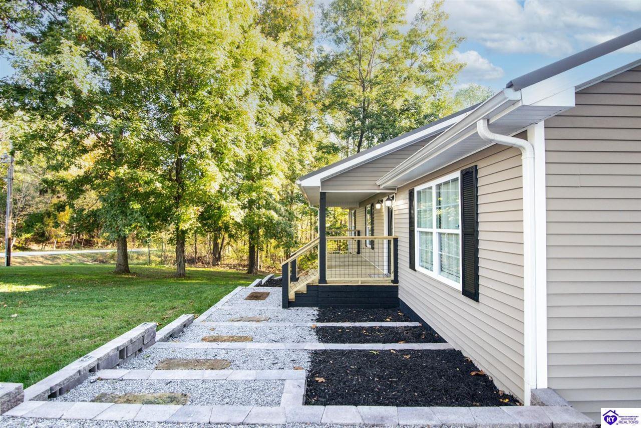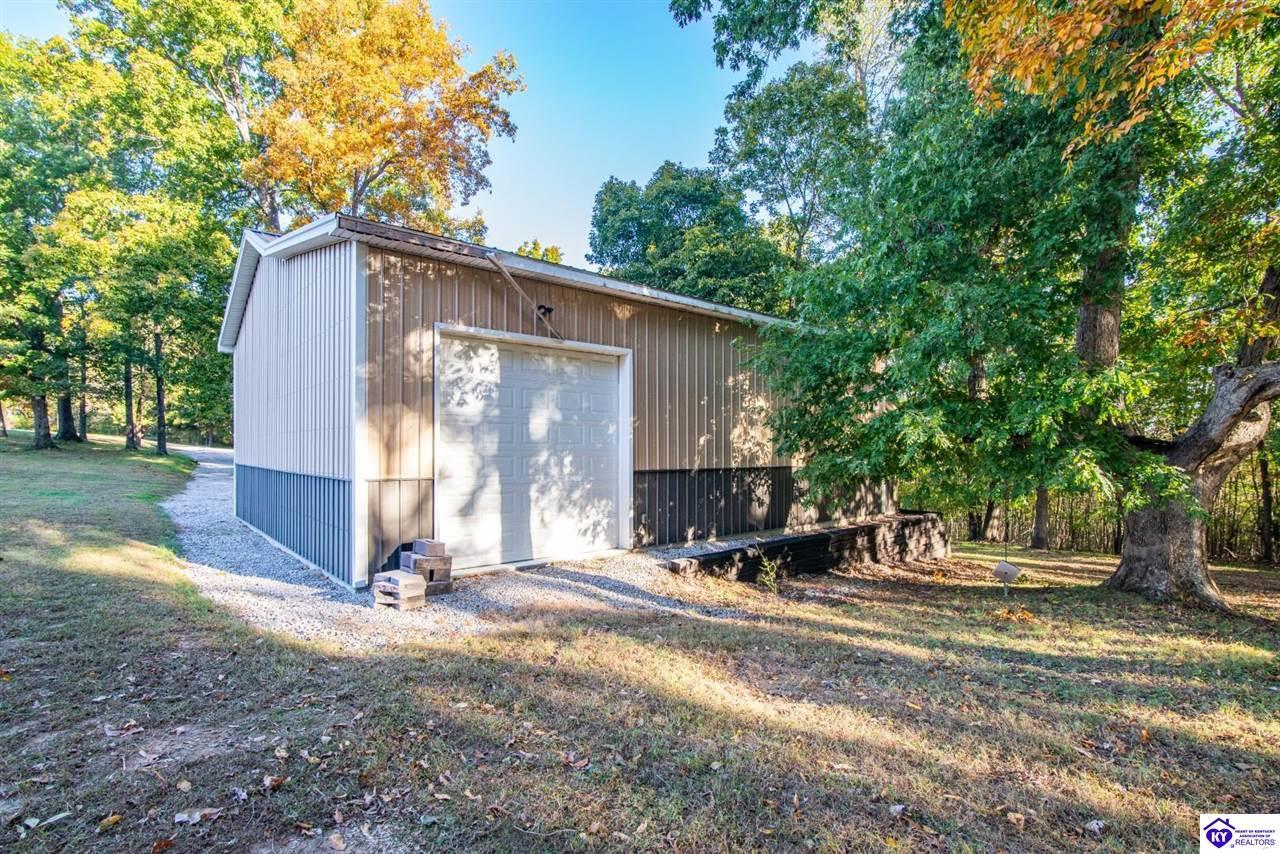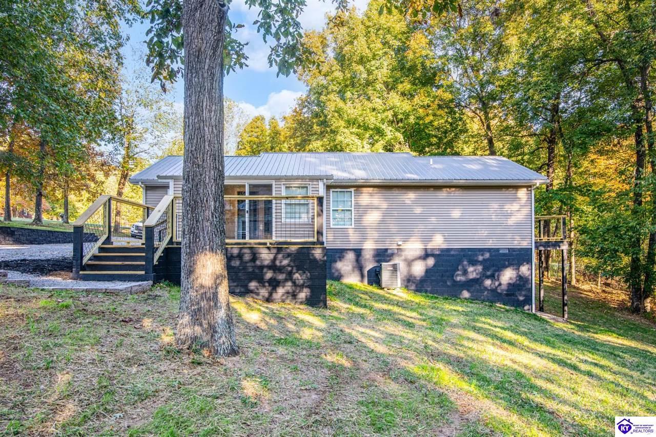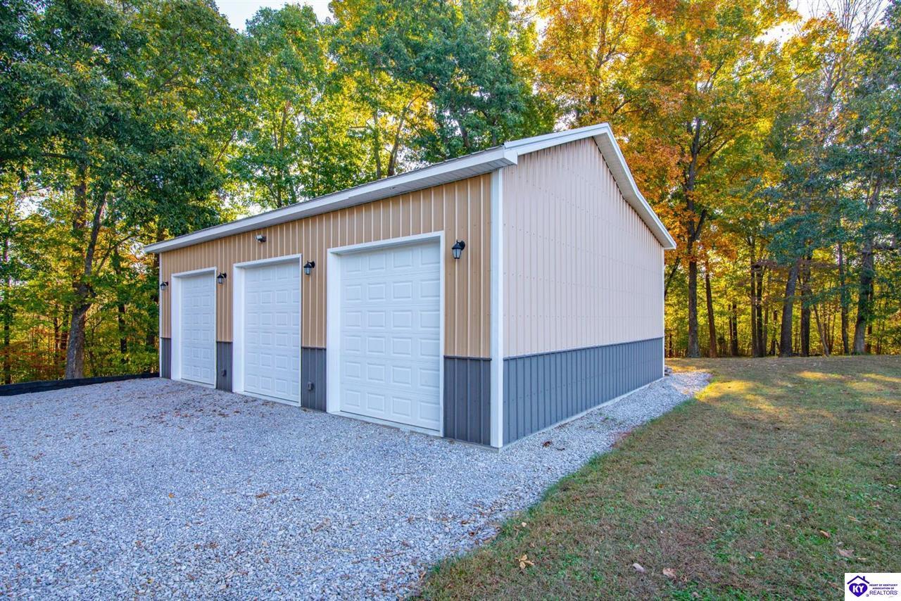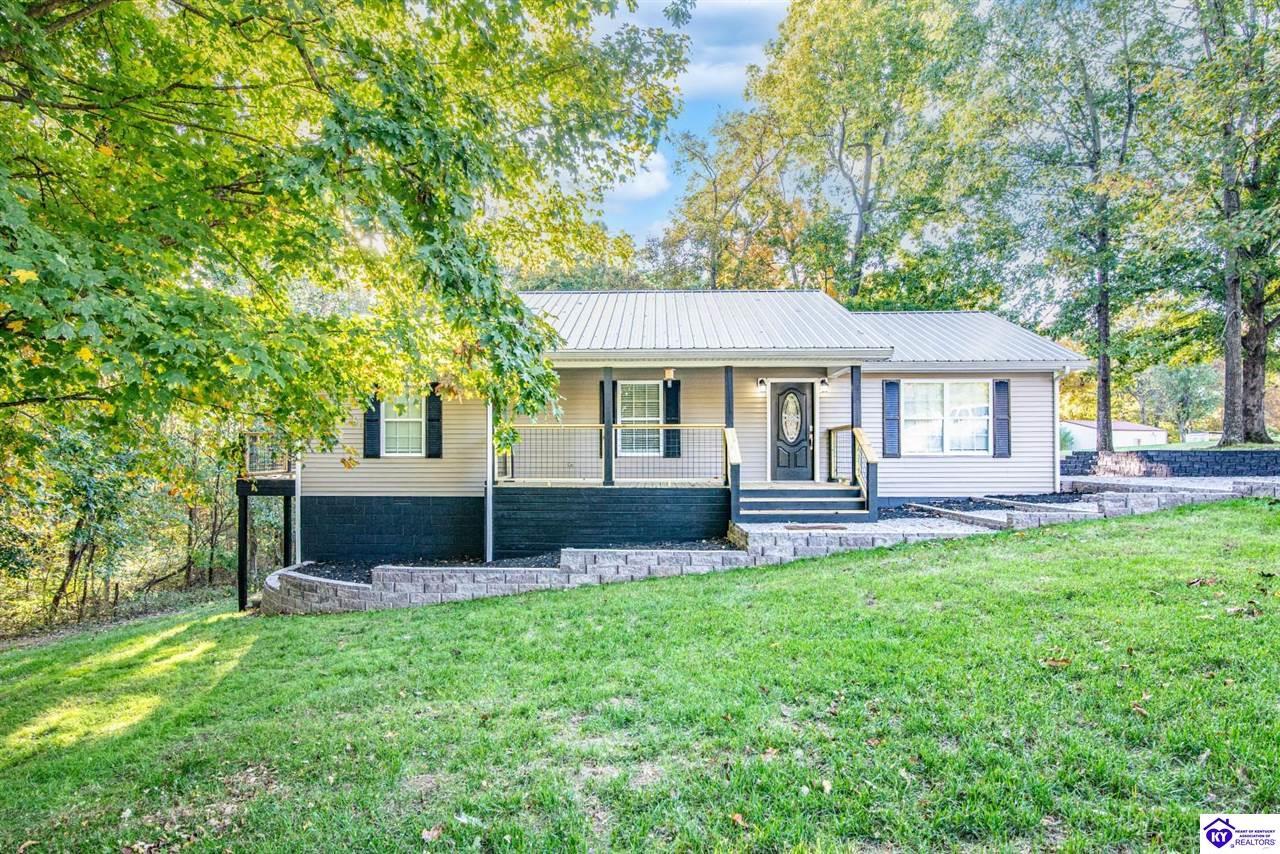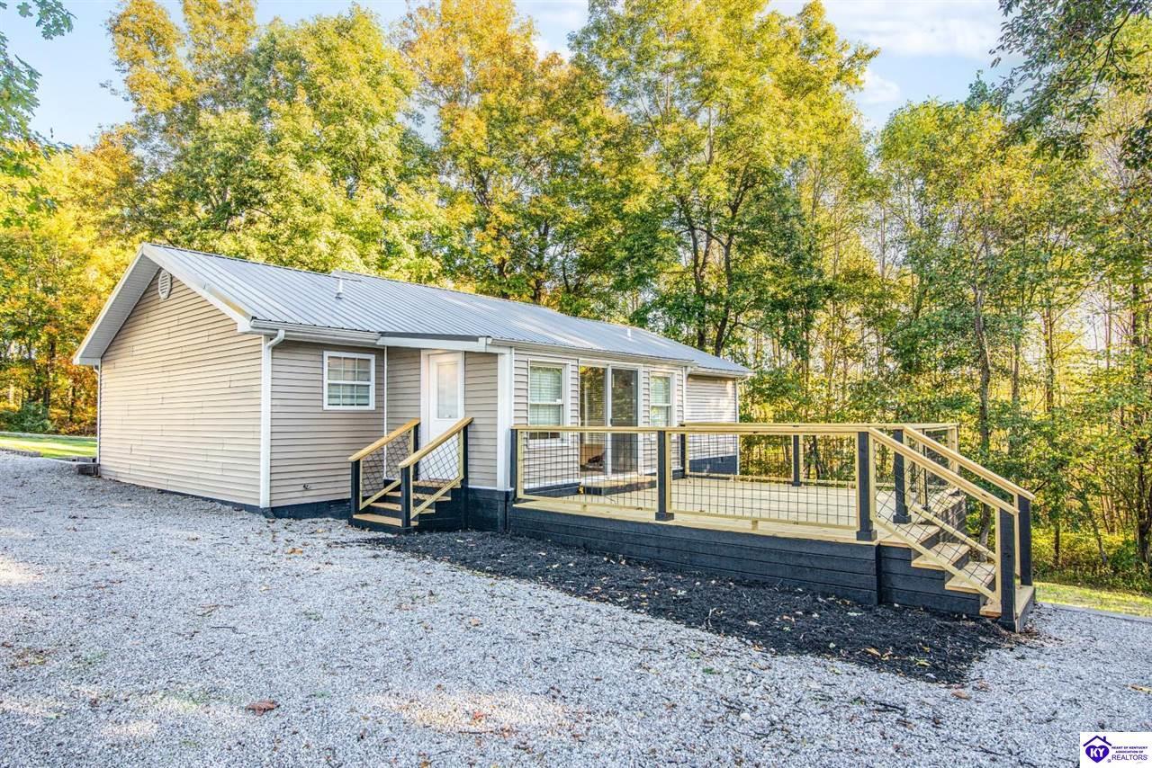 Realtor's notes: Welcome to your peaceful country retreat just minutes from town! This beautiful 3-bed, 2-bath ranch home sits on a wooded lot full of Kentucky charm — and plenty of deer and other wildlife to enjoy from one of the three freshly updated decks! The primary bedroom even has its own private deck, perfect for morning coffee or winding down in the evenings. Inside, you’ll find large rooms with plenty of space to spread out and make yourself at home. The flooring throughout is luxury vinyl plank, and both bathrooms feature double-bowl vanities. The kitchen has been beautifully updated with soft-close cabinets and gleaming quartz countertops — a perfect blend of style and function. Just off the back is a cozy sunroom where you can relax and take in the wooded views year-round. The home also features a large walk-in, fully encapsulated crawl space for added storage and peace of mind. Outside, the landscaping has all been recently refreshed, giving the property a clean and welcoming feel. And for those who love a good shop — you’re going to love the 32’x40’ three-bay workshop out back! It’s built right, with 5.5-inch thick concrete floors designed for a car lift, 12-foot insulated doors, fully insulated walls and ceilings, a convenient half bath, and its own 200-amp electric service. All this and only 7 minutes from downtown Leitchfield! Plus, you’re in a great location close to both Nolin Lake and Rough River Lake — with Peter Cave Marina just 4.5 miles away! Enjoy peaceful country living with thoughtful updates, a beautiful setting, and easy access to town and the lakes — truly the best of Kentucky living.