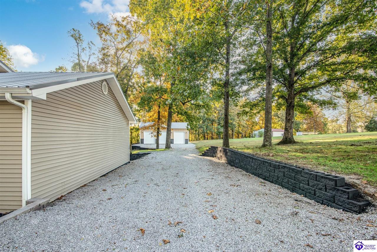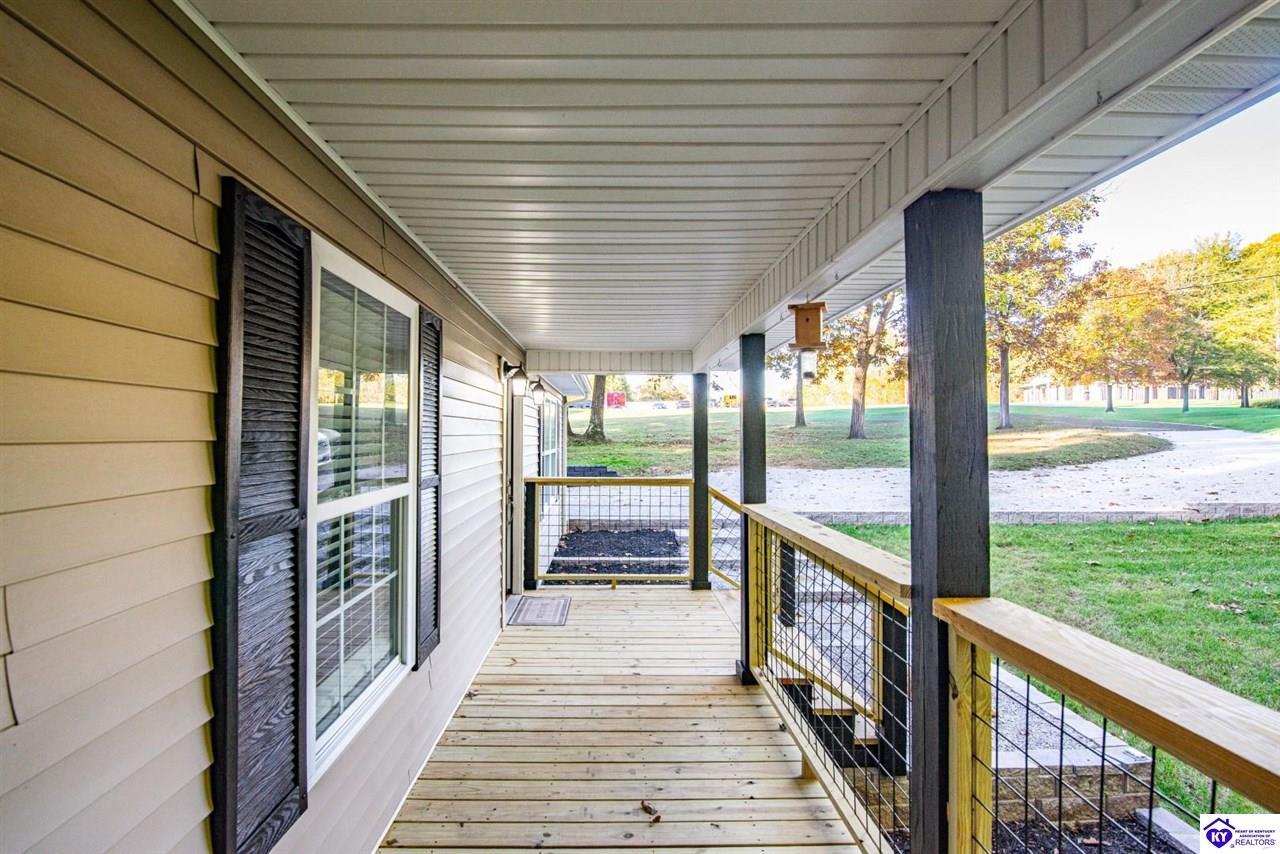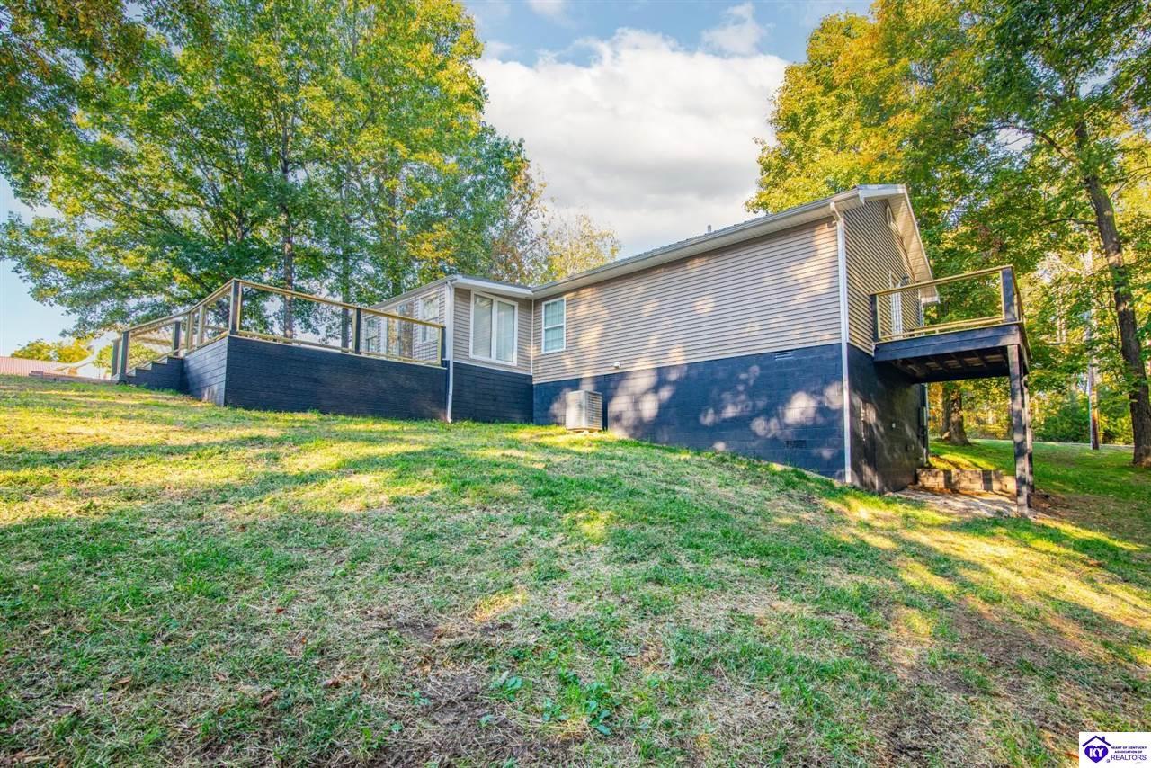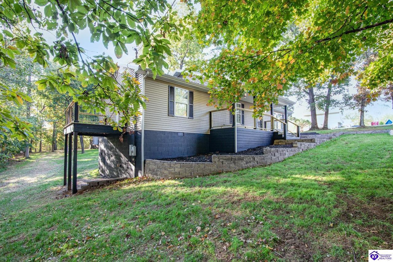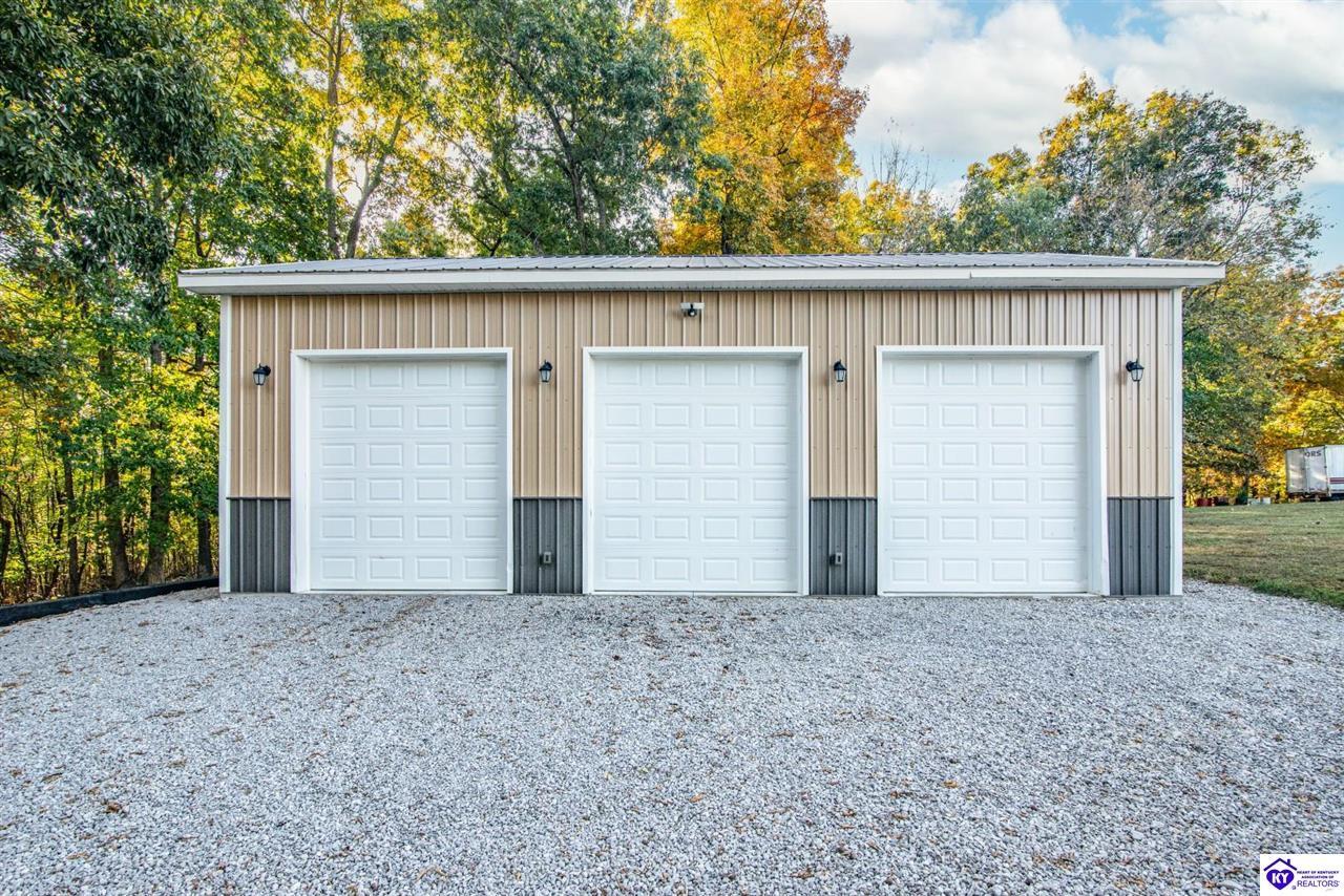 Realtor's notes: Welcome to your peaceful country retreat just minutes from town! This beautiful 3-bed, 2-bath ranch home sits on a wooded lot full of Kentucky charm — and plenty of deer and other wildlife to enjoy from one of the three freshly updated decks! The primary bedroom even has its own private deck, perfect for morning coffee or winding down in the evenings. Inside, you’ll find large rooms with plenty of space to spread out and make yourself at home. The flooring throughout is luxury vinyl plank, and both bathrooms feature double-bowl vanities. The kitchen has been beautifully updated with soft-close cabinets and gleaming quartz countertops — a perfect blend of style and function. Just off the back is a cozy sunroom where you can relax and take in the wooded views year-round. The home also features a large walk-in, fully encapsulated crawl space for added storage and peace of mind. Outside, the landscaping has all been recently refreshed, giving the property a clean and welcoming feel. And for those who love a good shop — you’re going to love the 32’x40’ three-bay workshop out back! It’s built right, with 5.5-inch thick concrete floors designed for a car lift, 12-foot insulated doors, fully insulated walls and ceilings, a convenient half bath, and its own 200-amp electric service. All this and only 7 minutes from downtown Leitchfield! Plus, you’re in a great location close to both Nolin Lake and Rough River Lake — with Peter Cave Marina just 4.5 miles away! Enjoy peaceful country living with thoughtful updates, a beautiful setting, and easy access to town and the lakes — truly the best of Kentucky living.
