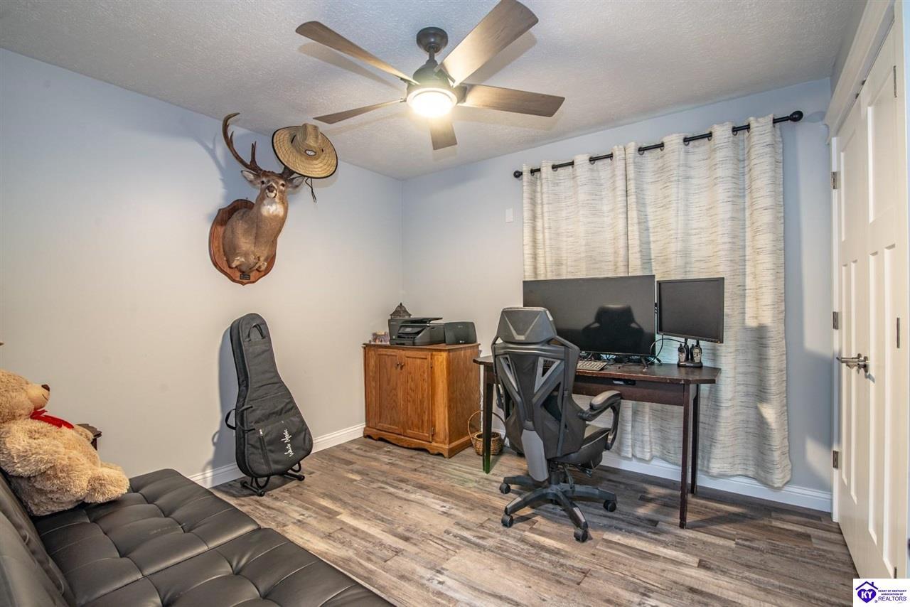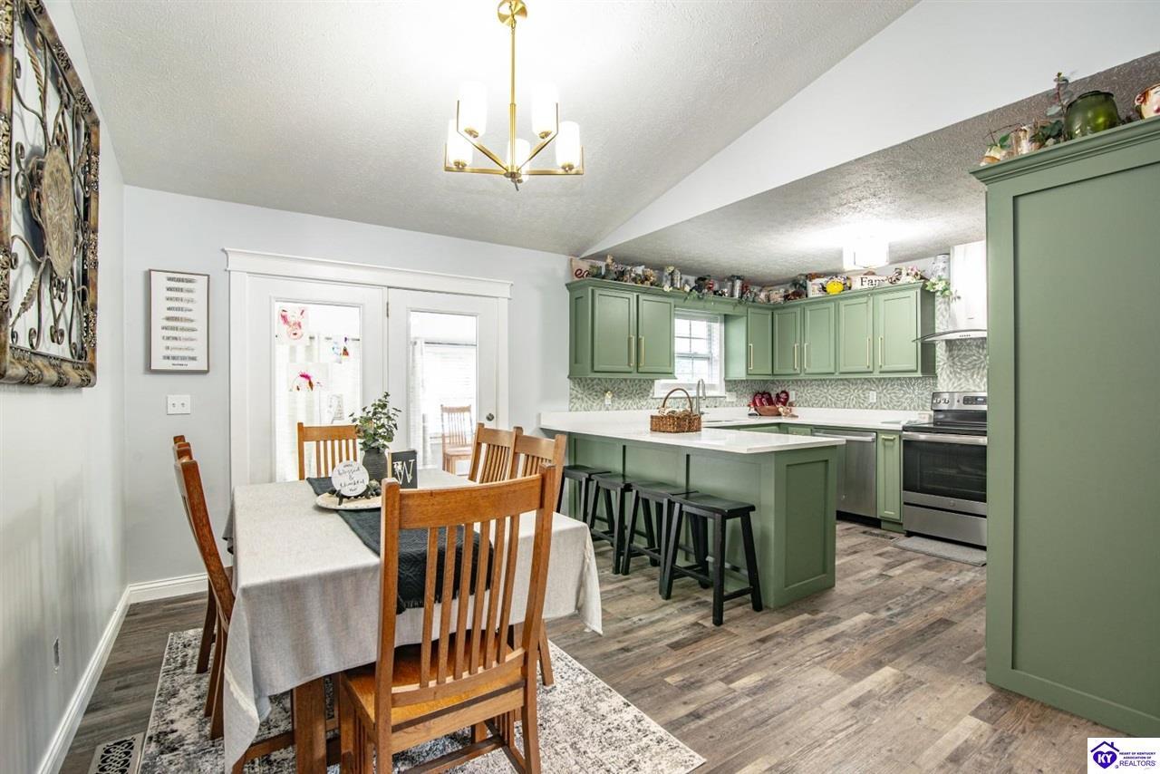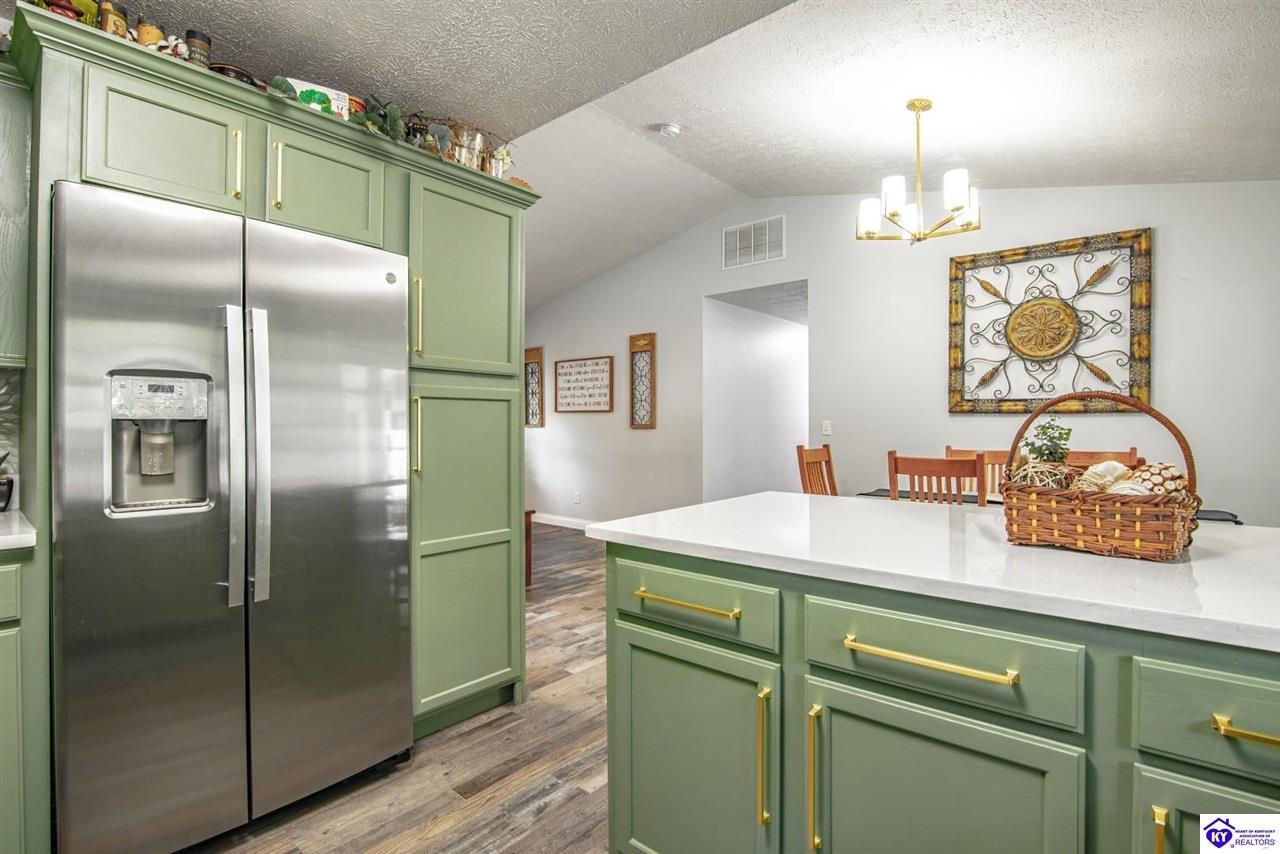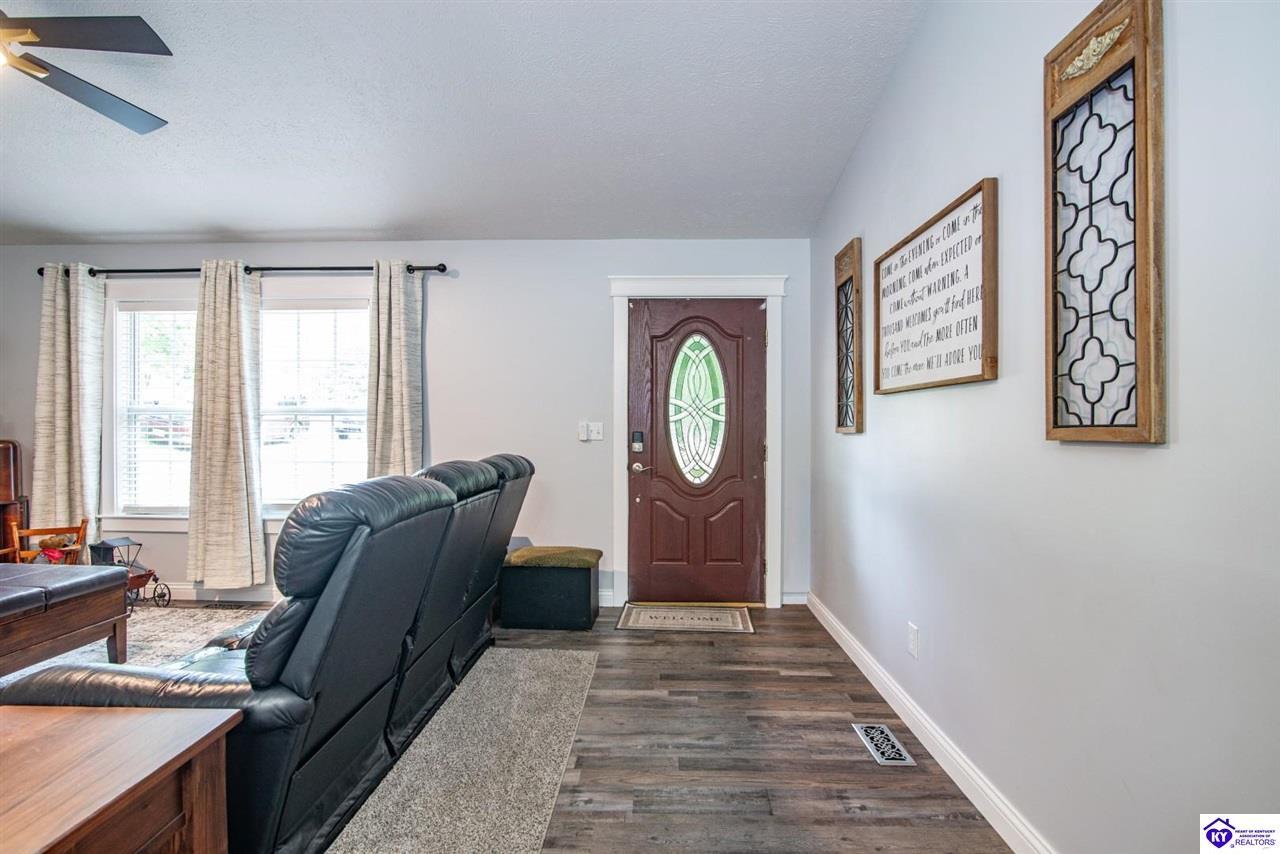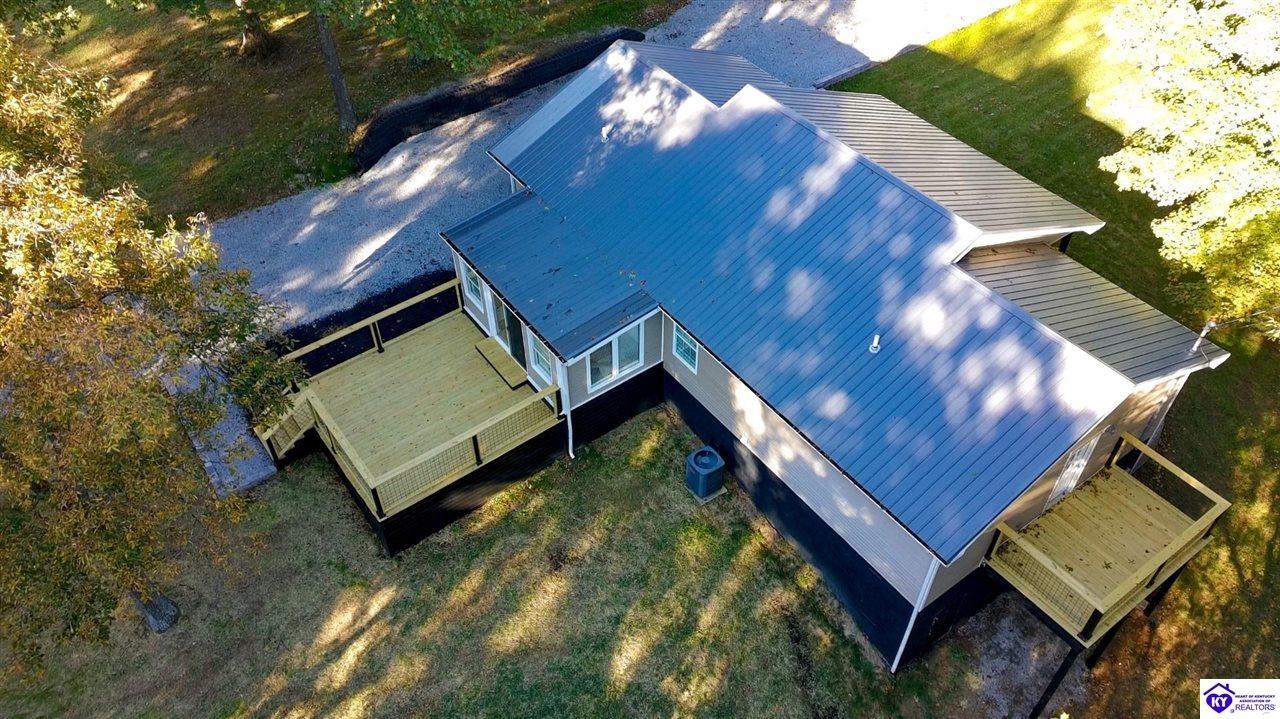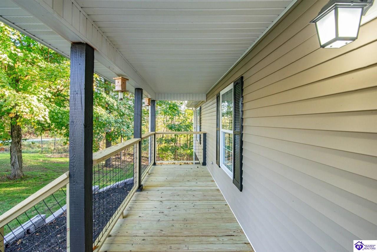 Realtor's notes: Welcome to your peaceful country retreat just minutes from town! This beautiful 3-bed, 2-bath ranch home sits on a wooded lot full of Kentucky charm — and plenty of deer and other wildlife to enjoy from one of the three freshly updated decks! The primary bedroom even has its own private deck, perfect for morning coffee or winding down in the evenings. Inside, you’ll find large rooms with plenty of space to spread out and make yourself at home. The flooring throughout is luxury vinyl plank, and both bathrooms feature double-bowl vanities. The kitchen has been beautifully updated with soft-close cabinets and gleaming quartz countertops — a perfect blend of style and function. Just off the back is a cozy sunroom where you can relax and take in the wooded views year-round. The home also features a large walk-in, fully encapsulated crawl space for added storage and peace of mind. Outside, the landscaping has all been recently refreshed, giving the property a clean and welcoming feel. And for those who love a good shop — you’re going to love the 32’x40’ three-bay workshop out back! It’s built right, with 5.5-inch thick concrete floors designed for a car lift, 12-foot insulated doors, fully insulated walls and ceilings, a convenient half bath, and its own 200-amp electric service. All this and only 7 minutes from downtown Leitchfield! Plus, you’re in a great location close to both Nolin Lake and Rough River Lake — with Peter Cave Marina just 4.5 miles away! Enjoy peaceful country living with thoughtful updates, a beautiful setting, and easy access to town and the lakes — truly the best of Kentucky living.