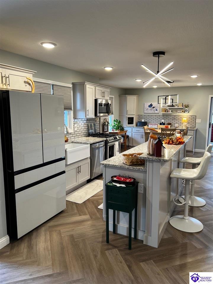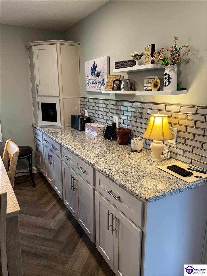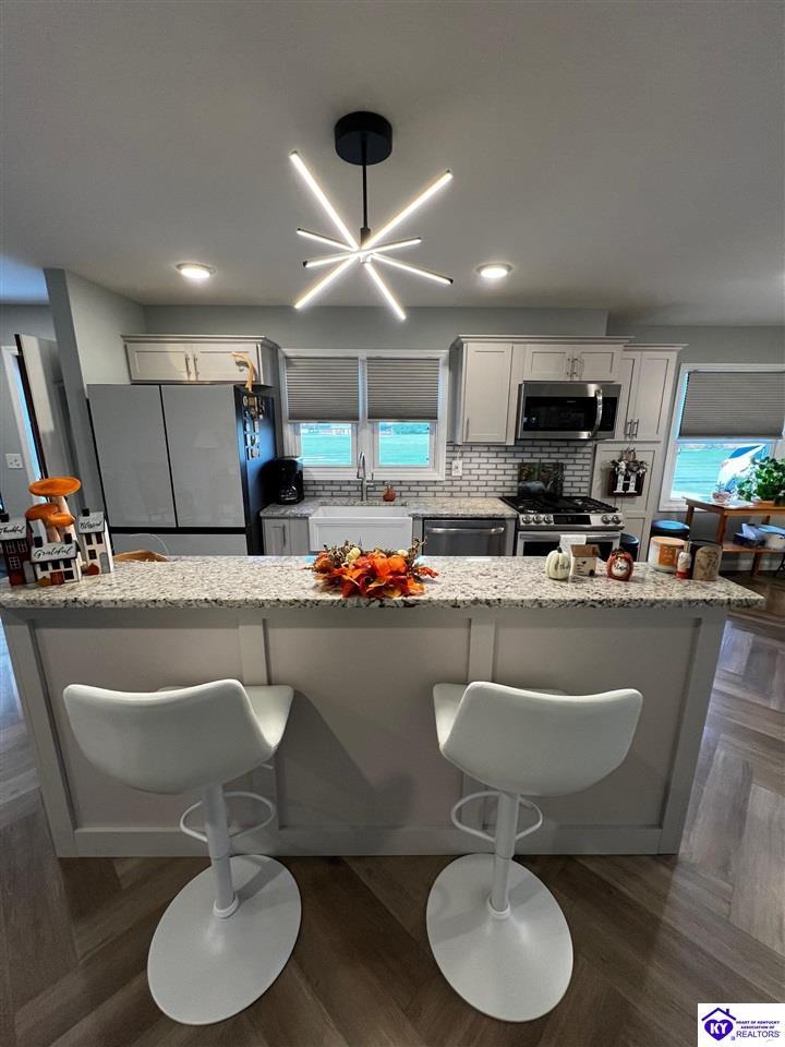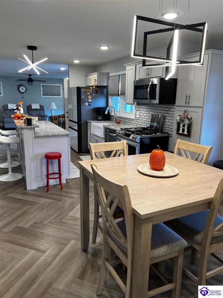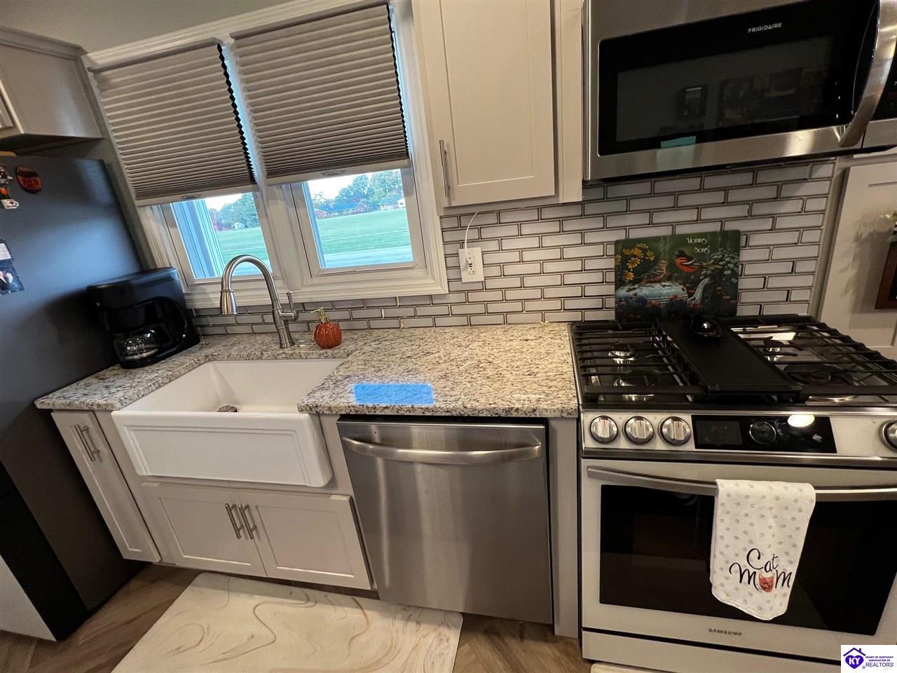 Realtor's notes: MOVE-IN READY: STUNNINGLY REMODELED 2 BEDROOM RANCH NEAR CITY LAKE & WALKING TRACK! Welcome home to this exquisite, recently remodeled ranch-style house, offering the perfect blend of modern luxury and convenient living. Situated in the heart of Kentucky, just steps from a walking track and a short stroll to the serene city lake and city park, this property is an outdoor enthusiast's dream and promises a lifestyle of comfort and ease. Key Features: 2 Spacious Bedrooms 1 Full, Contemporary Bathroom Open-Concept Living: An entertainer's delight, the seamless flow between the living area and the kitchen creates a bright, inviting space for gatherings. Gourmet Kitchen: Discover your inner chef in this state-of-the-art kitchen, featuring gleaming granite countertops and brand-new, top-of-the-line appliances. Full Basement: A versatile space with incredible potential! Already plumbed for a second bathroom and offering ample room to finish an additional bedroom, workshop, or recreation area—customize to your needs. Outdoor Amenities: Enjoy the convenience of an attached carport and an additional storage shed with a roll-up door, providing a perfect spot for your mower, tools, and outdoor gear. Prime Location: Enjoy immediate access to the local walking track and the beautiful city lake, perfect for daily strolls, jogging, or fishing. Additional Details: This home has been meticulously updated with quality finishes throughout, ensuring a worry-free, move-in ready experience. The thoughtful design maximizes both style and functionality. Don't miss this rare opportunity to own a virtually new home in a highly sought-after location. Whether you're a first-time homebuyer, looking to downsize, or seeking a fantastic investment, this property checks all the boxes. Schedule your private showing today and prepare to fall in love with your new home!