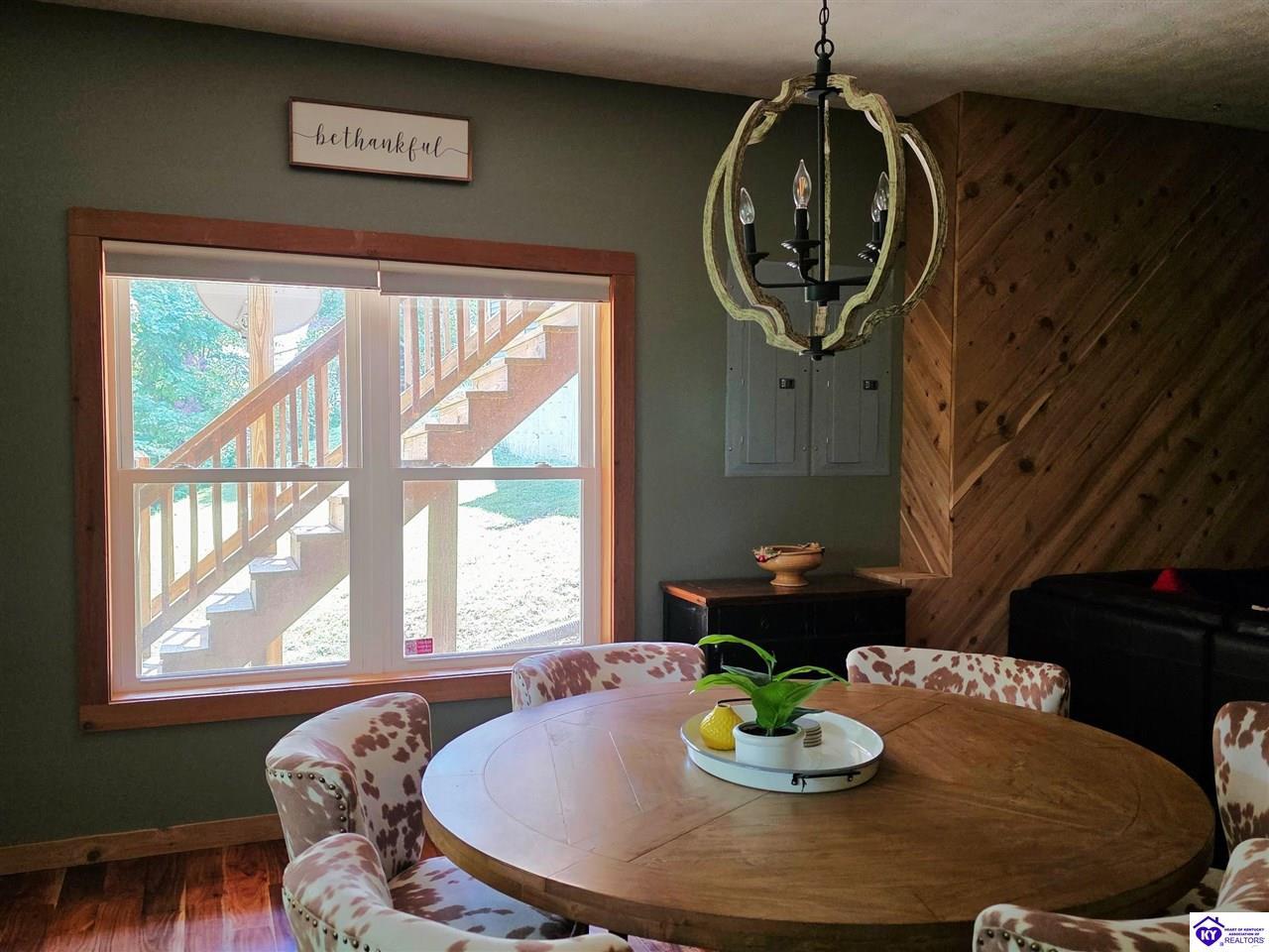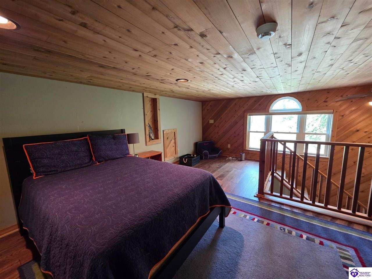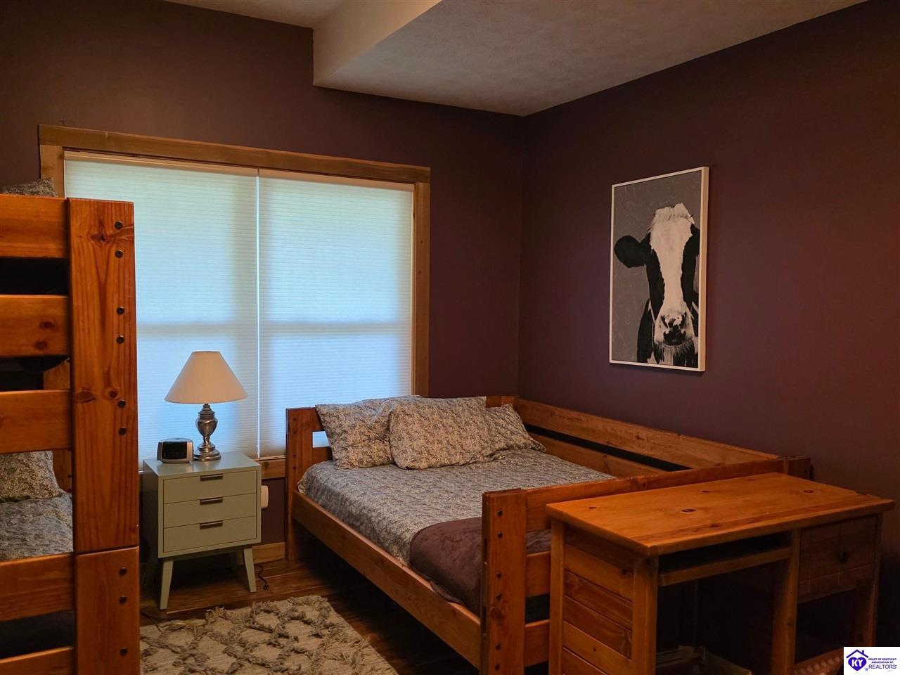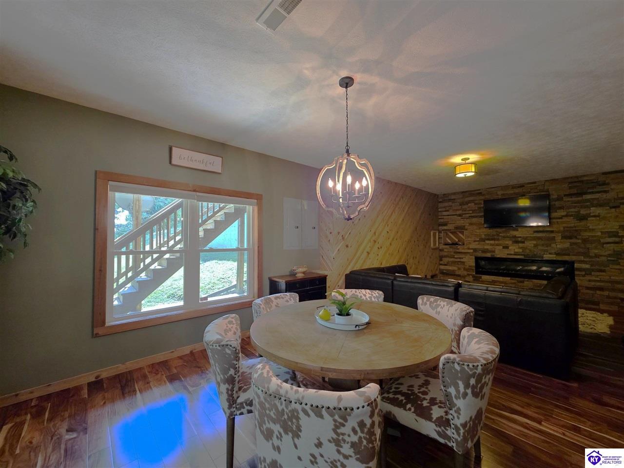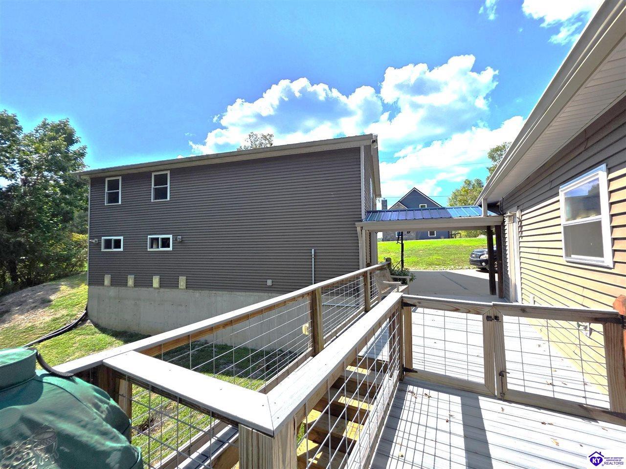 Realtor's notes: Discover the charm of this stunning waterfront home, perfectly situated on two lots with two docks at the bottom of the property. This residence offers a blend of modern amenities and cozy living spaces, making it an ideal retreat for families and friends. 4 bedrooms and a 5th sleeping area or multi-purpose room - and TONS of parking, you can bring your family and friends and still have some privacy! Multiple decks let you spread out there too! TWO waterfront lots, TWO docks (one with 2 jet ski ports that stay!) Furniture is available too! Located in a beautiful neighborhood near two ramps, this home is in the middle of everything by land and by water. The super chill location on a cove off Long Lick Creek is perfect for kayaking, floating, or sunbathing on the docks. Step inside and be instantly greeted by cozy, warm colors that blend perfectly with the natural setting of this lake home. Just off the large foyer is a guest bedroom, full bath, stairs to the loft sleeping area AND catch your first glimpse of that beautiful great room! This open-concept living area is where you'll find that BIG, stone fireplace as the centerpiece of the lake-side wall. Beautiful stone floors help to set the mood for living at the lake! The great room opens up to the main living areas, providing a spacious and inviting atmosphere. With lots of sleeping areas and tons of parking options, there's plenty of room for everyone! There's even room for a large camper or RV in the detached, multipurpose shed! Adjacent to the fireplace is a crowd-sized dining area with a window wall and adjoining kitchen. The custom kitchen comes with tons of cabinets and upgrades, making it a chef's dream! The main level laundry is conveniently located near the outdoors, adding to the home's practicality. The primary bedroom suite on the main level includes a bath with heated floors, a tile shower, and a vintage-style tub. There's also a screen porch off the primary bedroom for morning coffee or afternoon naps. The lower level features a family area with an electric fireplace that changes colors, a dining or card table, and another lounging area to relax. The bunk room on this level comfortably sleeps eight, and there's another sleeping area or multi-purpose room that's plumbed for a future bar. Storage is abundant both inside and outside the home, including a huge RV-sized shed with tall overhead doors that let you drive THROUGH the building!
