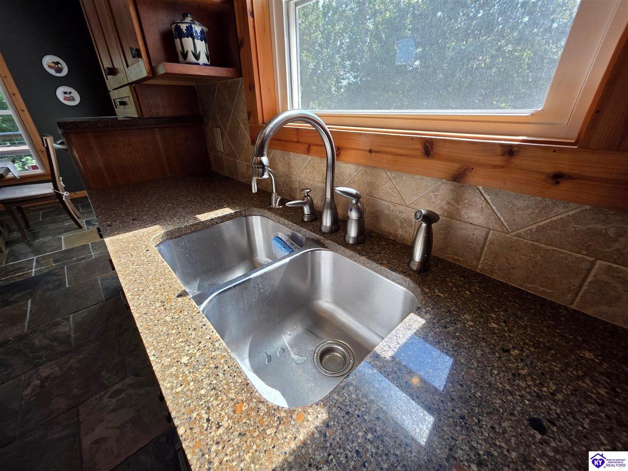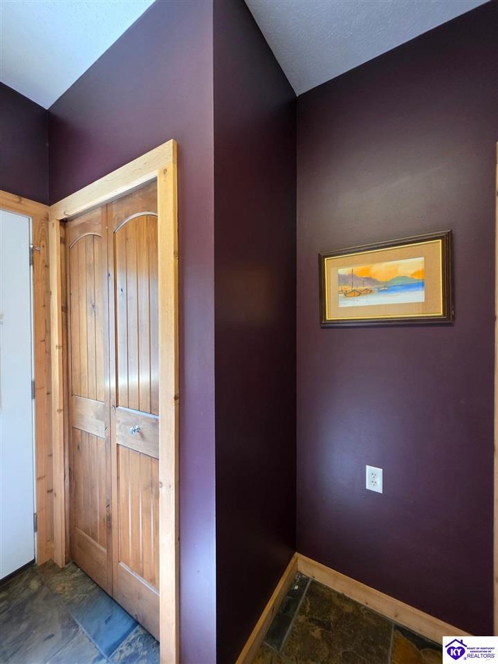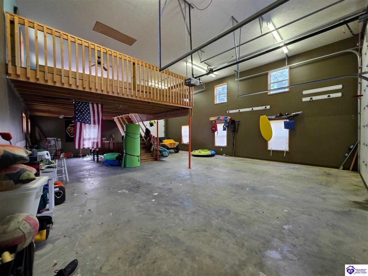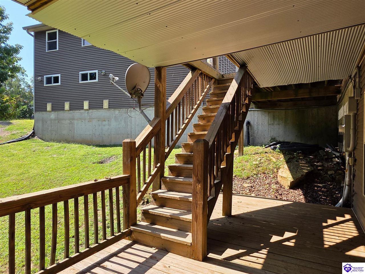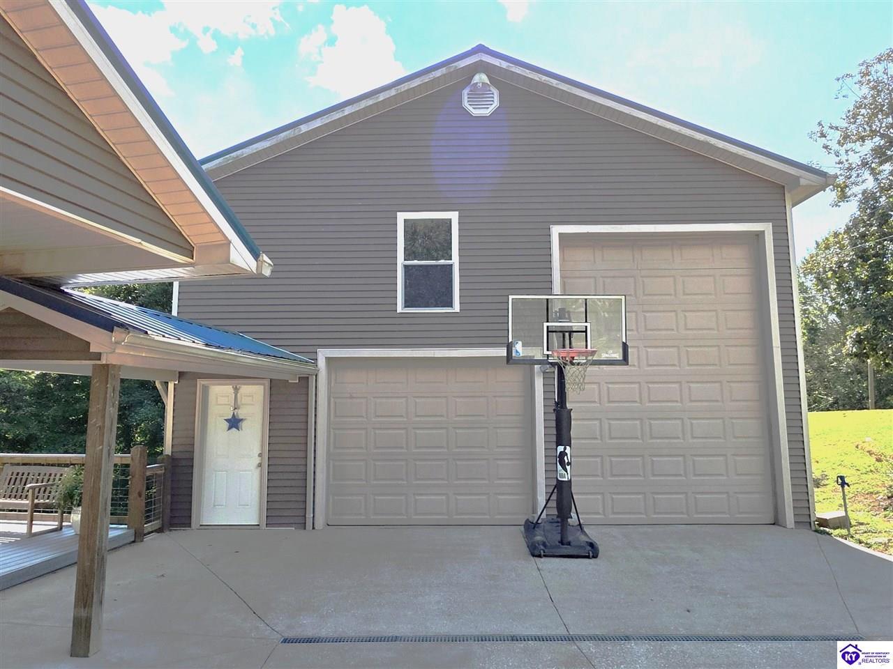 Realtor's notes: Discover the charm of this stunning waterfront home, perfectly situated on two lots with two docks at the bottom of the property. This residence offers a blend of modern amenities and cozy living spaces, making it an ideal retreat for families and friends. 4 bedrooms and a 5th sleeping area or multi-purpose room - and TONS of parking, you can bring your family and friends and still have some privacy! Multiple decks let you spread out there too! TWO waterfront lots, TWO docks (one with 2 jet ski ports that stay!) Furniture is available too! Located in a beautiful neighborhood near two ramps, this home is in the middle of everything by land and by water. The super chill location on a cove off Long Lick Creek is perfect for kayaking, floating, or sunbathing on the docks. Step inside and be instantly greeted by cozy, warm colors that blend perfectly with the natural setting of this lake home. Just off the large foyer is a guest bedroom, full bath, stairs to the loft sleeping area AND catch your first glimpse of that beautiful great room! This open-concept living area is where you'll find that BIG, stone fireplace as the centerpiece of the lake-side wall. Beautiful stone floors help to set the mood for living at the lake! The great room opens up to the main living areas, providing a spacious and inviting atmosphere. With lots of sleeping areas and tons of parking options, there's plenty of room for everyone! There's even room for a large camper or RV in the detached, multipurpose shed! Adjacent to the fireplace is a crowd-sized dining area with a window wall and adjoining kitchen. The custom kitchen comes with tons of cabinets and upgrades, making it a chef's dream! The main level laundry is conveniently located near the outdoors, adding to the home's practicality. The primary bedroom suite on the main level includes a bath with heated floors, a tile shower, and a vintage-style tub. There's also a screen porch off the primary bedroom for morning coffee or afternoon naps. The lower level features a family area with an electric fireplace that changes colors, a dining or card table, and another lounging area to relax. The bunk room on this level comfortably sleeps eight, and there's another sleeping area or multi-purpose room that's plumbed for a future bar. Storage is abundant both inside and outside the home, including a huge RV-sized shed with tall overhead doors that let you drive THROUGH the building!