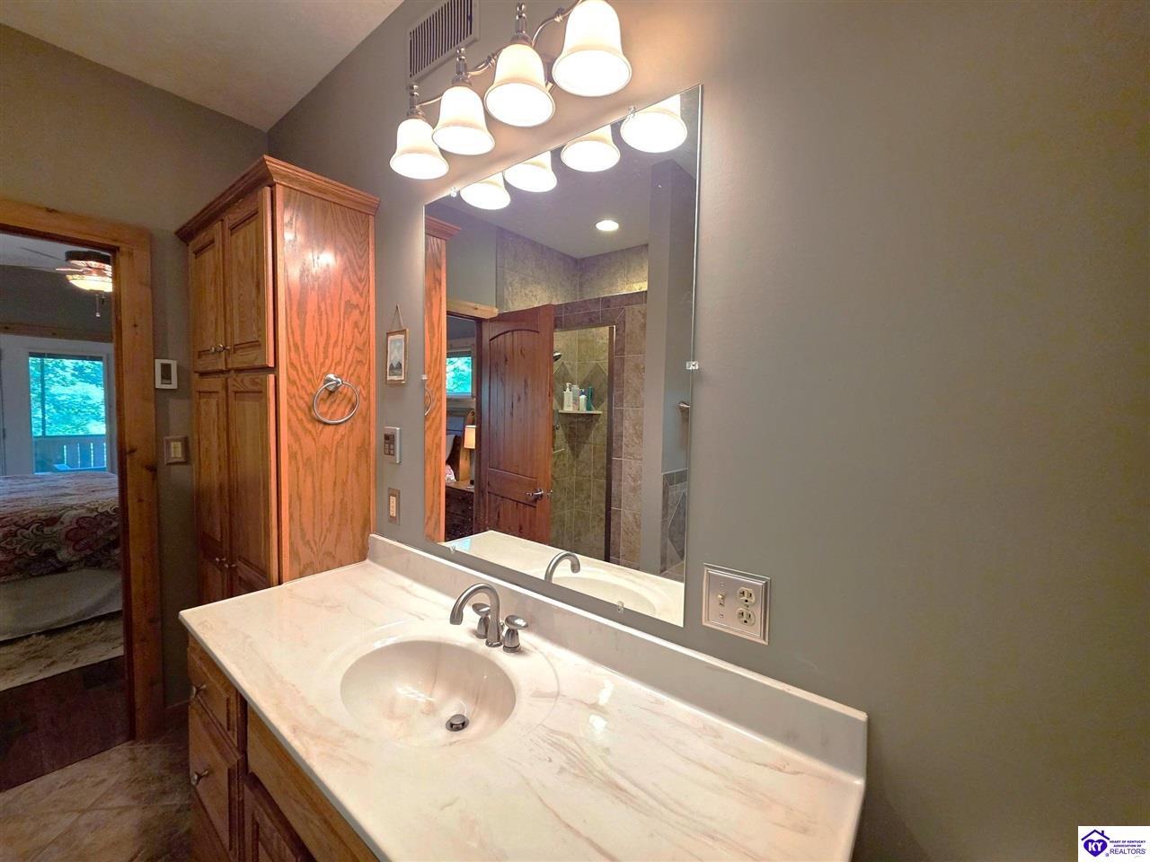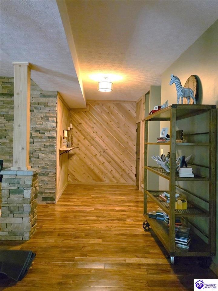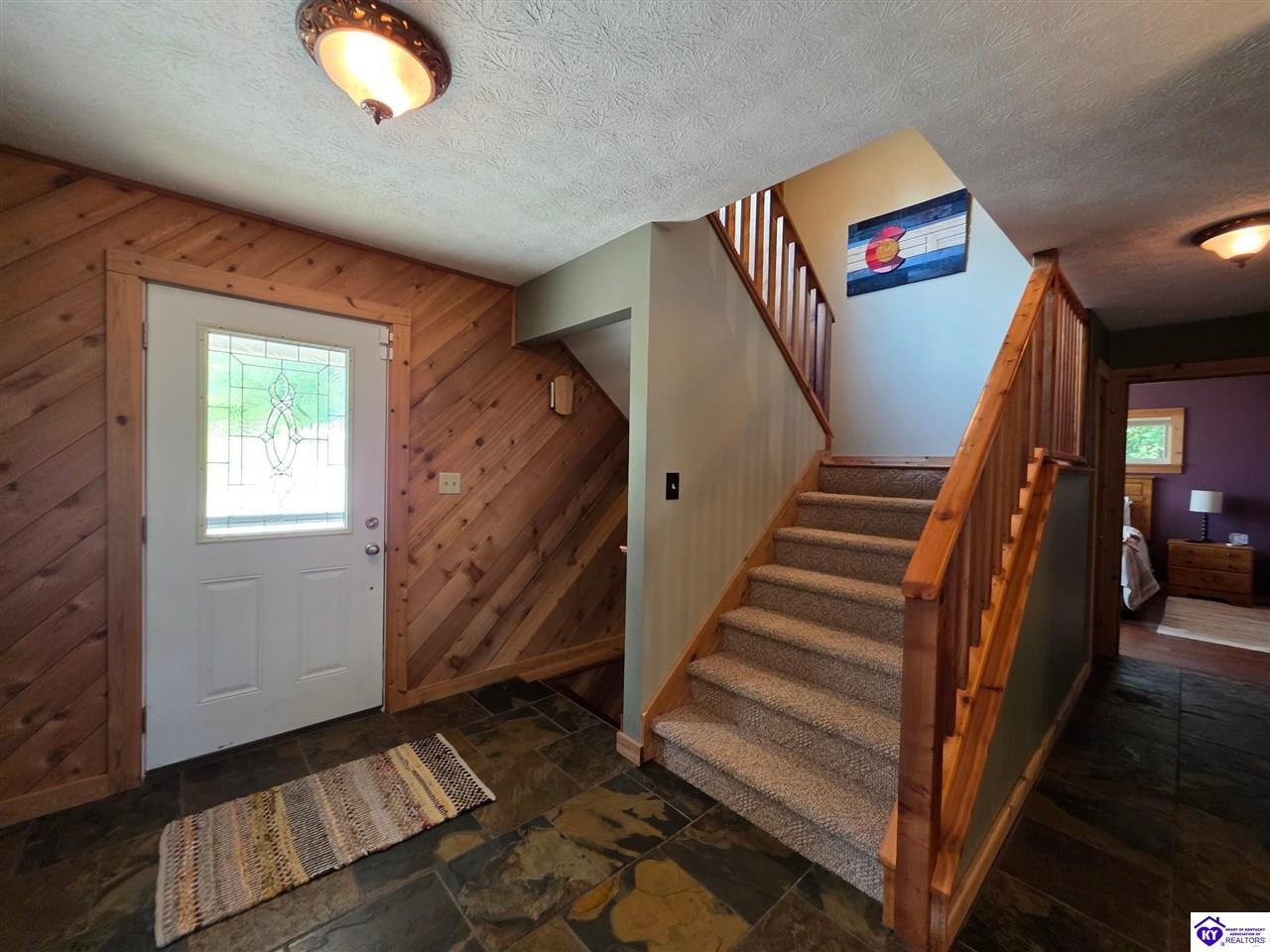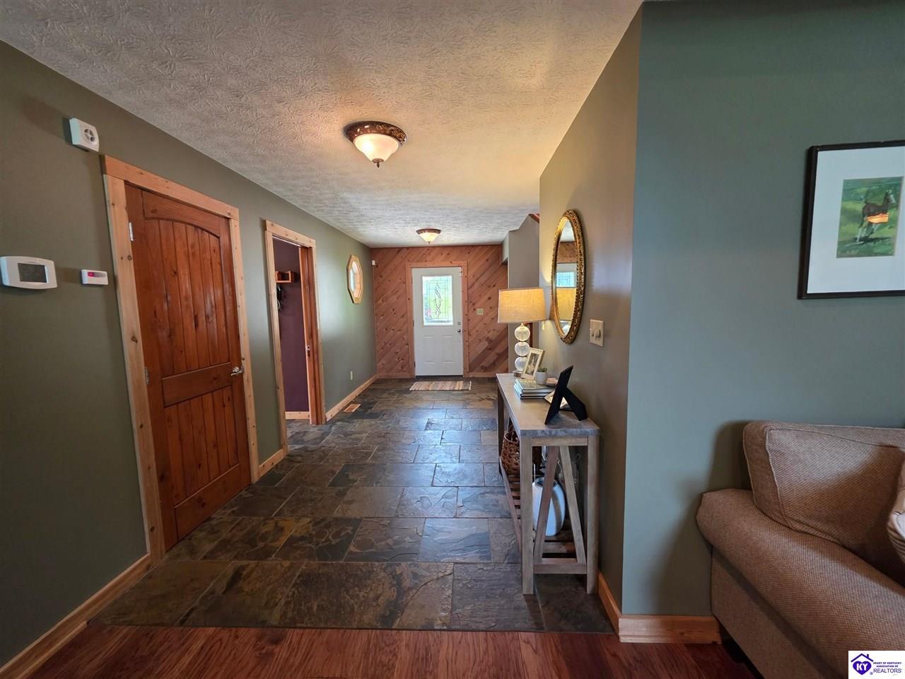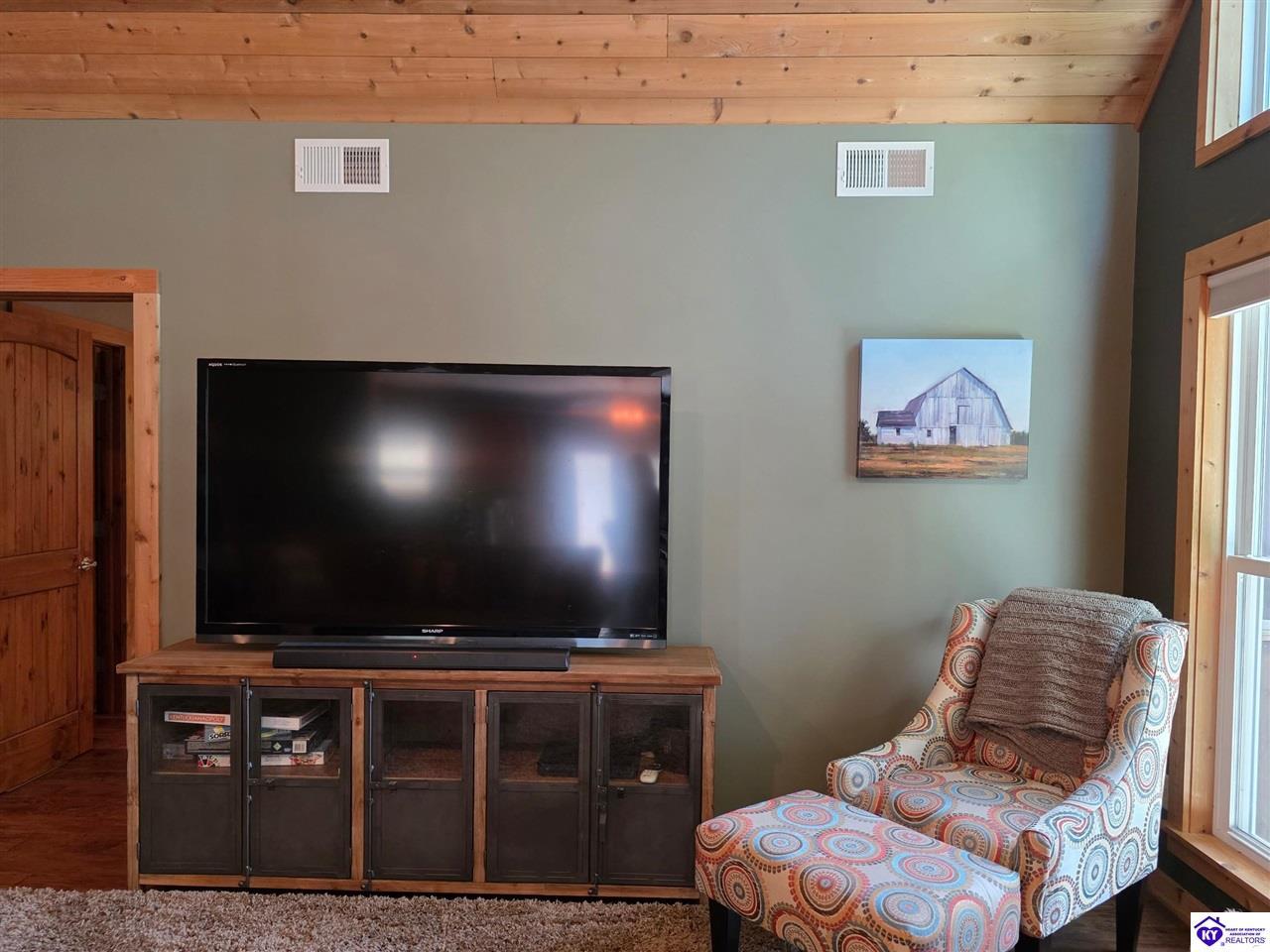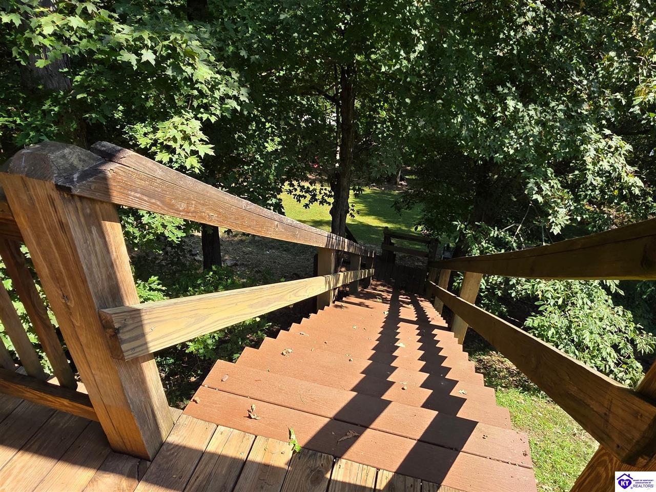 Realtor's notes: Discover the charm of this stunning waterfront home, perfectly situated on two lots with two docks at the bottom of the property. This residence offers a blend of modern amenities and cozy living spaces, making it an ideal retreat for families and friends. 4 bedrooms and a 5th sleeping area or multi-purpose room - and TONS of parking, you can bring your family and friends and still have some privacy! Multiple decks let you spread out there too! TWO waterfront lots, TWO docks (one with 2 jet ski ports that stay!) Furniture is available too! Located in a beautiful neighborhood near two ramps, this home is in the middle of everything by land and by water. The super chill location on a cove off Long Lick Creek is perfect for kayaking, floating, or sunbathing on the docks. Step inside and be instantly greeted by cozy, warm colors that blend perfectly with the natural setting of this lake home. Just off the large foyer is a guest bedroom, full bath, stairs to the loft sleeping area AND catch your first glimpse of that beautiful great room! This open-concept living area is where you'll find that BIG, stone fireplace as the centerpiece of the lake-side wall. Beautiful stone floors help to set the mood for living at the lake! The great room opens up to the main living areas, providing a spacious and inviting atmosphere. With lots of sleeping areas and tons of parking options, there's plenty of room for everyone! There's even room for a large camper or RV in the detached, multipurpose shed! Adjacent to the fireplace is a crowd-sized dining area with a window wall and adjoining kitchen. The custom kitchen comes with tons of cabinets and upgrades, making it a chef's dream! The main level laundry is conveniently located near the outdoors, adding to the home's practicality. The primary bedroom suite on the main level includes a bath with heated floors, a tile shower, and a vintage-style tub. There's also a screen porch off the primary bedroom for morning coffee or afternoon naps. The lower level features a family area with an electric fireplace that changes colors, a dining or card table, and another lounging area to relax. The bunk room on this level comfortably sleeps eight, and there's another sleeping area or multi-purpose room that's plumbed for a future bar. Storage is abundant both inside and outside the home, including a huge RV-sized shed with tall overhead doors that let you drive THROUGH the building!