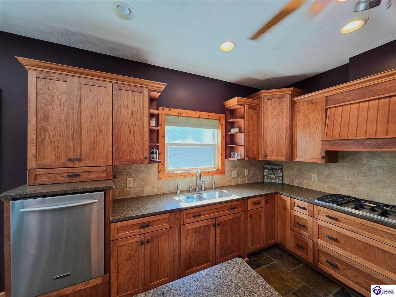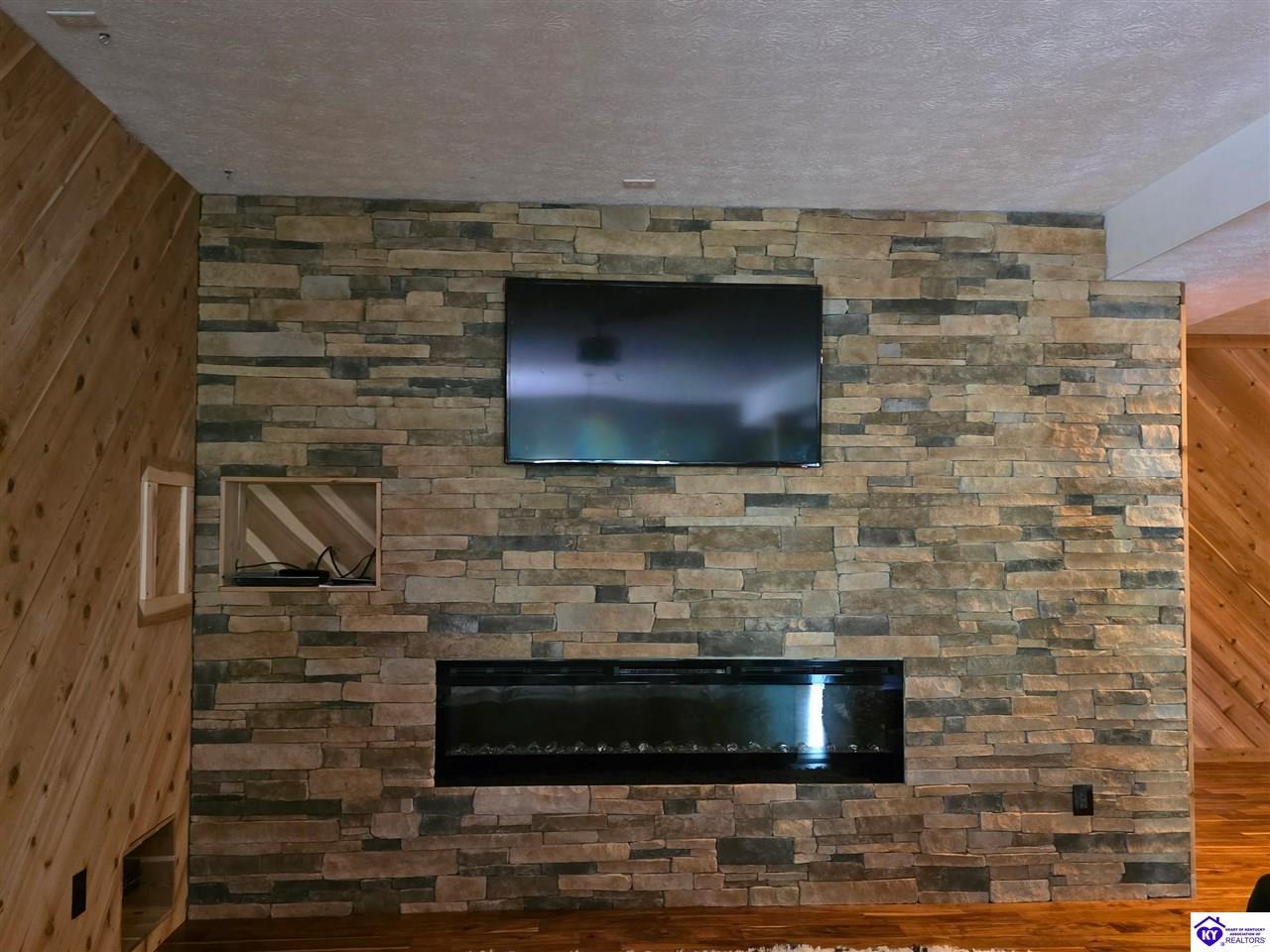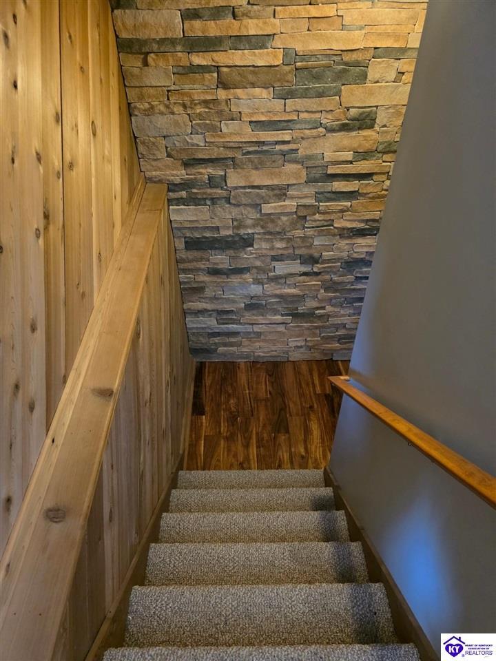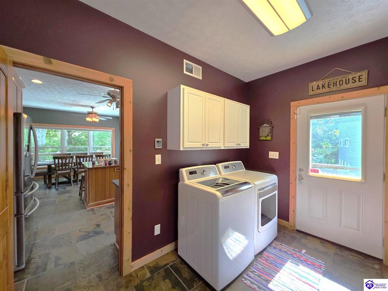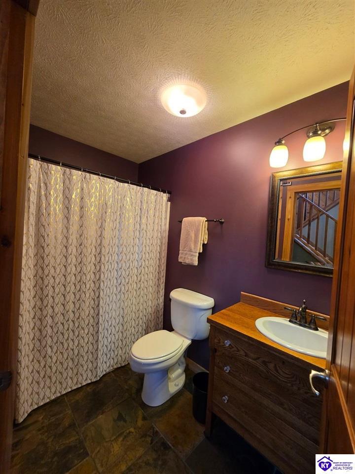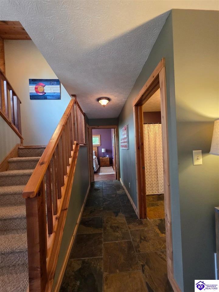 Realtor's notes: Discover the charm of this stunning waterfront home, perfectly situated on two lots with two docks at the bottom of the property. This residence offers a blend of modern amenities and cozy living spaces, making it an ideal retreat for families and friends. 4 bedrooms and a 5th sleeping area or multi-purpose room - and TONS of parking, you can bring your family and friends and still have some privacy! Multiple decks let you spread out there too! TWO waterfront lots, TWO docks (one with 2 jet ski ports that stay!) Furniture is available too! Located in a beautiful neighborhood near two ramps, this home is in the middle of everything by land and by water. The super chill location on a cove off Long Lick Creek is perfect for kayaking, floating, or sunbathing on the docks. Step inside and be instantly greeted by cozy, warm colors that blend perfectly with the natural setting of this lake home. Just off the large foyer is a guest bedroom, full bath, stairs to the loft sleeping area AND catch your first glimpse of that beautiful great room! This open-concept living area is where you'll find that BIG, stone fireplace as the centerpiece of the lake-side wall. Beautiful stone floors help to set the mood for living at the lake! The great room opens up to the main living areas, providing a spacious and inviting atmosphere. With lots of sleeping areas and tons of parking options, there's plenty of room for everyone! There's even room for a large camper or RV in the detached, multipurpose shed! Adjacent to the fireplace is a crowd-sized dining area with a window wall and adjoining kitchen. The custom kitchen comes with tons of cabinets and upgrades, making it a chef's dream! The main level laundry is conveniently located near the outdoors, adding to the home's practicality. The primary bedroom suite on the main level includes a bath with heated floors, a tile shower, and a vintage-style tub. There's also a screen porch off the primary bedroom for morning coffee or afternoon naps. The lower level features a family area with an electric fireplace that changes colors, a dining or card table, and another lounging area to relax. The bunk room on this level comfortably sleeps eight, and there's another sleeping area or multi-purpose room that's plumbed for a future bar. Storage is abundant both inside and outside the home, including a huge RV-sized shed with tall overhead doors that let you drive THROUGH the building!
