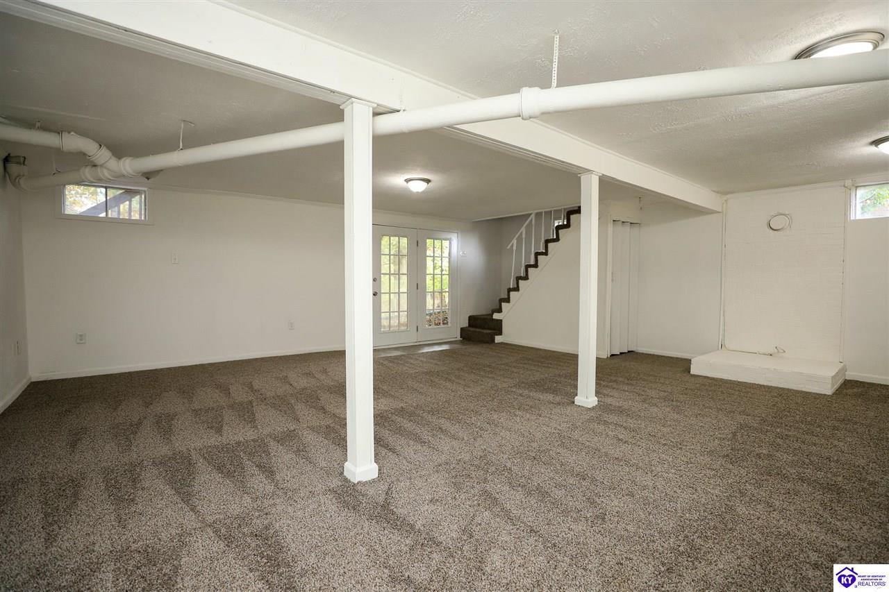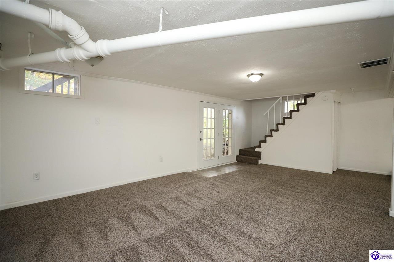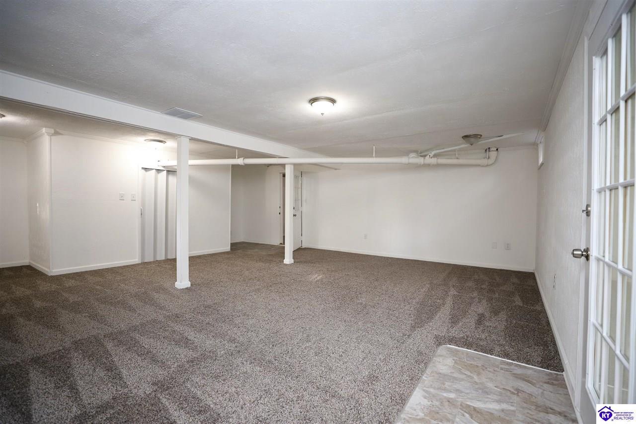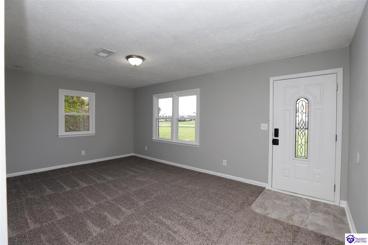 Realtor's notes: This remodeled brick home offers the perfect blend of comfort and character on a scenic wooded lot that provides natural privacy and tranquil views from your deck. Step inside to discover beautifully updated new flooring throughout, creating a fresh and welcoming atmosphere that flows seamlessly from room to room. The heart of this home is its spacious kitchen, complete with a convenient island that serves as both a gathering spot for morning coffee and an ideal workspace for culinary adventures. The kitchen is fully equipped with a full appliance package, whether you're preparing a quick breakfast or hosting a dinner party, this kitchen has the space and functionality to handle it all. With three well-appointed bedrooms and one and a half bathrooms, there's comfortable space for the whole family. The updated bathroom features a double vanity and stylish tile surround in the tub shower area, adding both practicality and modern appeal to your daily routine. The fully finished walk-out basement provides excellent additional living space, perfect for a family room, home office, or recreational area. This versatile space opens directly to the outdoors, creating wonderful indoor-outdoor living opportunities. Outside, you'll appreciate the covered front porch while taking in the peaceful wooded surroundings. Additional features include a 2-car garage, plush landscaping and a sought-after location in the back of the neighborhood. Located in Elizabethtown, this property offers easy access to I-65 and local amenities while maintaining that desired sense of privacy and natural beauty. This home combines practical updates with timeless charm, creating a wonderful place to call home.