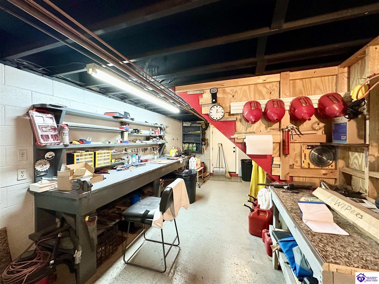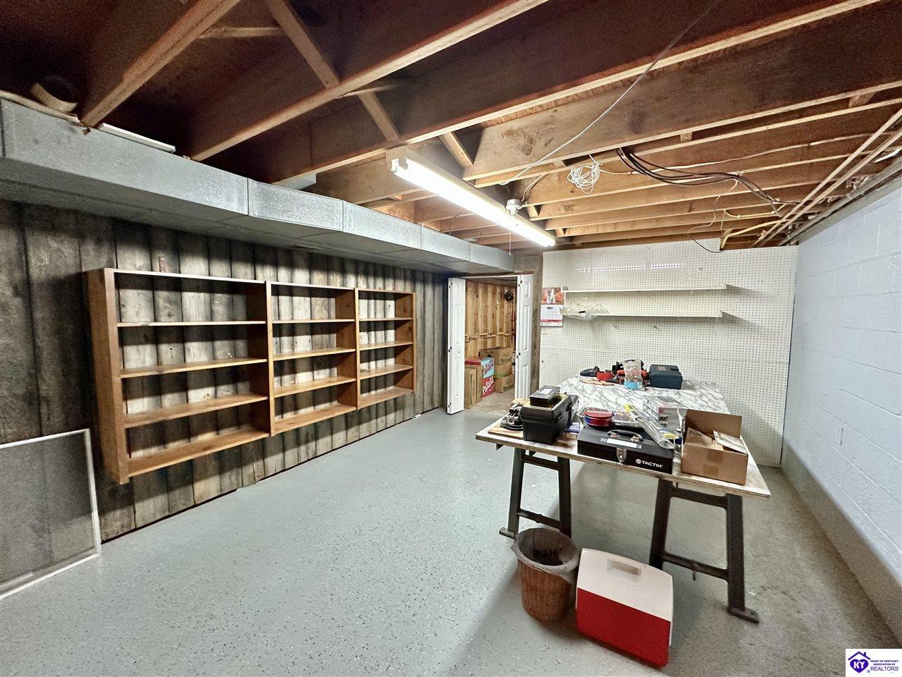 Realtor's notes: Stunning, spacious ALL Brick ranch home located in a prestigious neighborhood, nestled on over 1/2-acre PARK-LIKE setting. Home Features: Open foyer welcomes you into a large living- room/dining area with large newly updated picture windows. Kitchen includes granite countertops with tile backsplash, built in Double Ovens and a stove top island with counter height seating. Family room features beamed ceilings, fireplace and sliding barn doors for added privacy. 4 large bedrooms and 2-1/2 baths. A newly remodeled master bath has double solid surface vanity and walk in tile shower. All bedrooms offer abundant closets for any and all storage needs. Other rooms include a separate home office, and large laundry room with ample hanging space, cabinets and pantry. Full basement is accessible from outside and is a handy man's dream with workbenches and meticulously maintained shelving and more. Basement added features include an in-home theater room with projection screen and kitchenette with sink and cabinets. Exterior has a concrete patio, large mature trees and Leaf-guards with a lifetime transferable warranty. HVAC and windows have all been recently updated. Don't miss out on your chance to own this prestigious gem of a home that's priced to sell! Schedule your showing today.