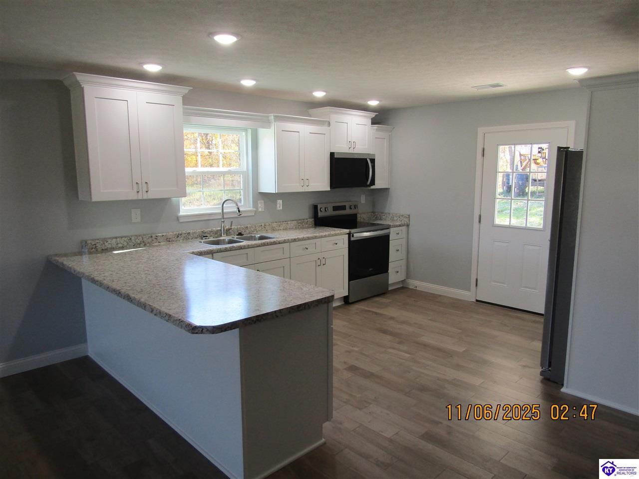 Directions: Dixie Hwy/31W to Hwy 1638. At intersection, TR onto Hwy 448. Bear right at bypass and follow Hwy 448. TR onto Worley Ln. TR onto School Side Dr. Property on right. Sign posted.