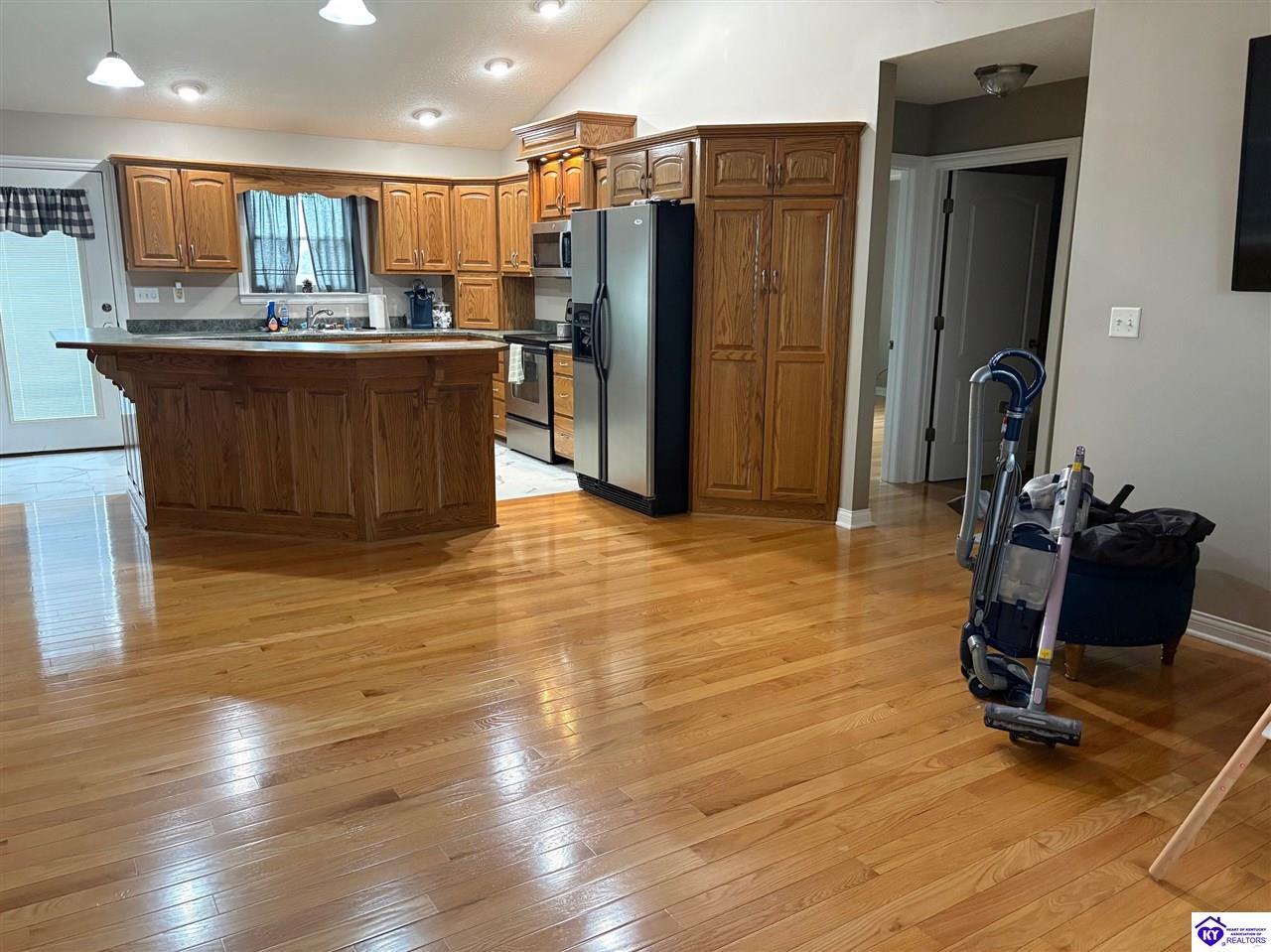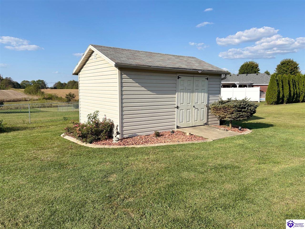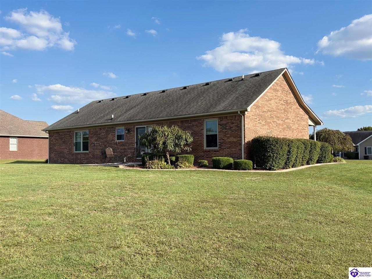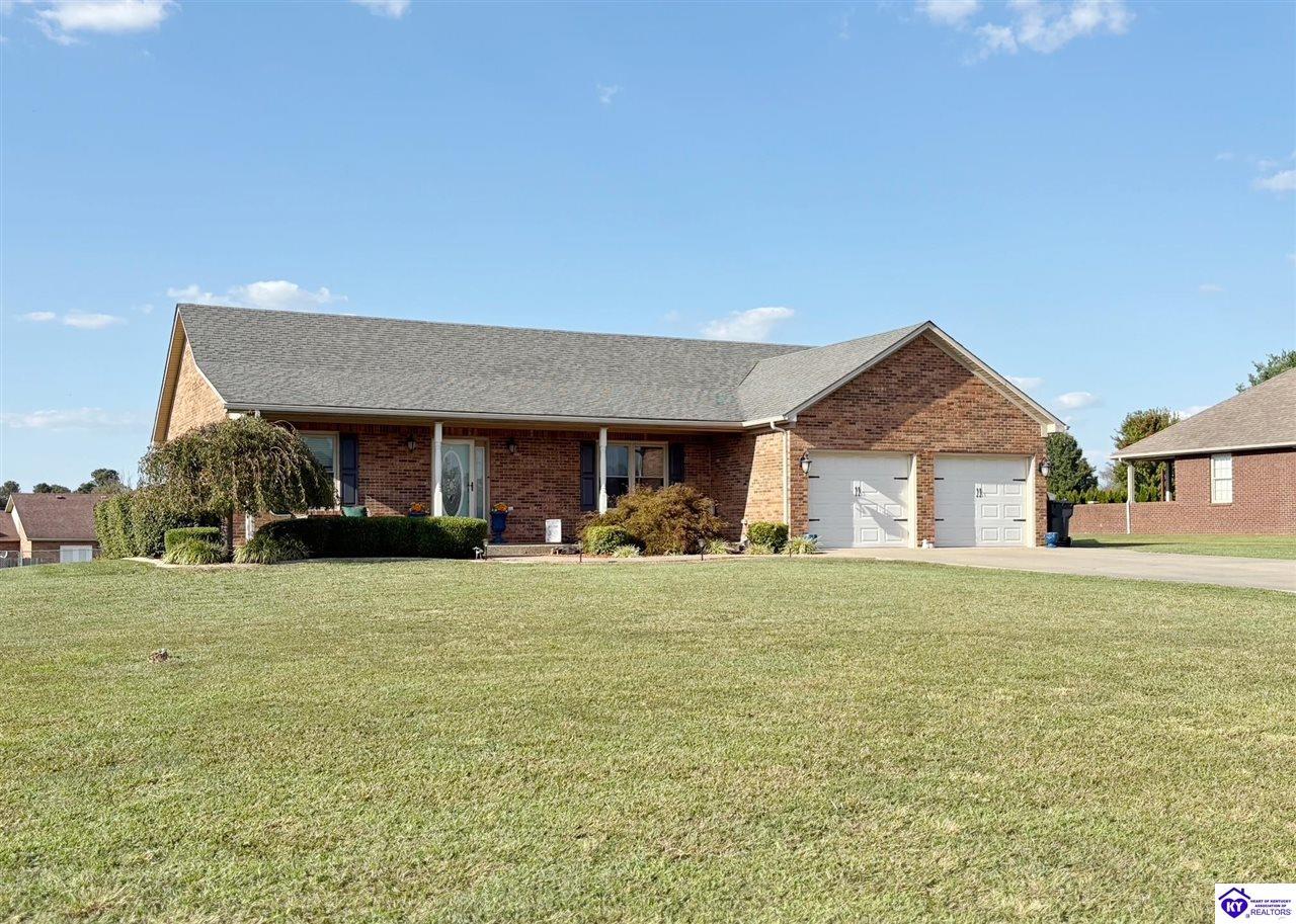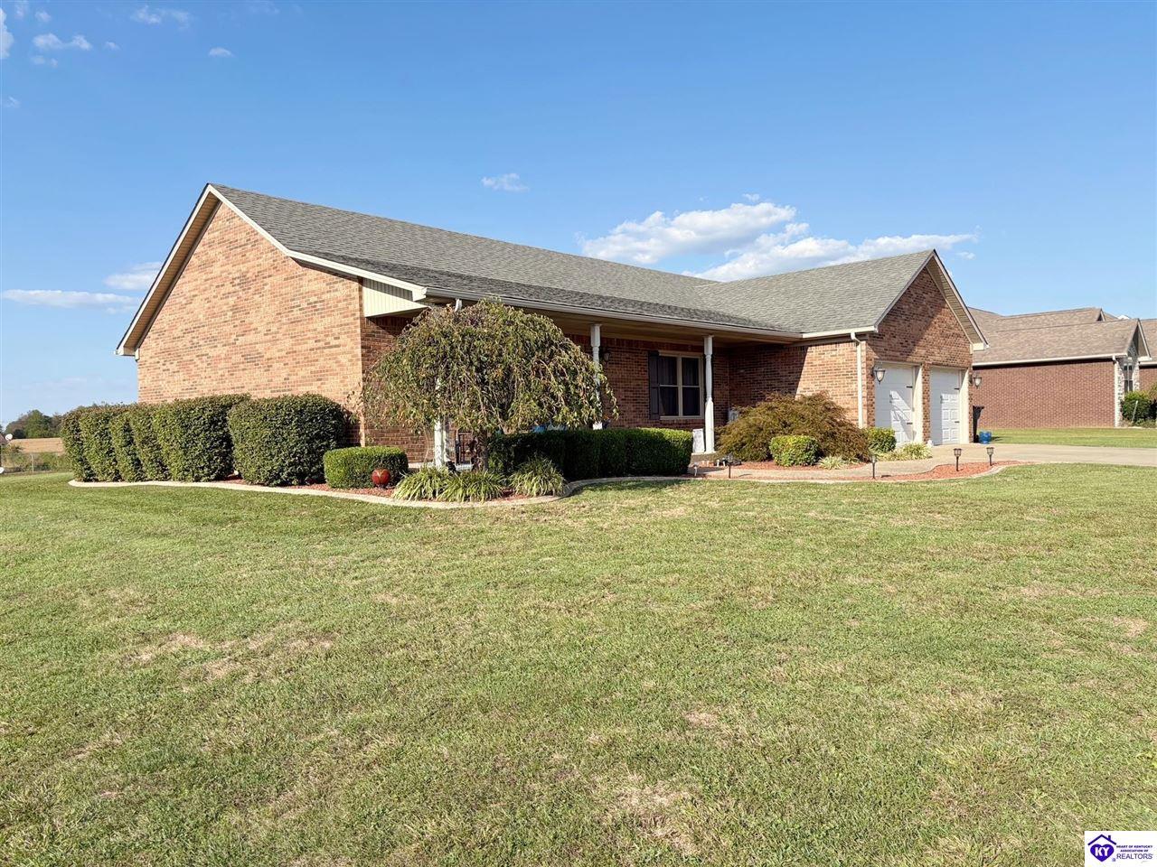 Realtor's notes: Very well maintained home in a very desirable neighborhood in Hodgenville!! Come see the home ASAP because it will not last!! Owner has had this home appraised and it appraised at $358,000 - this house is priced to SELL and will give you built in equity. Walk into this open floor plan home with tall ceilings and beautiful hardwood flooring throughout the living area. The kitchen has a TON of storage in the custom cabinets as well as in the custom island. The laundry room off of the living area has custom cabinets as well for plenty of storage. Main living on the main floor as well as 2 well sized bedrooms on the opposite side of the home. Main bedroom has a LARGE walk in closet and a custom shower! Enjoy a HUGE amount of bonus space downstairs in your finished basement that comes with a designer couch and pool table included in the home sale. This space has potential for anything you'd want to use it for! There is an unfinished area with shelves for MORE storage as well as an attic space above the garage for even MORE storage. Enjoy a well maintained and handy shed in the backyard as well! Come see this home today!! Don't miss out!!! (One or more of these photos have been virtually staged)