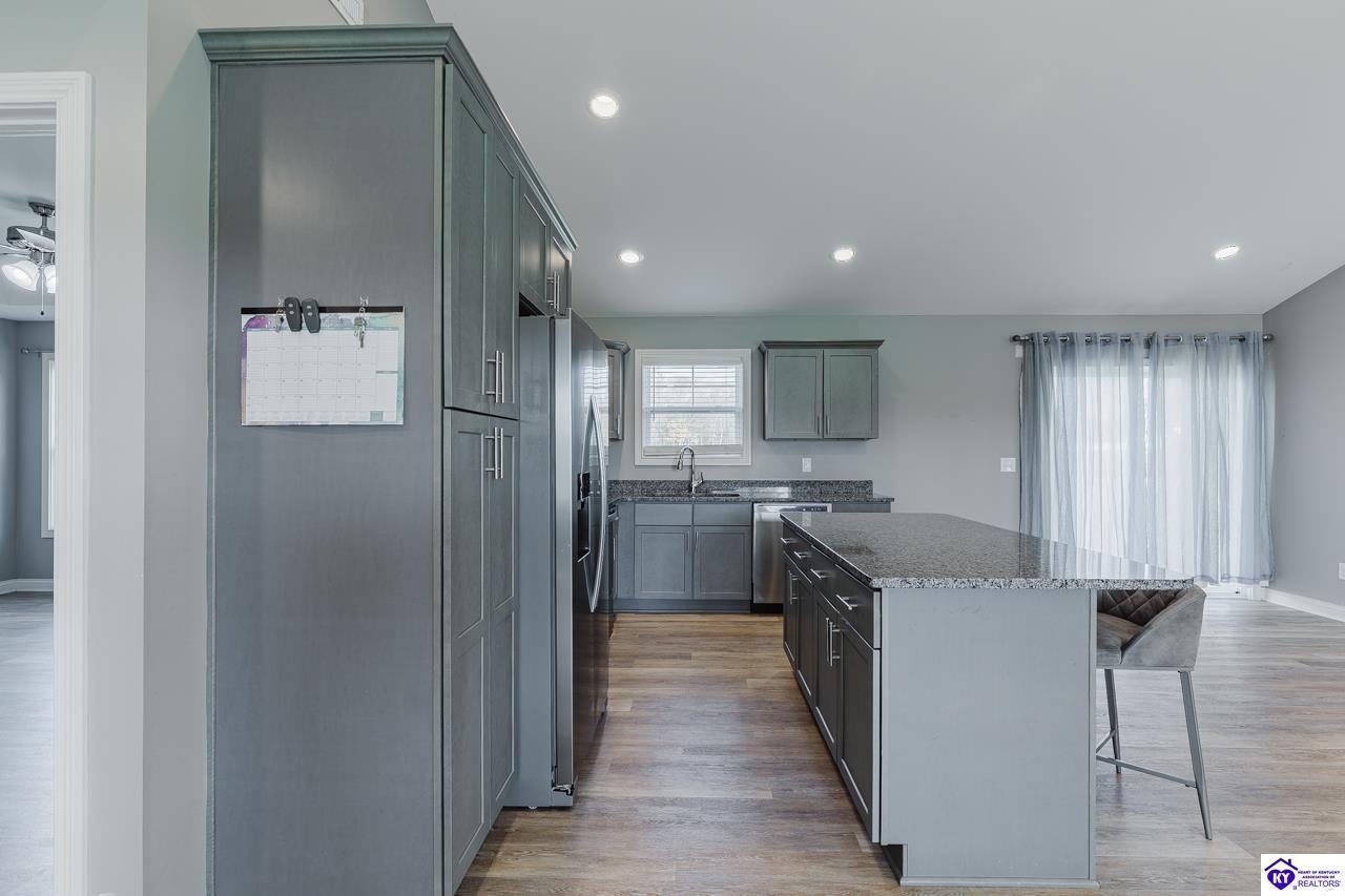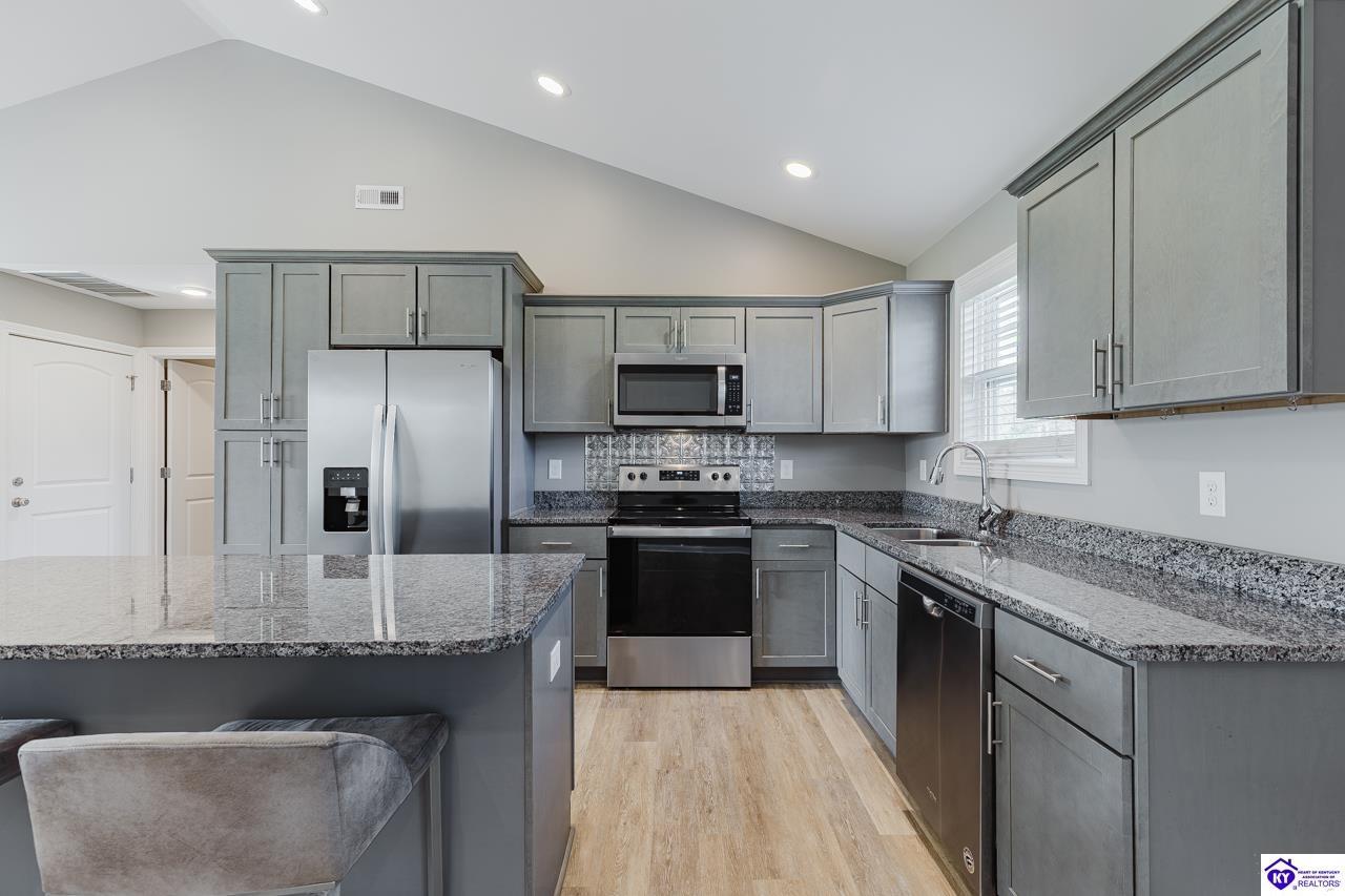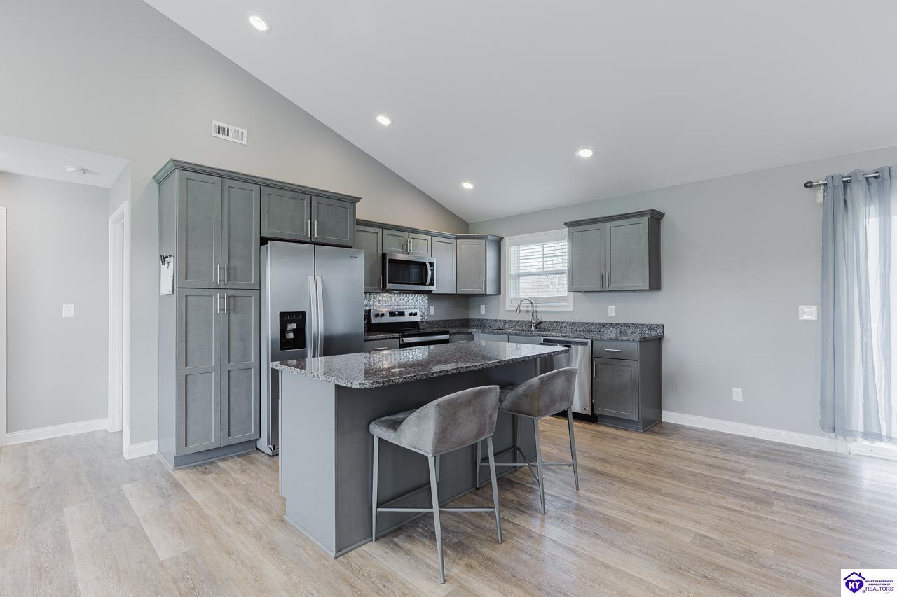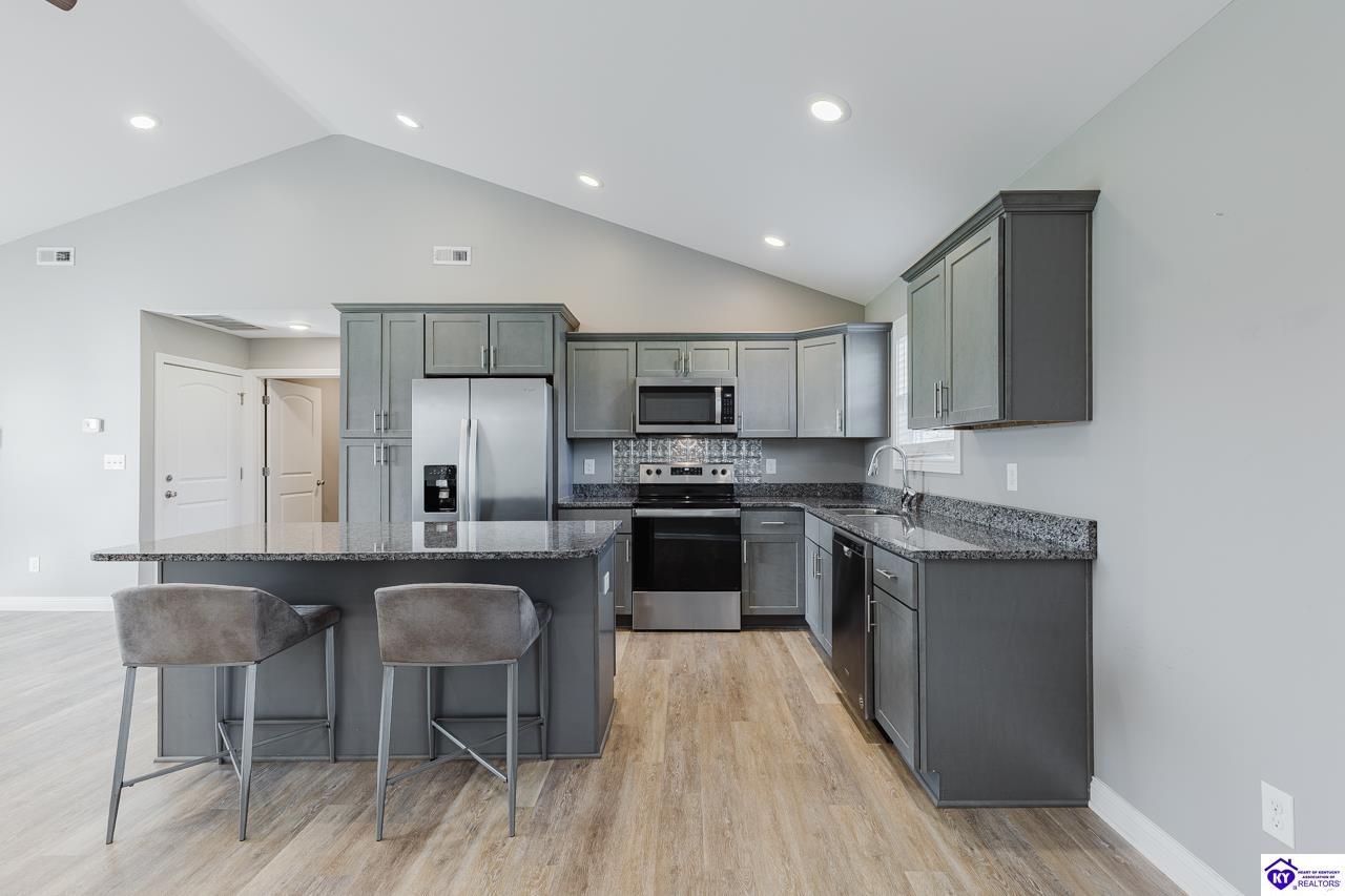 Realtor's notes: Welcome home to this charming 3 bedroom/2 bath ranch that feels like new construction. Perfectly located near all that Elizabethtown has to offer and an easy commute to Fort Knox, this property combines comfort, convenience, and modern style. Inside, the open floor plan features beautiful flooring, high ceilings, and an abundance of natural light. The kitchen stands out with gorgeous cabinetry, granite countertops, a custom island, and plenty of space for cooking and gathering. The split-bedroom design provides privacy, and the spacious primary suite includes double closets and a luxurious bathroom with a dual vanity. A large laundry room with pantry storage, two additional bedrooms, and another full bath complete the layout. Step out back to enjoy the patio and a huge backyard, perfect for relaxing, entertaining, or play. Sitting on more than an acre, this property offers the ideal balance of privacy and open space. Take the 3D virtual tour and schedule your private showing today!