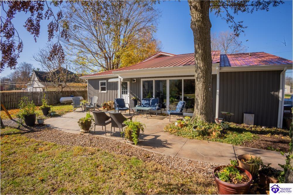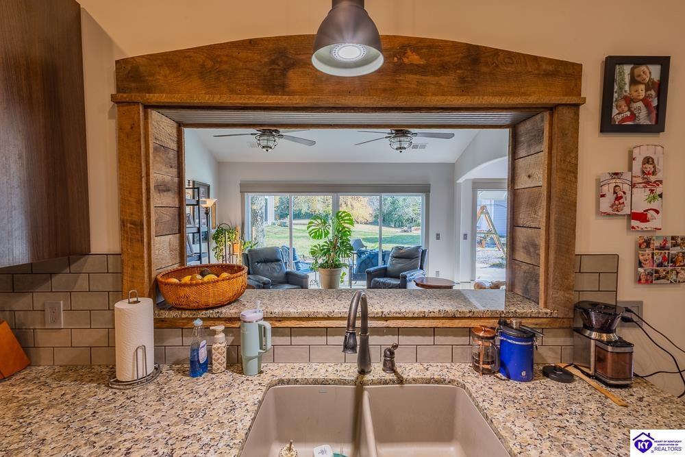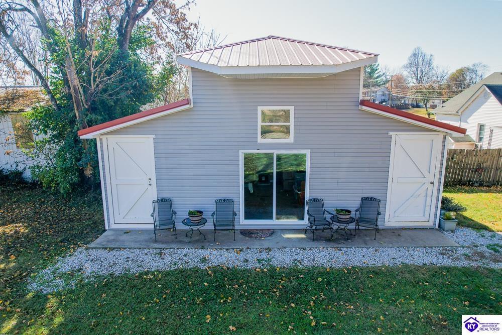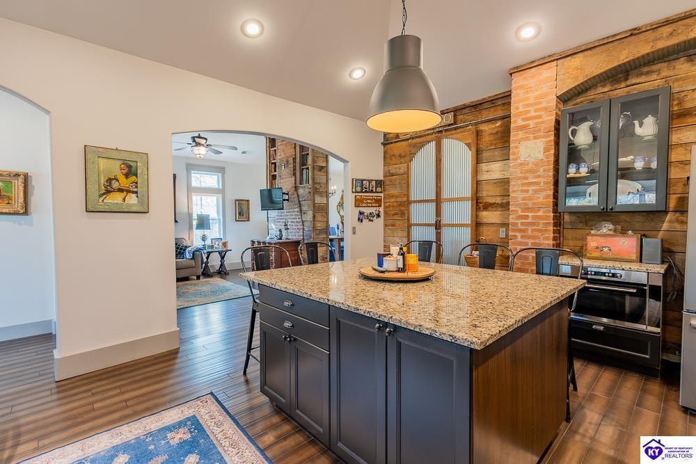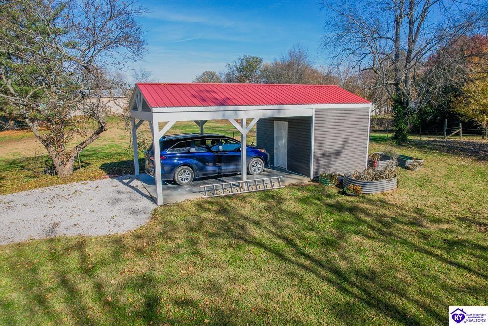 Realtor's notes: This home features custom barn wood trim, beautiful archways, and pre-engineered hardwood flooring throughout. The spacious kitchen offers an oversized island, granite countertops, and custom cabinetry providing ample storage. The living room provides plenty of natural light with large windows overlooking the backyard and concrete patio. The primary bedroom includes pocket doors and an updated en suite bathroom. Additional features include two detached buildings—ideal for storage, workshops, or studio space—along with a one-car attached carport equipped with an RV hookup. The property also includes three raised garden beds, mature shade trees, and a large backyard perfect for outdoor enjoyment.