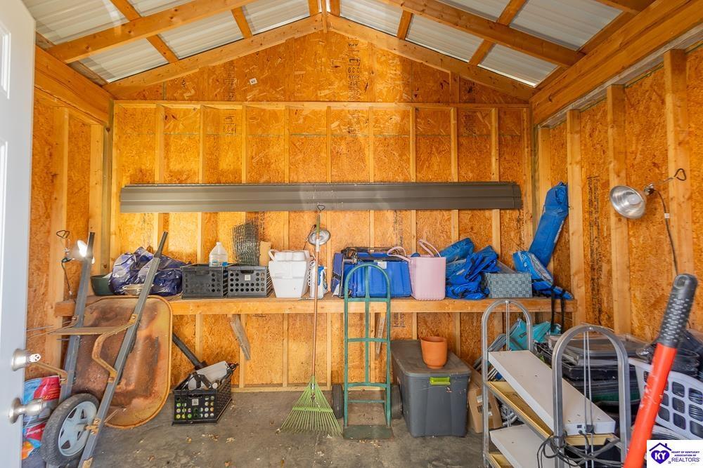 Exterior Covered Front Porch, Workshop, Garden Area, Storage Shed