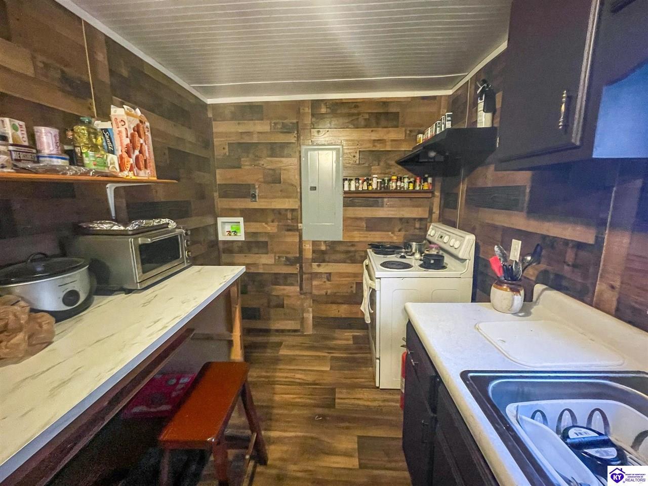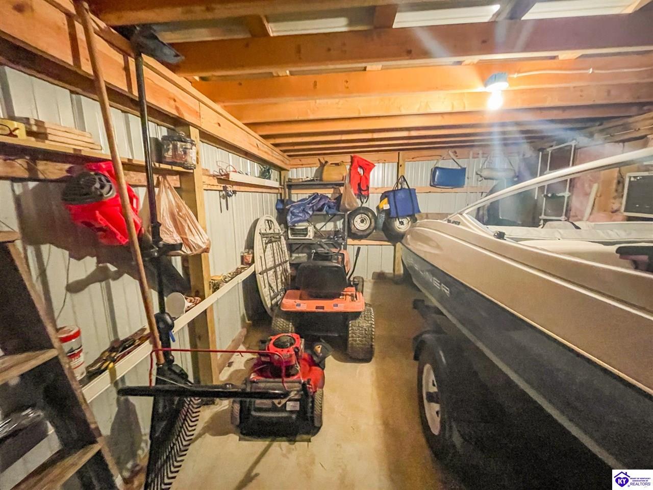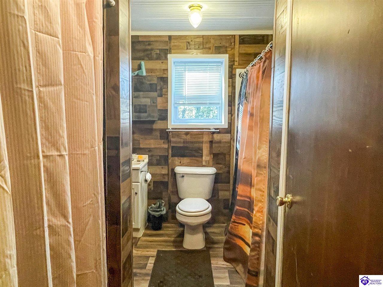 Realtor's notes: Come tour this quaint 2 bedroom, 1 bath home in the sought after Nolin Lake Estates. This home comes fully furnished and ready for your weekend trip to the lake, or used as a short term rental. The cozy kitchen has a good amount of storage space. The main living area is open for entertaining or even adding another sleeping area. There is a covered patio/sunroom on the back that is very nice for you to sit and enjoy nature from the indoors. Outside, the driveway hill has been paved up to the area around the home. Once at the top, there is a large area for vehicles and a nice spot with a fire pit, perfect for sitting outside and enjoying the wonderful lake life atmosphere. There is even an outhouse out back for a little extra charm. This home has everything you need for a relaxing stay at the lake. The neighborhood has a boat ramp for access to the water. Did I mention that the seller is selling the property fully furnished and is also leaving the Bayliner boat, golf cart, and mowers with an acceptable offer? Don't hesitate on this one, schedule your showing today!