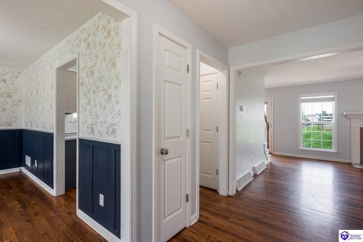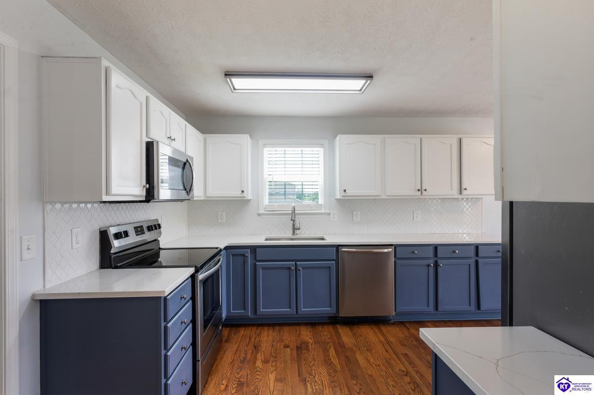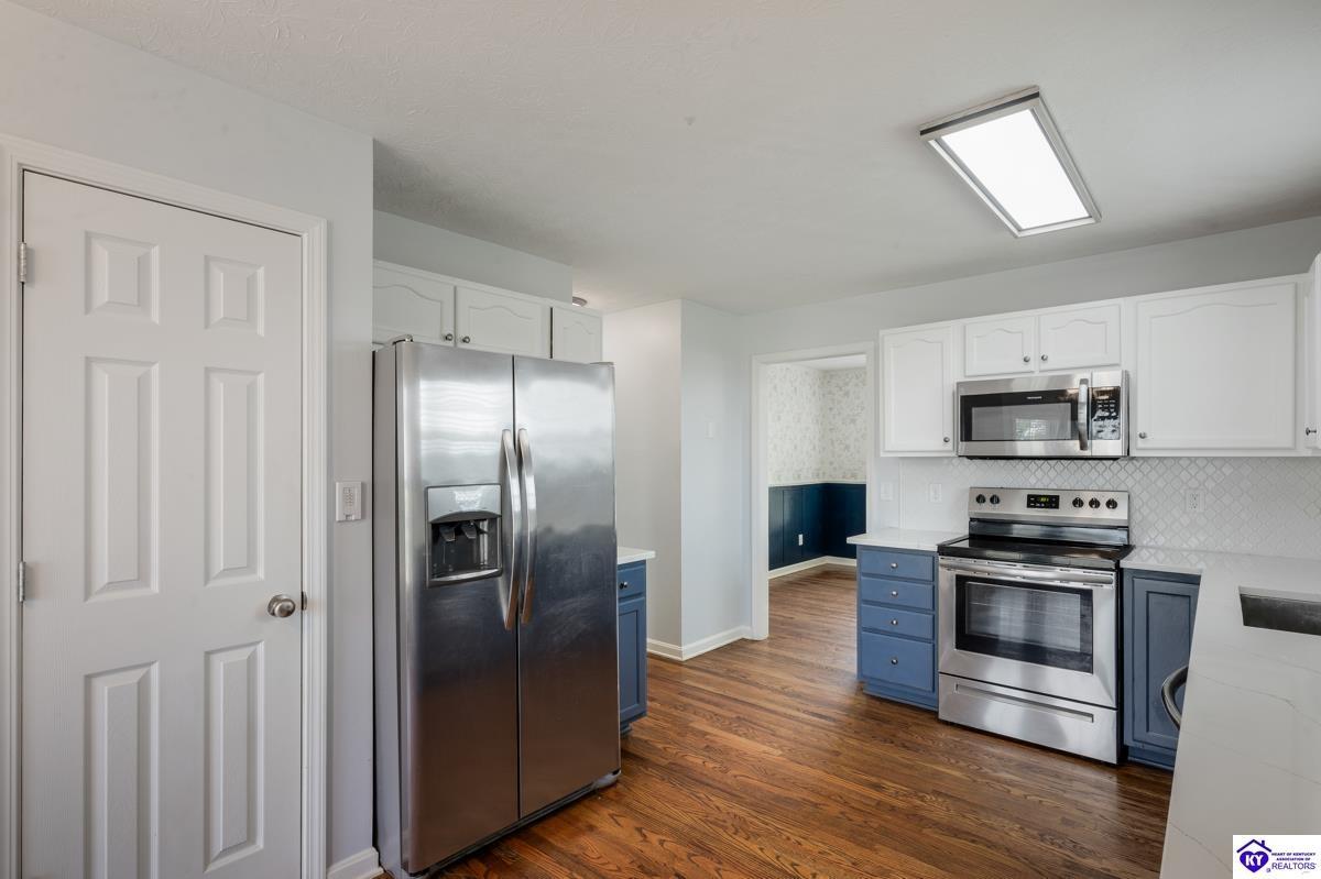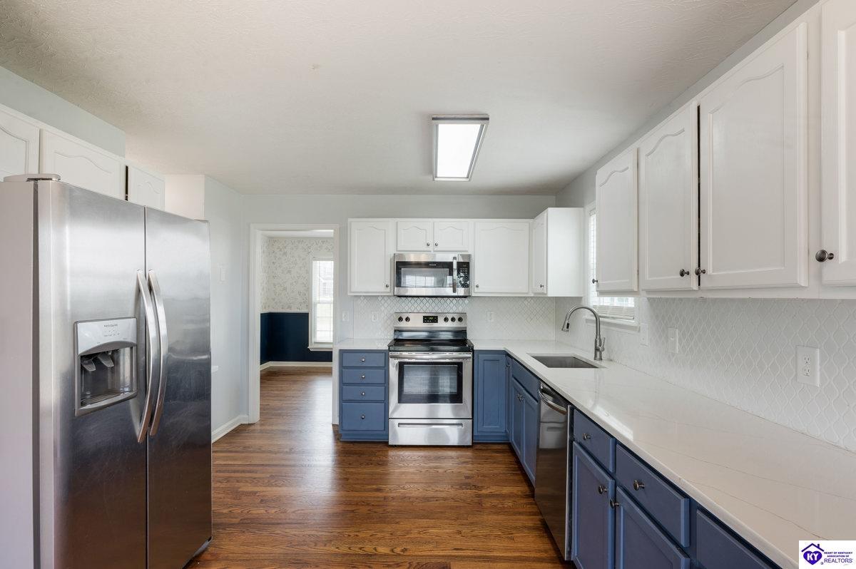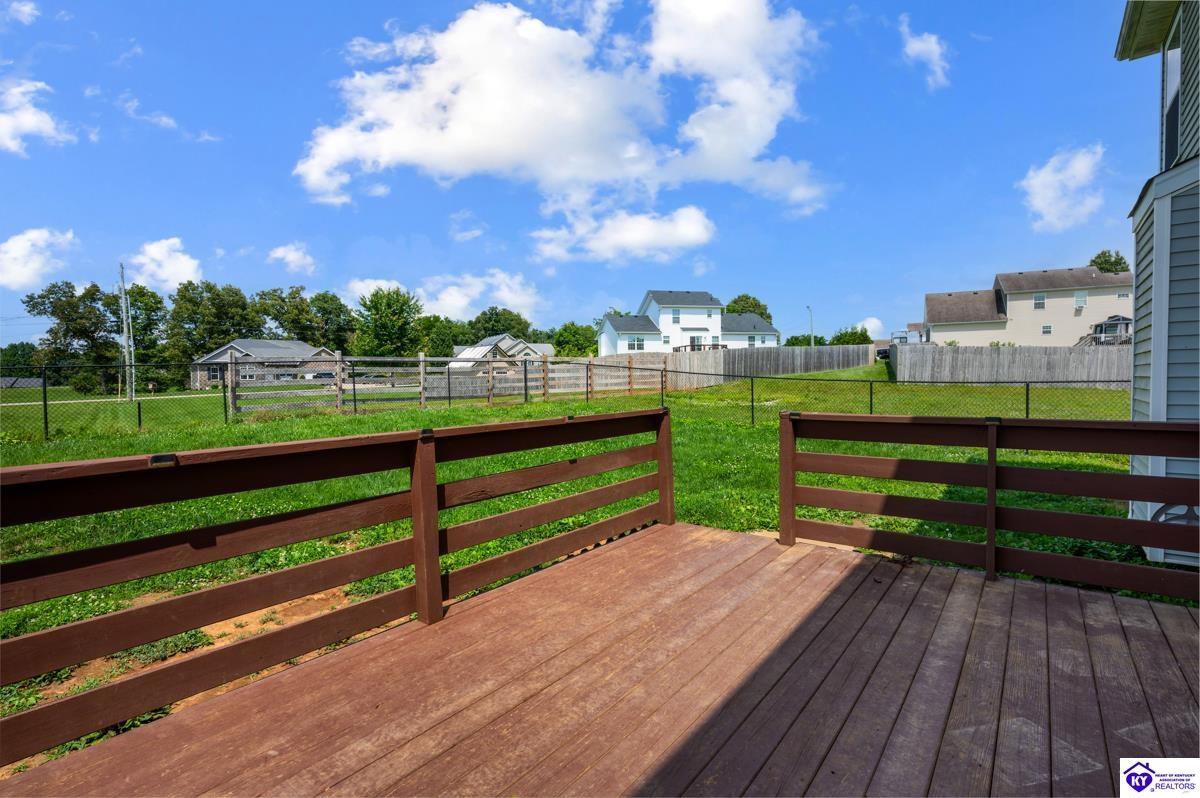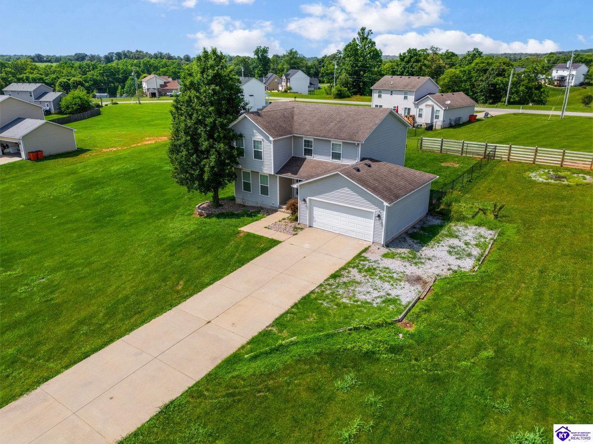 Realtor's notes: Welcome to this beautifully maintained home in the desirable Cottonwood Estates subdivision, ideally set on a generous 0.69-acre lot. Enjoy the best of country living with easy access to Elizabethtown, Fort Knox, Glendale, and Louisville. This spacious residence offers 2,750 square feet of living space and blends charm with modern functionality. Step onto the inviting covered front porch or relax on the back deck overlooking the fenced-in backyard—perfect for entertaining, pets, or family gatherings. Inside, you’ll find a thoughtfully designed layout featuring a formal dining room, a large living room, and a bright eat-in kitchen with white cabinetry, brand-new appliances, and a custom tile backsplash. Hardwood flooring and plush carpeting flow throughout the home. The primary suite offers comfort and privacy with his-and-her closets, a private ensuite bath, separate shower, and water closet. Two additional bedrooms and a full bath complete the main level. The full basement provides a finished family room—ideal for a home theater, playroom, or second living space.