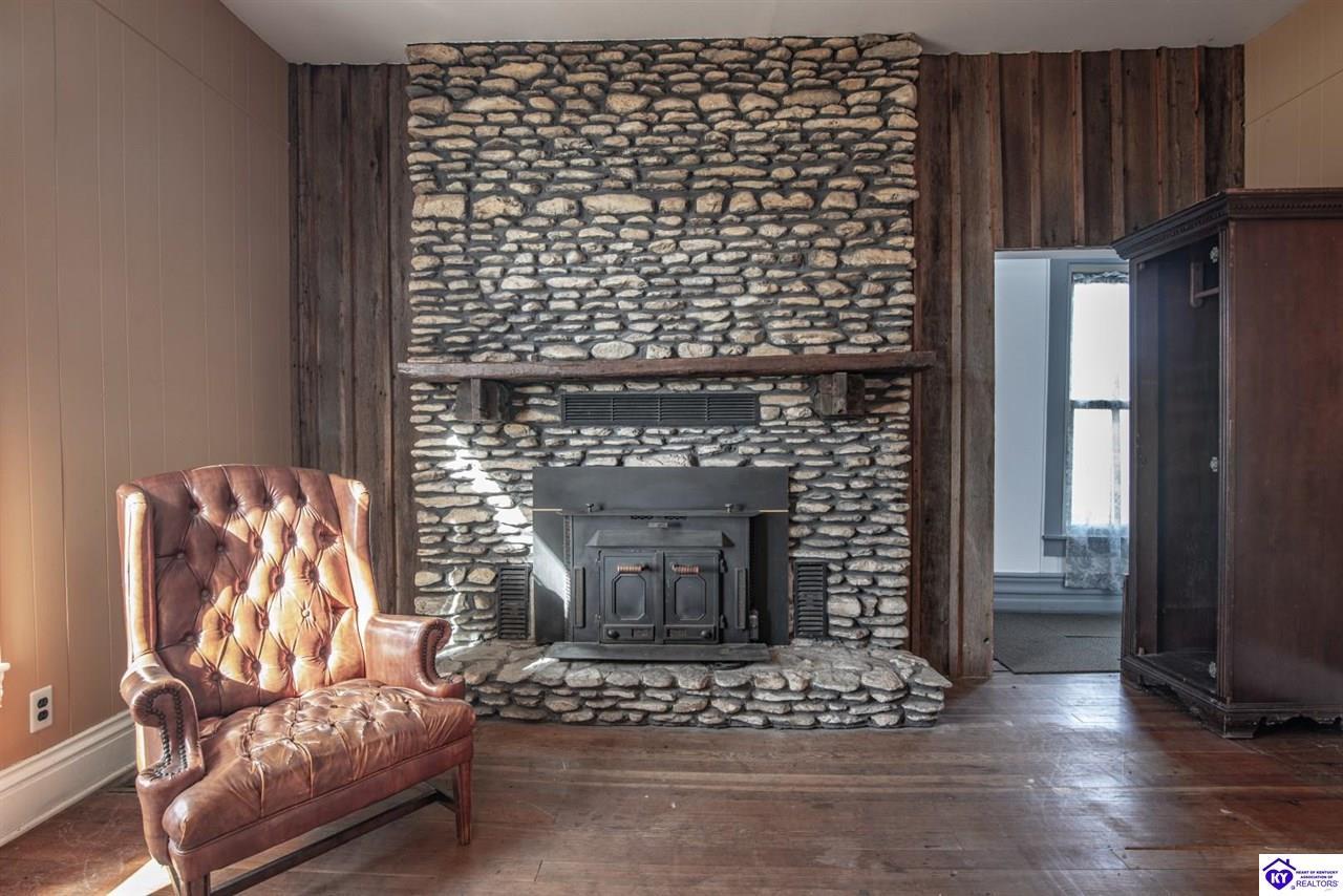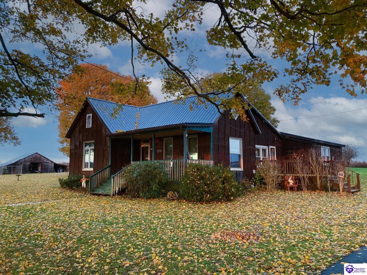 Realtor's notes: Discover the charm of this rustic farmhouse set on a picturesque 3.41 acres, complete with the remnants of former blueberry orchards, a massive barn, a well, and a dedicated well house. This inviting property features both a country-style covered front porch and a spacious covered back porch, perfect for taking in peaceful views from every angle. Inside, you’ll find two bedrooms and two full bathrooms, hardwood, laminate and tile floors and multiple living spaces—including a cozy living room, a formal dining room, and a great room with ceiling to floor stone wood-burning fireplace. The eat-in kitchen offers plenty of room for everyday meals, while the large laundry room adds convenience. A finished bonus room in the attic provides additional flexibility for a home office, studio, or extra storage. The home includes a newer roof, newer HVAC, a generous side deck, and a detached two-car garage. With timeless character and endless potential, this property is ready for your personal vision to make it truly shine.