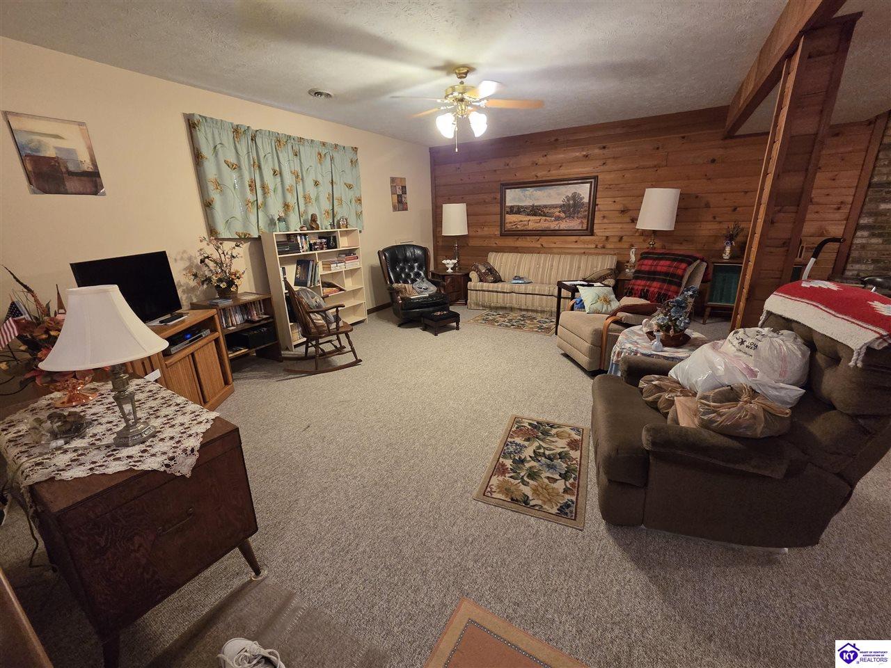 Realtor's notes: This well-maintained raised ranch, built in 1985, offers comfortable living with three bedrooms and two full baths on the main level, including a master BR with its own bath. The main floor features a spacious living room and a practical kitchen/dining combination designed for everyday use. The finished basement adds extra living space with a den or family room featuring a wood stove, a half bath, and a laundry area, along with a built-in two-car garage. The home is equipped with an electric heat pump and central air for year-round comfort. Conveniently located just off the US-31W Bypass, it’s close to the hospital, groceries, restaurants, and most any other in-town amenity.