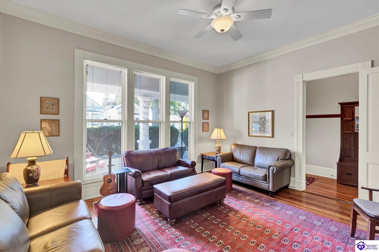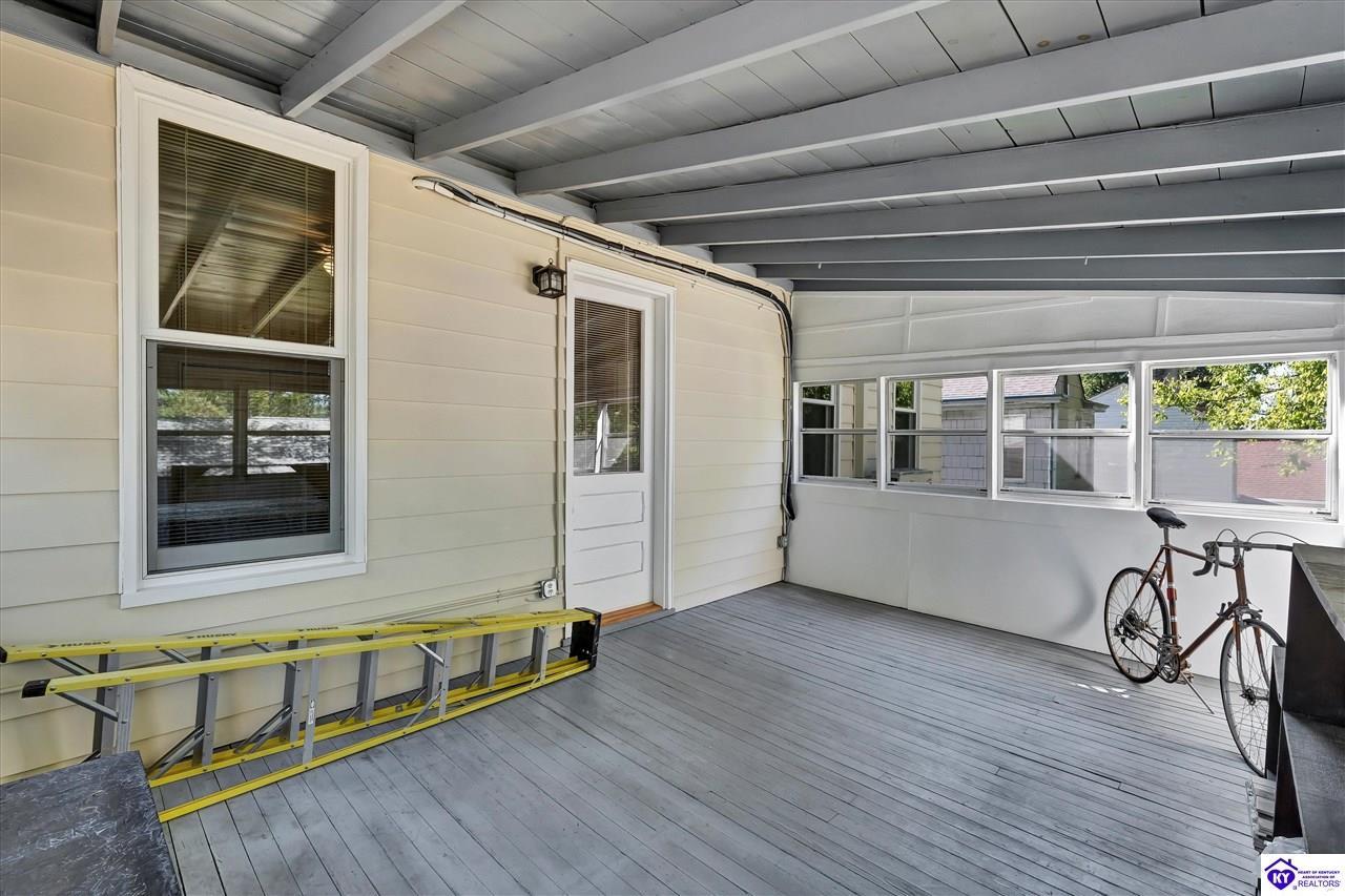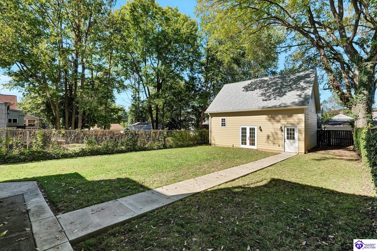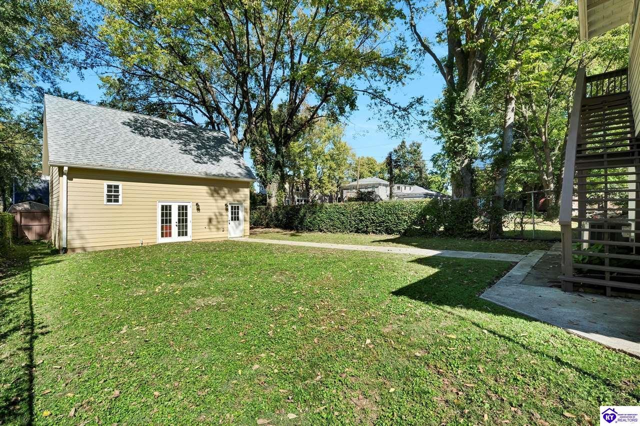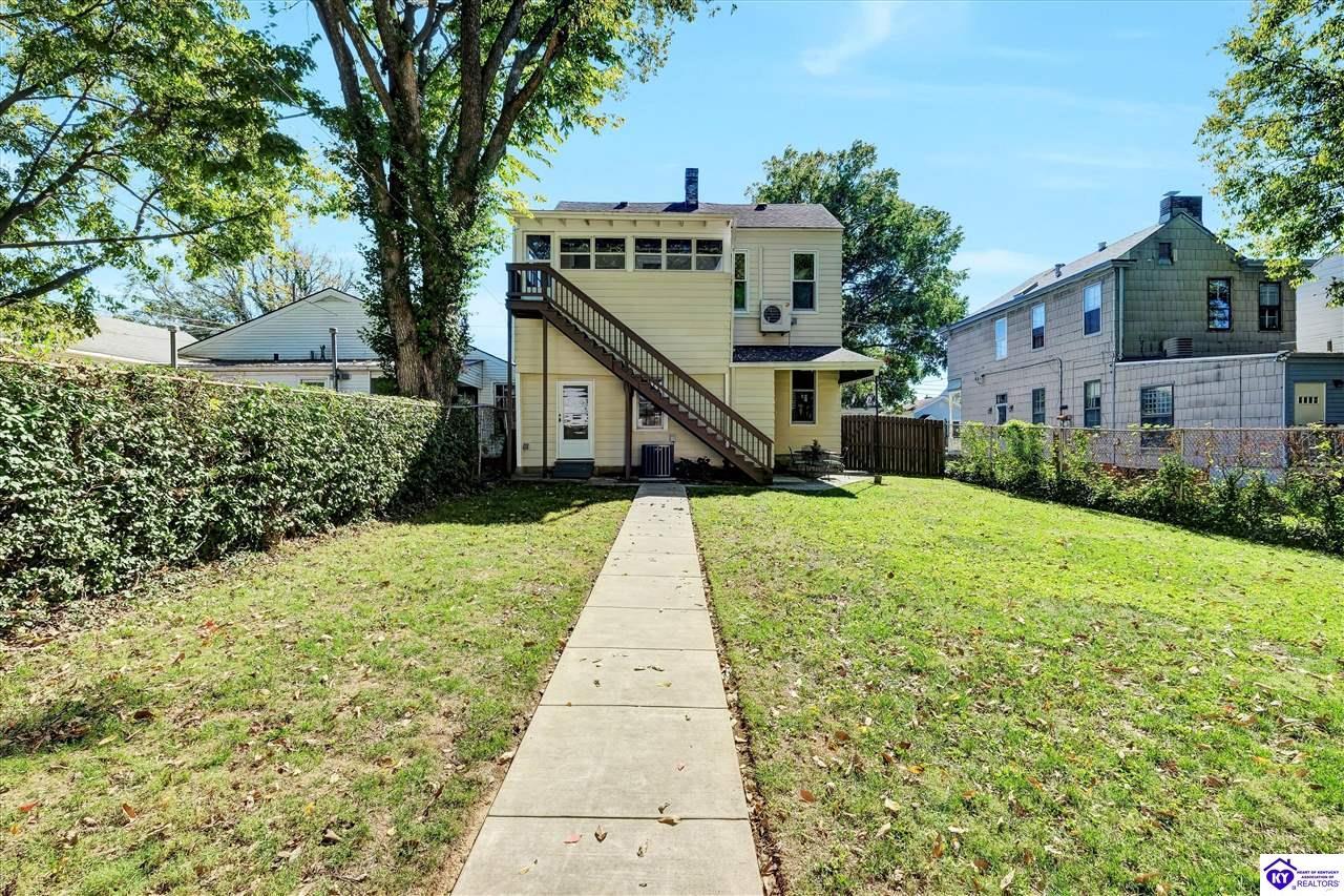 Realtor's notes: A charming Folk Victorian in the Heart of the Highlands. Welcome to this timeless two-story, built around the 1930's and nestled in the highly desirable Original Highlands neighborhood—just minutes from Tyler Park, Bardstown Road, NuLu and the best of downtown Louisville. With approximately 2,448 finished square feet, this 4-bedroom, with the primary on the main, 2-bath home beautifully balances historic character with thoughtful updates. Inside, you will find tall ceilings, an inviting open staircase, and large rooms that reflect the craftsmanship of another era. The home's aluminum siding offers low maintenance, while years of careful ownership and attention to detail shine through every space. The covered front porch invites you to sit and relax, while the enclosed back porch off the second level offers a quiet spot to unwind with morning coffee or evening breezes. Out back, a spacious, privacy-fenced yard provides plenty of room for entertaining, play, or gardening. A recently added two-car detached garage, accessible from the alley, adds both convenience and value, complete with an unfinished bonus room above that's rough-plumbed and ready for your creative touch. Lovingly maintained by the same owner since 1989, this home is filled with warmth, history, and the kind of charm that defines the Original Highlands. Come see why this property isn't just a place to live, it's a place to belong.