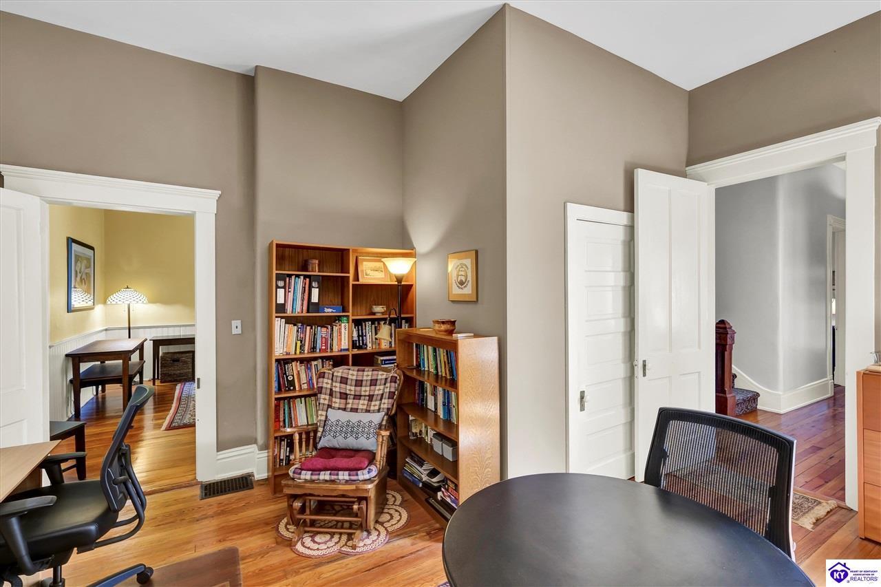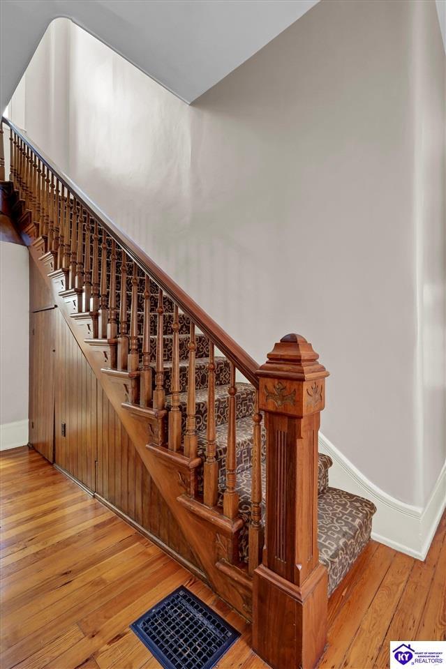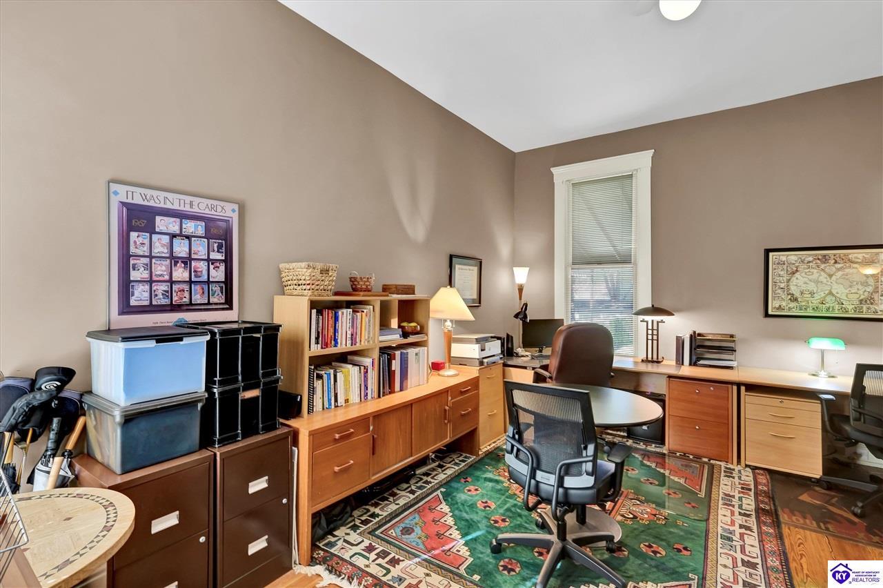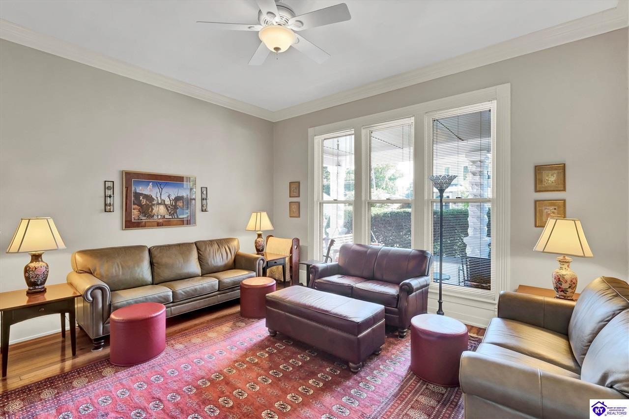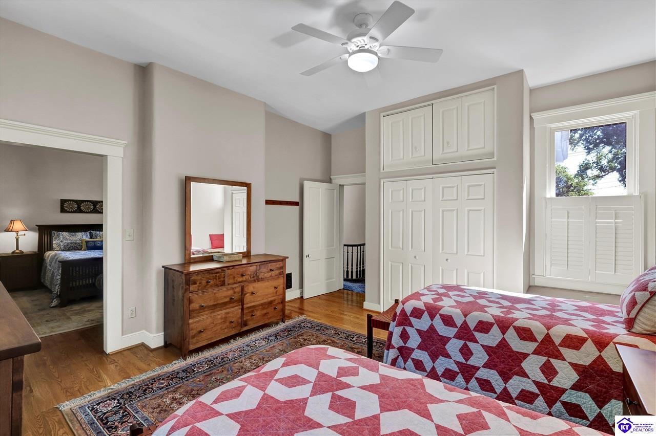 Realtor's notes: A charming Folk Victorian in the Heart of the Highlands. Welcome to this timeless two-story, built around the 1930's and nestled in the highly desirable Original Highlands neighborhood—just minutes from Tyler Park, Bardstown Road, NuLu and the best of downtown Louisville. With approximately 2,448 finished square feet, this 4-bedroom, with the primary on the main, 2-bath home beautifully balances historic character with thoughtful updates. Inside, you will find tall ceilings, an inviting open staircase, and large rooms that reflect the craftsmanship of another era. The home's aluminum siding offers low maintenance, while years of careful ownership and attention to detail shine through every space. The covered front porch invites you to sit and relax, while the enclosed back porch off the second level offers a quiet spot to unwind with morning coffee or evening breezes. Out back, a spacious, privacy-fenced yard provides plenty of room for entertaining, play, or gardening. A recently added two-car detached garage, accessible from the alley, adds both convenience and value, complete with an unfinished bonus room above that's rough-plumbed and ready for your creative touch. Lovingly maintained by the same owner since 1989, this home is filled with warmth, history, and the kind of charm that defines the Original Highlands. Come see why this property isn't just a place to live, it's a place to belong.
