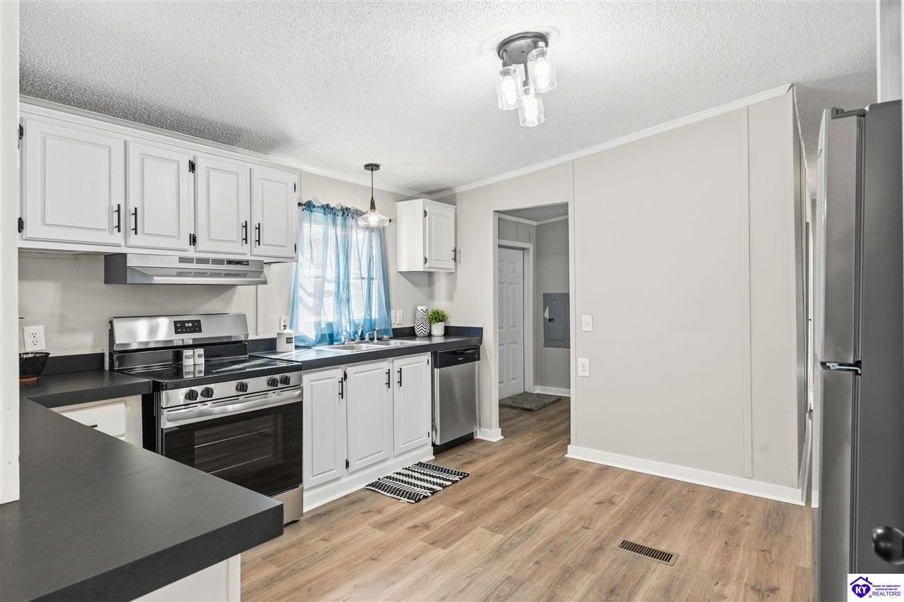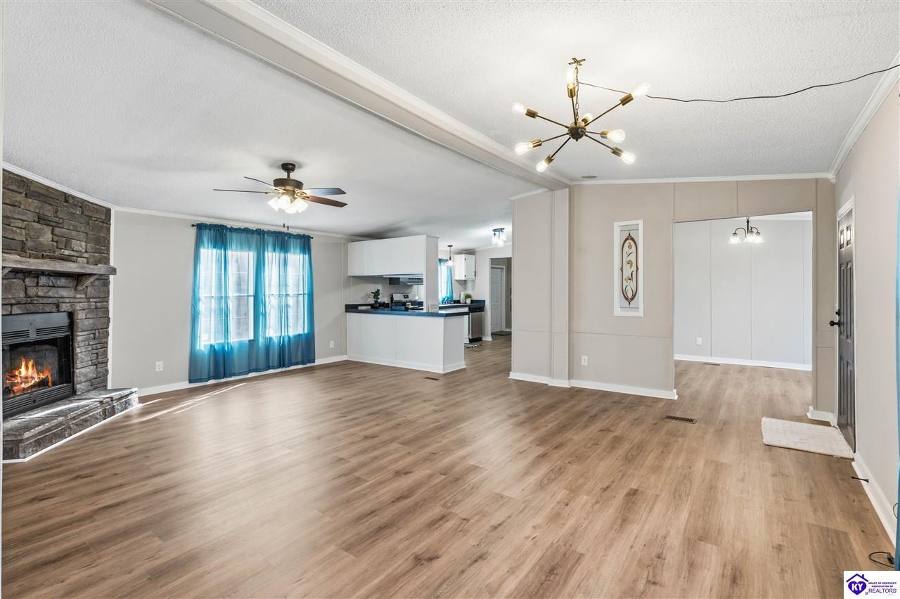 Realtor's notes: Freshly renovated 4 bed 2 bath home on over 4 acres with a shop; privately tucked away off the road as an extra bonus! Did I mention nearly 2000 sq ft of living space? So much new here including new HVAC, new roof, new stainless steel appliance package, new flooring, new countertops, updated lighting and so much more... This is for the family looking for room to live, play and enjoy some privacy while staying in a convenient location with easy access to Hwy 313, Ft Knox, Elizabethtown, Brandenburg and Louisville. You'll know this is the one the minute you start to drive up that picturesque tree lined driveway! Dont wait... Buyers are starting to move!