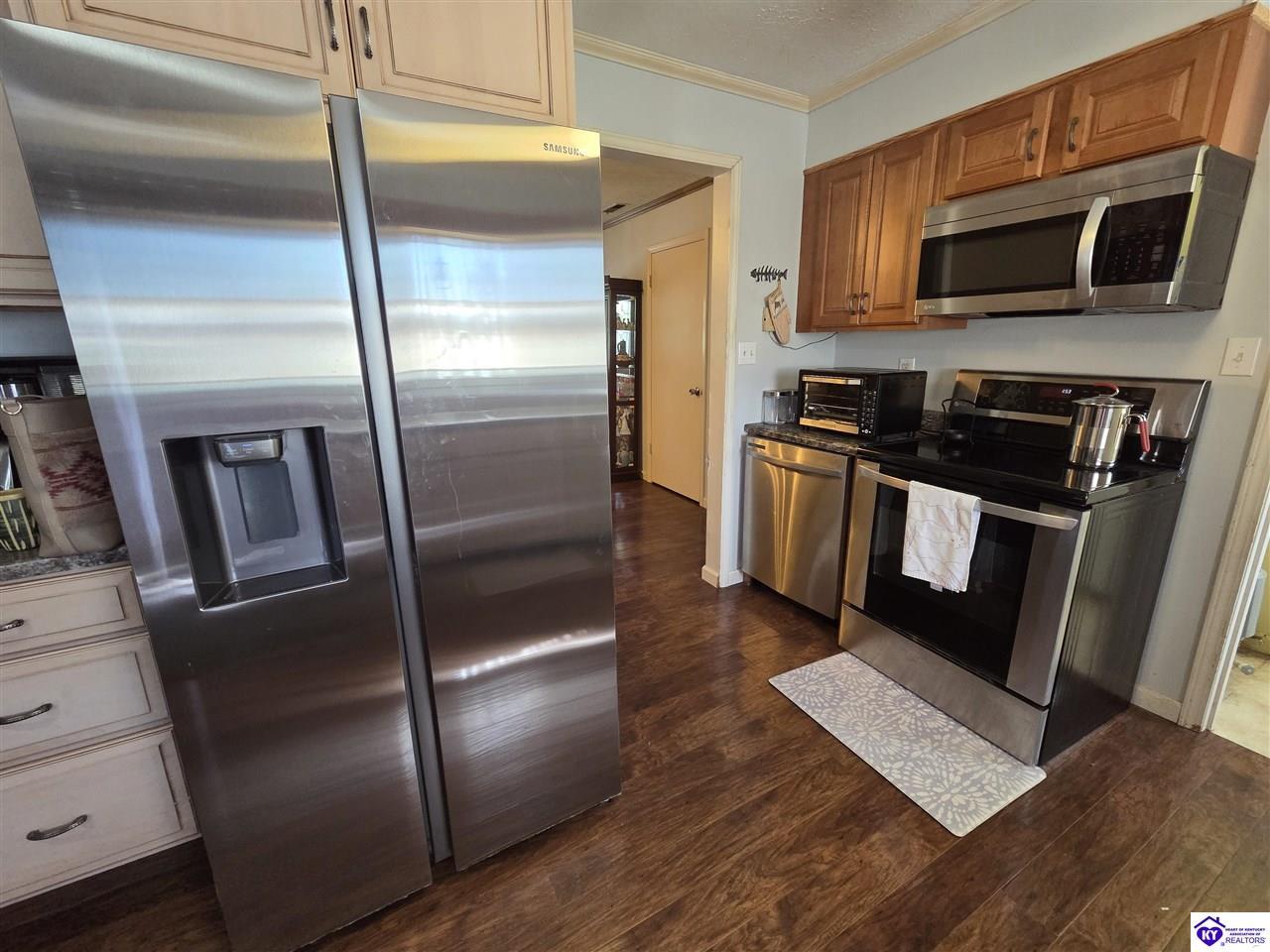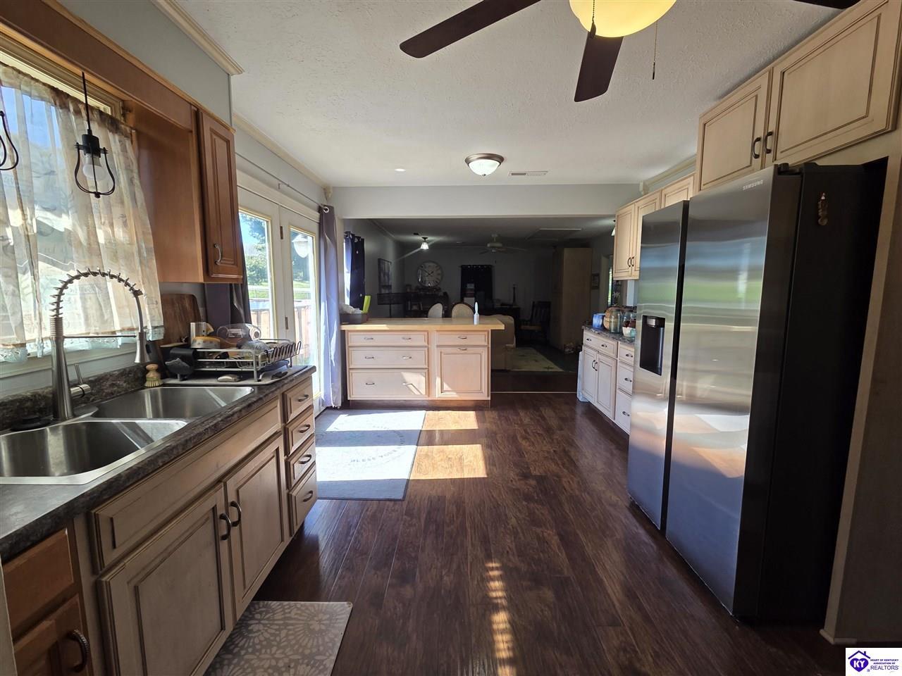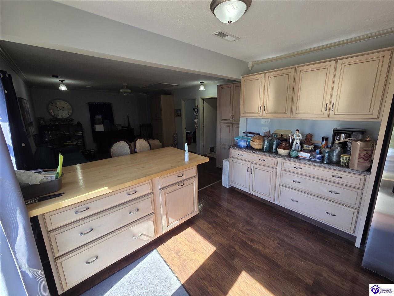 Realtor's notes: A ranch style home built in 1976 with 1,701 sq ft (per PVA), covered front porch, living room (used as formal dining room), eat-in kitchen with stainless appliances and butcher block breakfast bar, laundry room off of kitchen, den/family room with storage room/pantry and additional small room for office or other, 3 bedrooms (including master BR), 2 bathrooms (including private master bath), deck on rear, electric heat pump, central air, and vinyl plank flooring. The home is situated on a 0.42 acre corner lot with a fenced backyard and shed, very conveniently located just off of N. Miles St and minutes from any number of conveniences Etown has to offer. Auction Terms & Conditions • Bidding open: Thursday, November 13th at 8:00 AM • Bidding soft close: Thursday, November 20th at 7:00 PM • Auction website: www.HodgesAuction.com • A 10% buyer’s premium will be added to the winning bid to determine the final sale price. • A $10,000 deposit is due from the winning bidder with the balance due within 30 days. The deposit will be placed in the Hodges Auction escrow account and applied to the purchase at closing. Buyer is responsible for their own title opinion and arrangement of closing. If title is uninsurable, the seller has 45 days to correct any defect(s), or the escrow deposit may be returned to buyer. • Property taxes will be prorated to the date of deed. • Possession will be given with delivery of the deed. • Property is available for inspection by appointment prior to the auction. • In the event of a tie max bid, precedence will be given to the bid placed first.