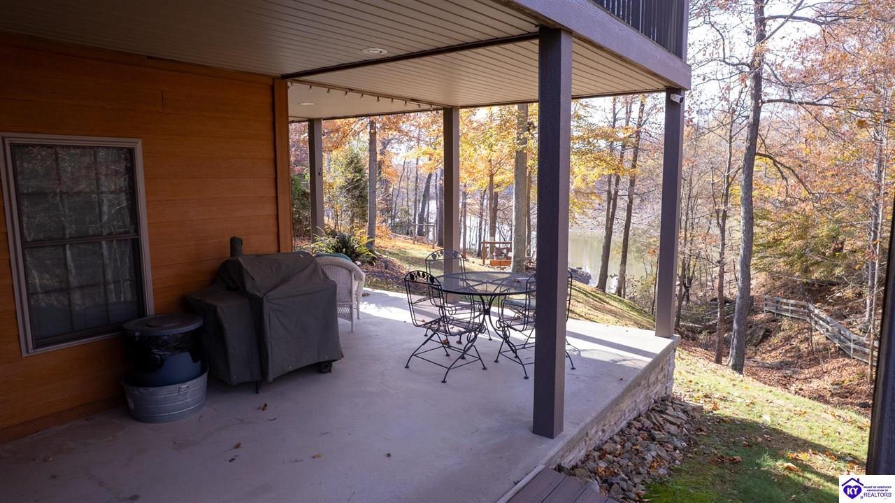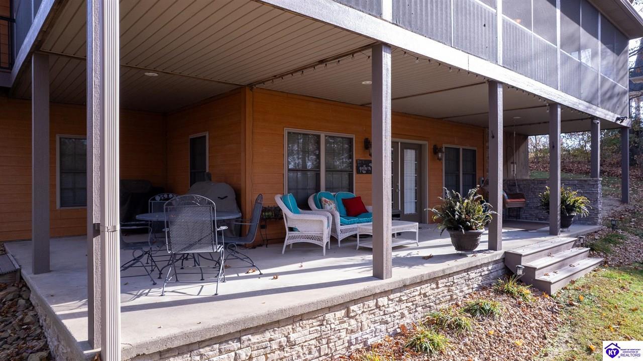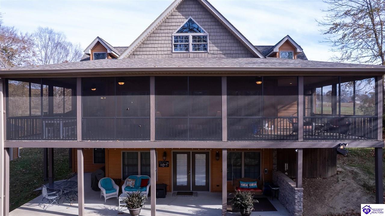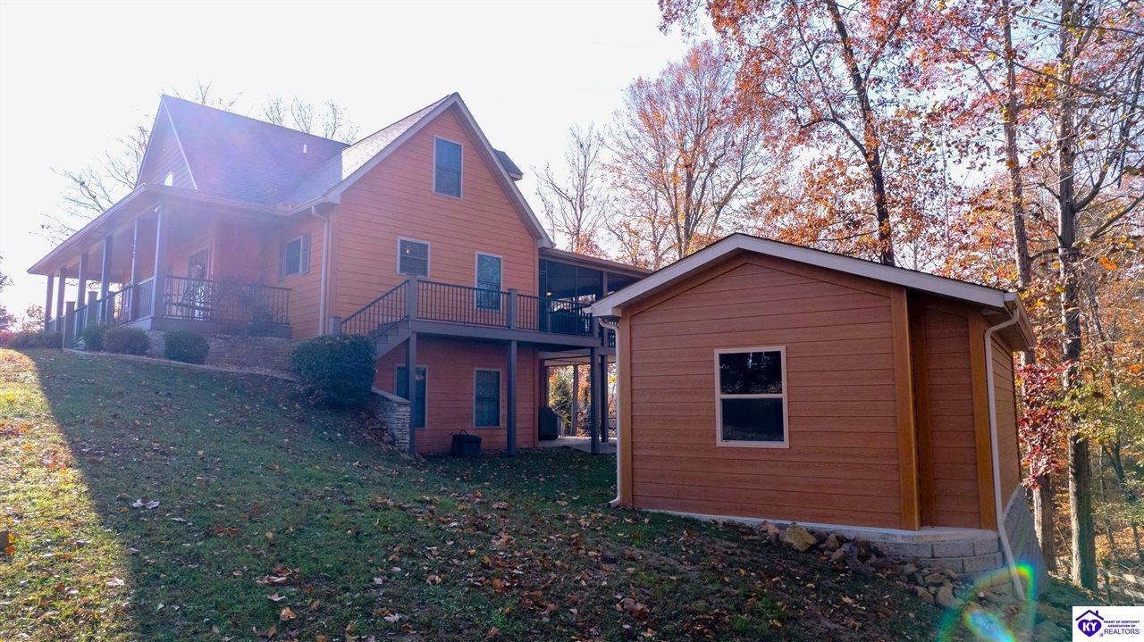 Realtor's notes: Discover the perfect blend of charm, comfort, and convenience with this Craftsman-style lakefront home on Lot 9 of Patriots Landing. Nestled along the scenic shores of Rough River Lake, this property offers everything you've been searching for: breathtaking views, direct lake access, and even the option for a turn-key purchase. Recently updated with newer roof, decking and HVAC system, making this home nearly maintenance-free, giving more time to enjoy lake life. Located just minutes from the State Resort Park and Marina you'll have easy access to all the fun the lake has to offer. On this channel, enjoy big water year-round, perfect for boating, fishing, and relaxing. This is more than a home—it's a lifestyle. Don't miss your chance to own a truly special piece of Rough River Lake! Enter the front door of the home and you see the soaring great room ceiling with wood beams and the LAKE! An open-concept floor plan means the chef can be part of the fun and the conversation! Meals on the screen porch are a breeze! With ample room on the main level, 2 cozy dormer bedrooms and a full guest bath on the upper level, and a BIG walkout basement, this could be a perfect permanent residence OR a grand STAYcation retreat from the stresses of everyday life for your family and guests! With 4 bedrooms and a 5th sleeping area, you don't have to leave anyone out! BIG screen porch off the great room and another covered patio off the lower level mean you can enjoy the outside rain or shine. And since outside is where lake lovers LOVE to be, a big firepit area was created to get you OH SO CLOSE to the lake! Plenty of storage inside and a thoughtfully constructed shed with over-head door that compliments the home makes for a great utility garage. Patriots Landing itself is a sought-after gated community featuring a private 5+ acre lake for fishing and recreation, along with a welcoming neighborhood atmosphere. Homes like this are hard to find and easy to enjoy! Give us a call to make THIS one yours!