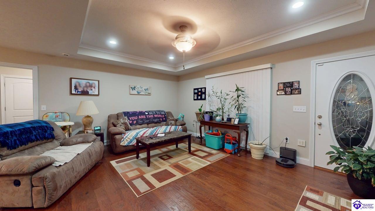 Realtor's notes: Located in beautiful Brandenburg, Kentucky, this stunning custom-built 2015 home offers the perfect blend of modern style, privacy, and functional living. With 2,908 sq ft of living space set on 3.81 acres, this property provides room to spread out, entertain, and enjoy the peaceful surroundings. Inside, the home features 4 spacious bedrooms and 3 full bathrooms, along with a partially unfinished walkout basement- an ideal blank canvas for future expansion, a home gym, theater, or additional living space. The main living areas showcase a clean, modern feel throughout. An attached two-car garage adds everyday convenience, while the expansive backyard is equipped with a storage shed, an oversized playset, and plenty of open space. This property has EVERYTHING to offer! Come see it TODAY!
