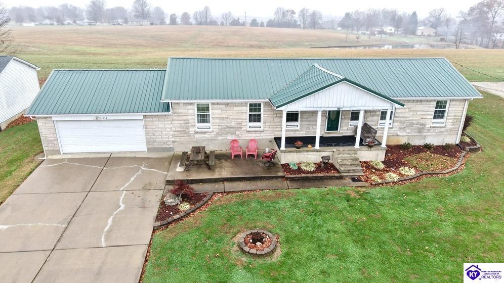 Realtor's notes: Nice, well maintained Bedford Stone house with attached pull through garage and full size unfinished basement overlooking Allens Pay Lake! So much to love about this home starting with this highly sought after location. The smaller lot backs up to open fields leaving you the elbow space you appreciate without all the maintenance effort required. Concrete driveway, concrete walkways and covered concrete porch complete with porch swing give you the perfect spot to enjoy looking over the stocked lake. The pull through garage extends the concrete driveway for additional parking in the rear creating several functionality options and not to mention air flow for a cool breeze! Inside; the spacious oversized family room featuring the gas fireplace will be the gathering spot for friends and family. The kitchen features an abundance of cabinetry, countertop seating and a dining area with access to the inviting back deck and graveled firepit! Full size unfinished basement leaves room to grow!
