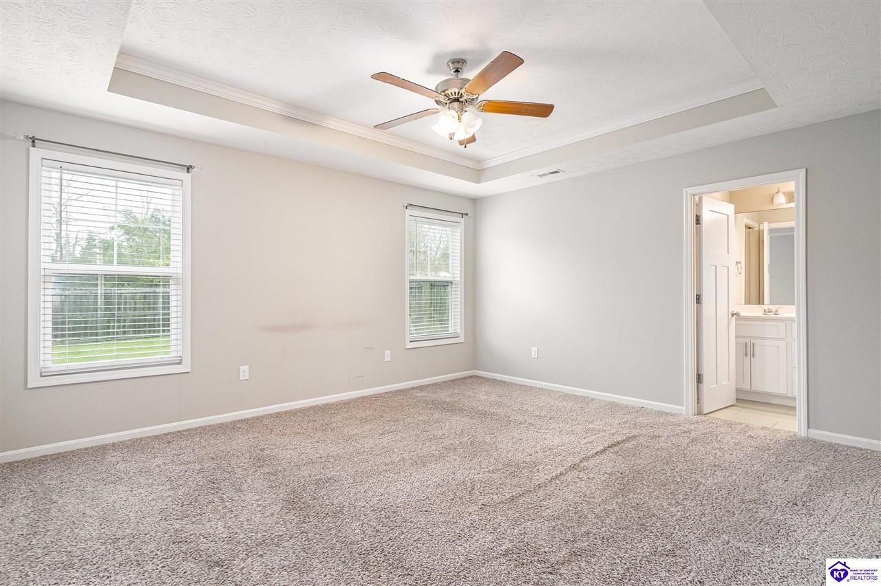 Realtor's notes: Check out this very well kept ranch home. This split floor plan offers an open living area that flows into the kitchen and dining space. Easy-care flooring and neutral finishes keep the main areas bright and simple. The main bedroom has a private bath and a walk-in closet. Out back is a full wood privacy fence and a large yard that is great for pets, play or outdoor gatherings. Convenient Elizabethtown location with an easy drive to shopping, dining and Fort Knox.