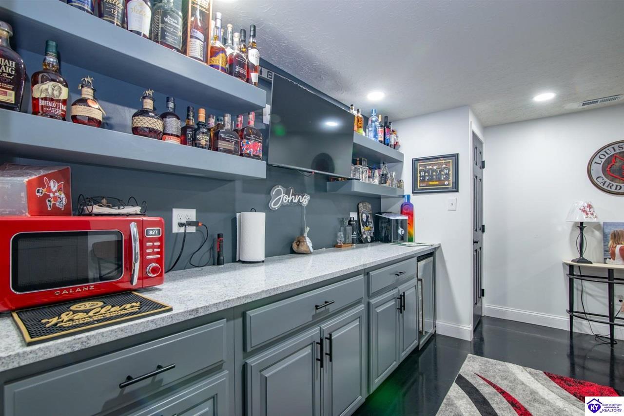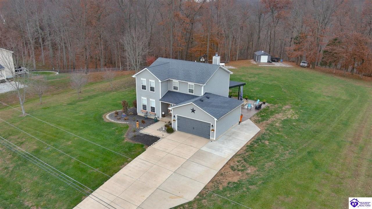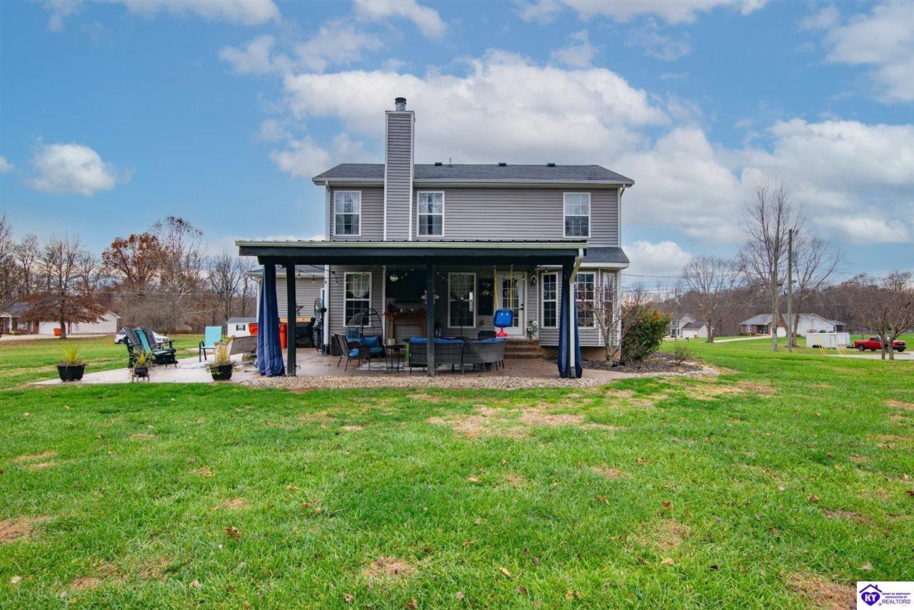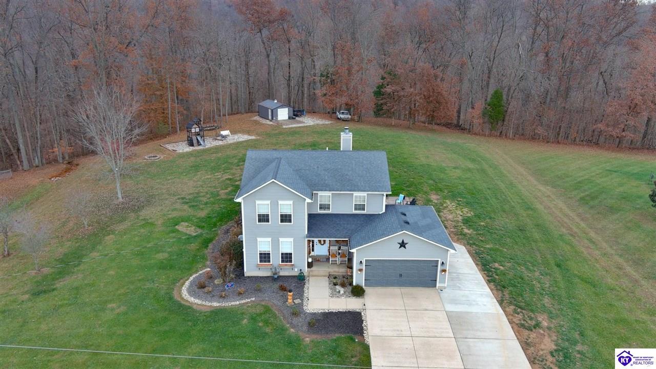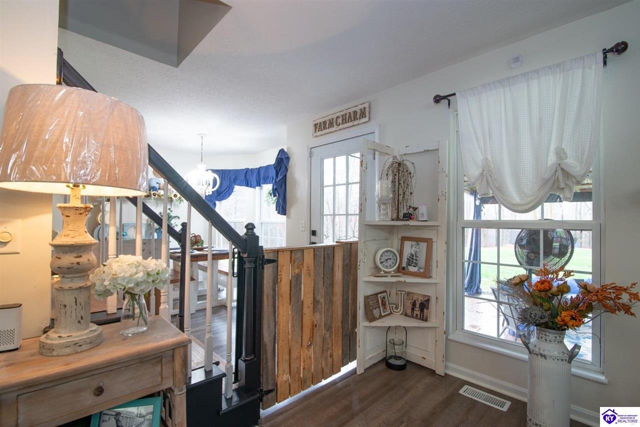 Realtor's notes: Welcome to your dream home! This beautifully updated home offers the perfect blend of modern elegance and serene living, all set on a partially wooded 2.4 acres. Step inside to discover all the personal touches this home has to offer. A few of its many features include granite countertops, tiled backsplash, custom built-ins in the formal dining or office and a lovely wood burning fireplace in the living room. Upstairs, you'll find meticulously designed bedrooms, including a gorgeous primary suite complete with an ensuite bath with two vanities and a beautifully tiled walk-in shower. Adding significant convenience, is the laundry room located upstairs saving time and effort. The finished basement provides additional versatile space, perfect for a home theater or recreation and offers a beautiful kitchenette area with built-ins, wine fridge, and an area for your TV. Outside, you will appreciate the expansive driveway, the large covered patio ready for all your outdoor gatherings, and of course enjoy the tranquility and privacy of the beautiful landscape provided by the partially wooded lot. With its modern updates, ample space, and picturesque surroundings, this WELL MAINTAINED home is a must-see!! All of this, just minutes to I-65! Don't miss the opportunity to make it yours!