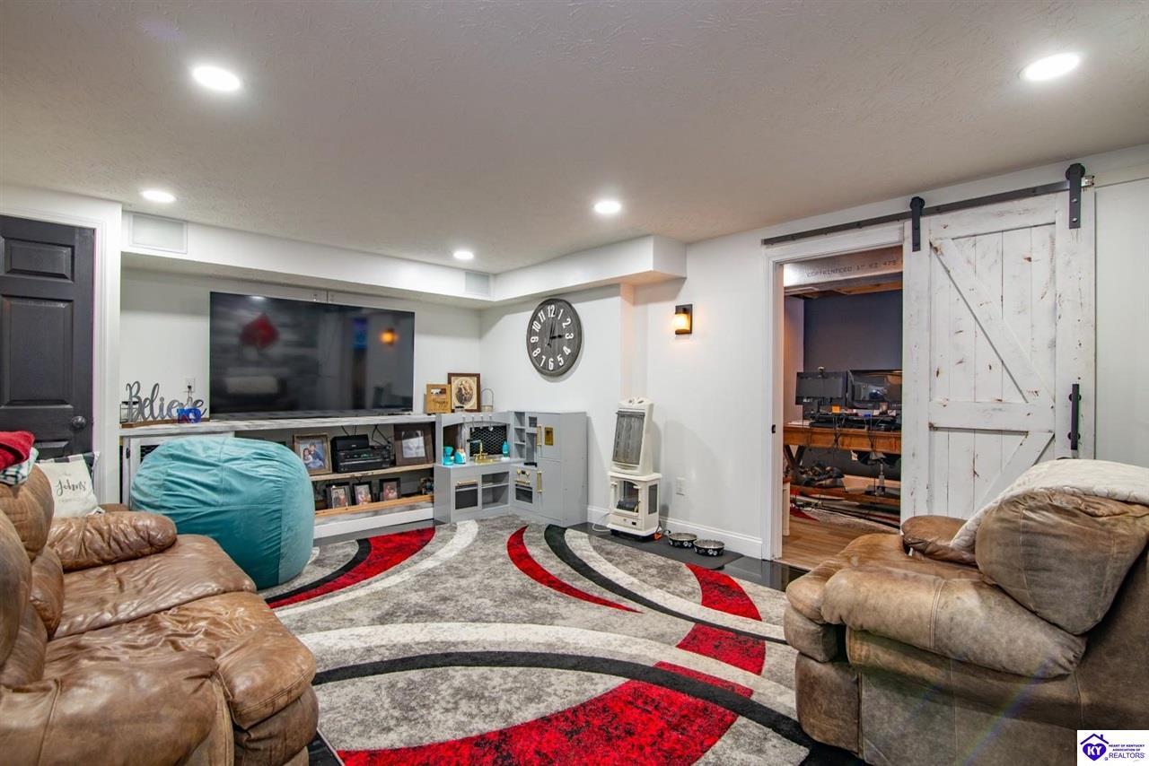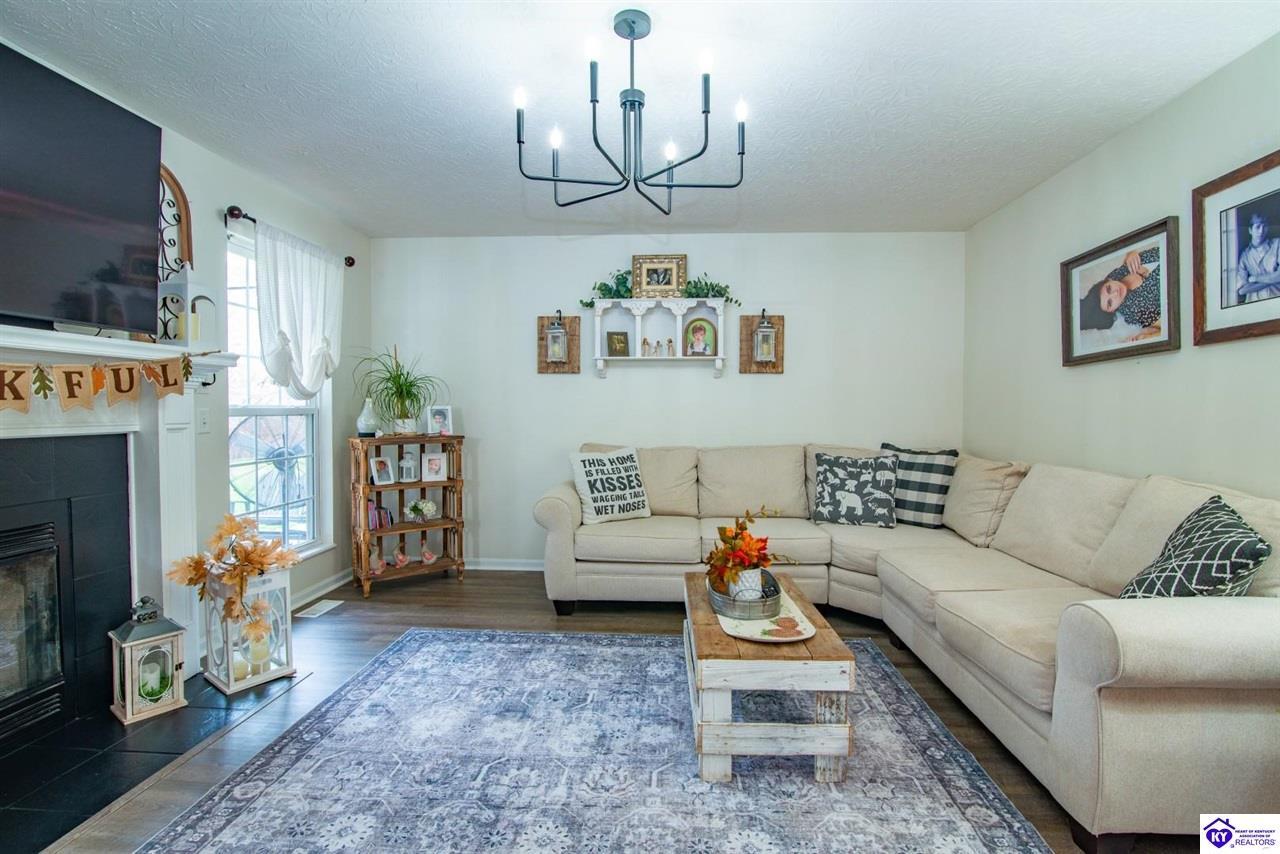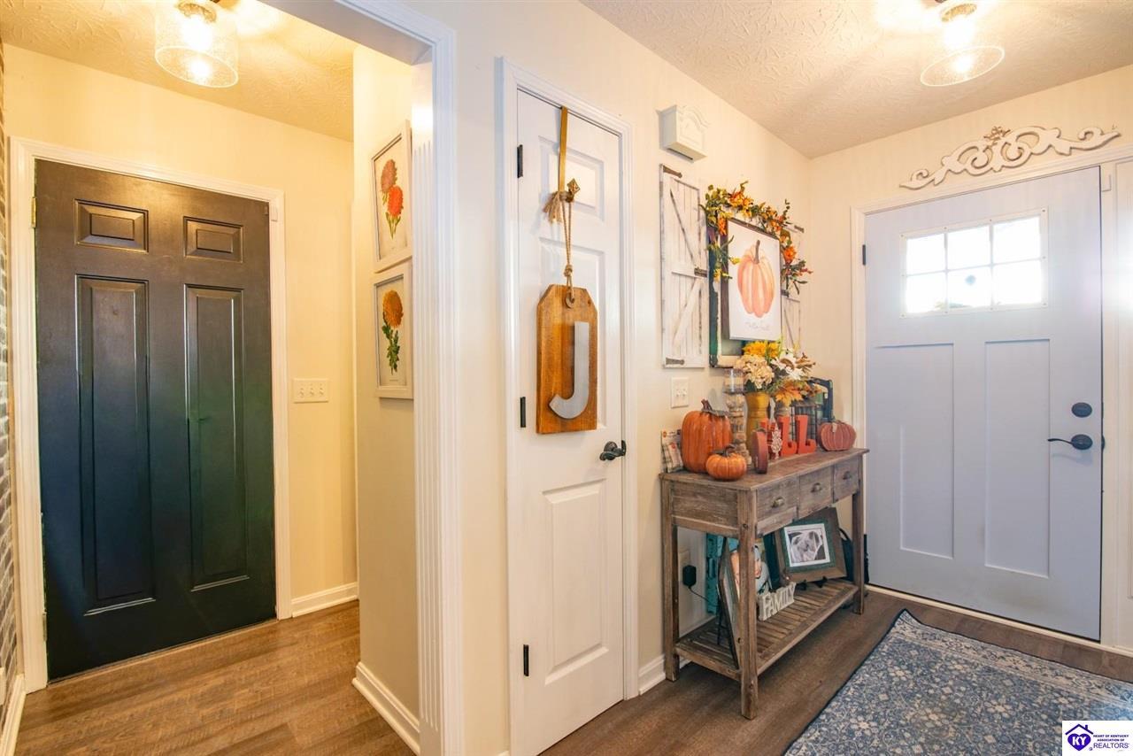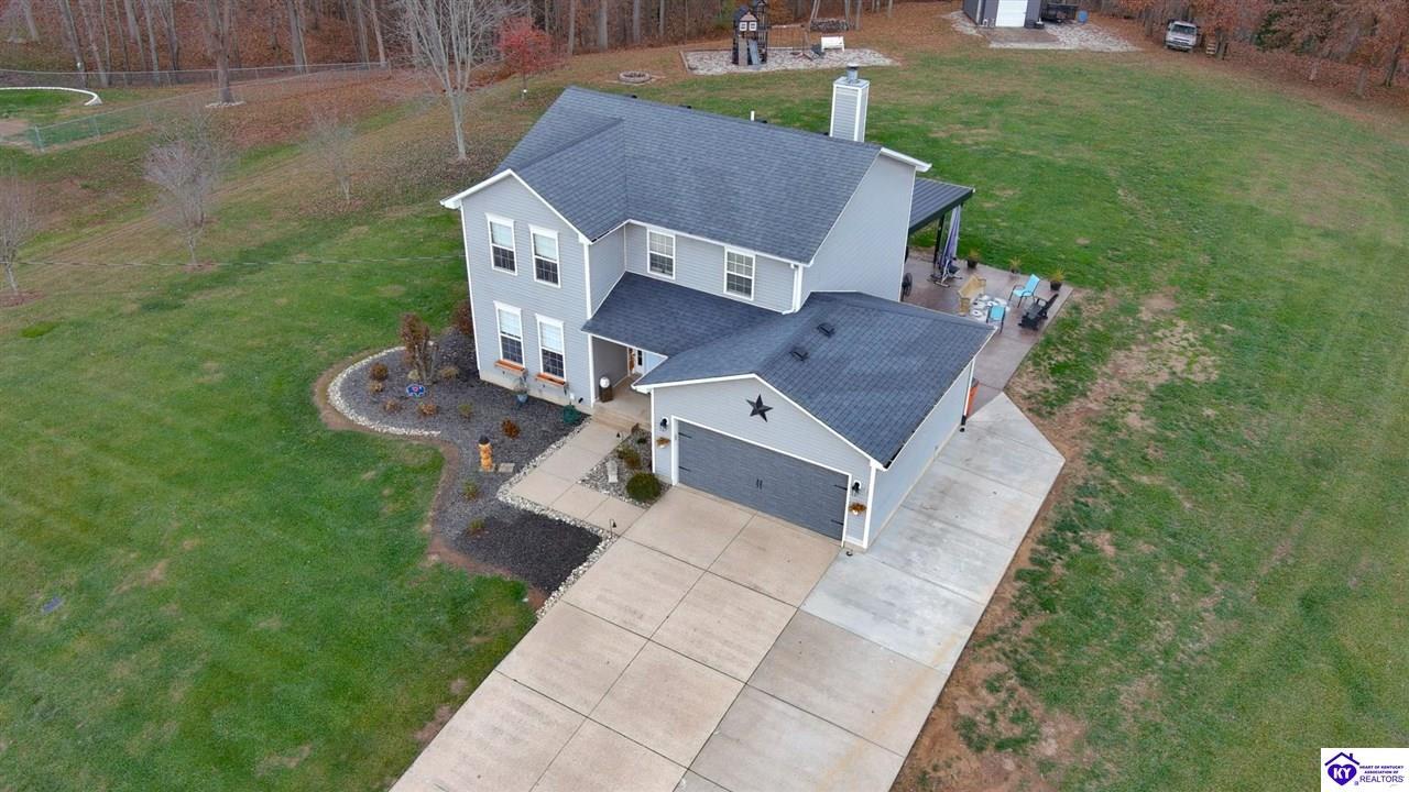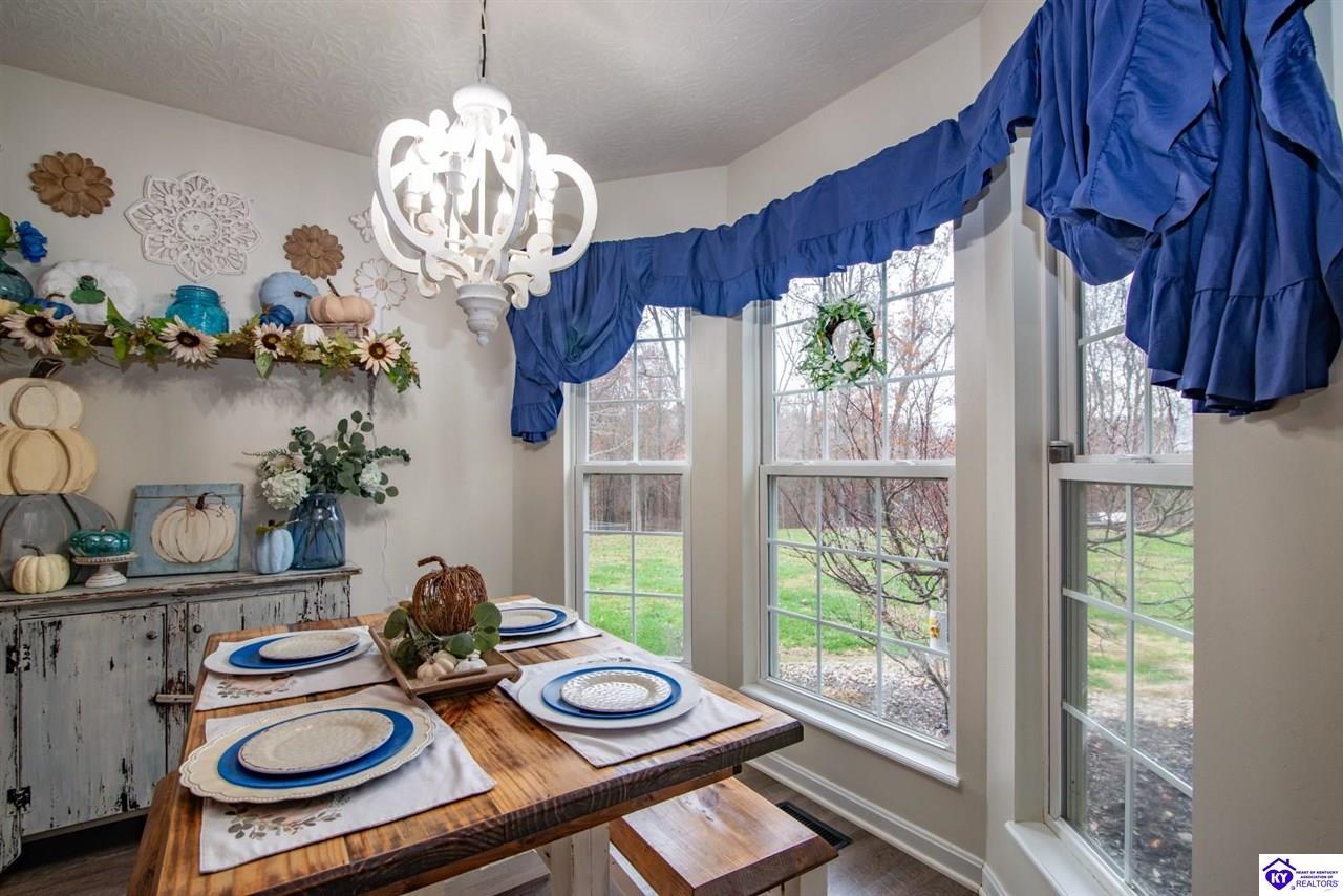 Realtor's notes: Welcome to your dream home! This beautifully updated home offers the perfect blend of modern elegance and serene living, all set on a partially wooded 2.4 acres. Step inside to discover all the personal touches this home has to offer. A few of its many features include granite countertops, tiled backsplash, custom built-ins in the formal dining or office and a lovely wood burning fireplace in the living room. Upstairs, you'll find meticulously designed bedrooms, including a gorgeous primary suite complete with an ensuite bath with two vanities and a beautifully tiled walk-in shower. Adding significant convenience, is the laundry room located upstairs saving time and effort. The finished basement provides additional versatile space, perfect for a home theater or recreation and offers a beautiful kitchenette area with built-ins, wine fridge, and an area for your TV. Outside, you will appreciate the expansive driveway, the large covered patio ready for all your outdoor gatherings, and of course enjoy the tranquility and privacy of the beautiful landscape provided by the partially wooded lot. With its modern updates, ample space, and picturesque surroundings, this WELL MAINTAINED home is a must-see!! All of this, just minutes to I-65! Don't miss the opportunity to make it yours!