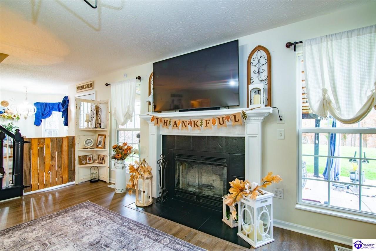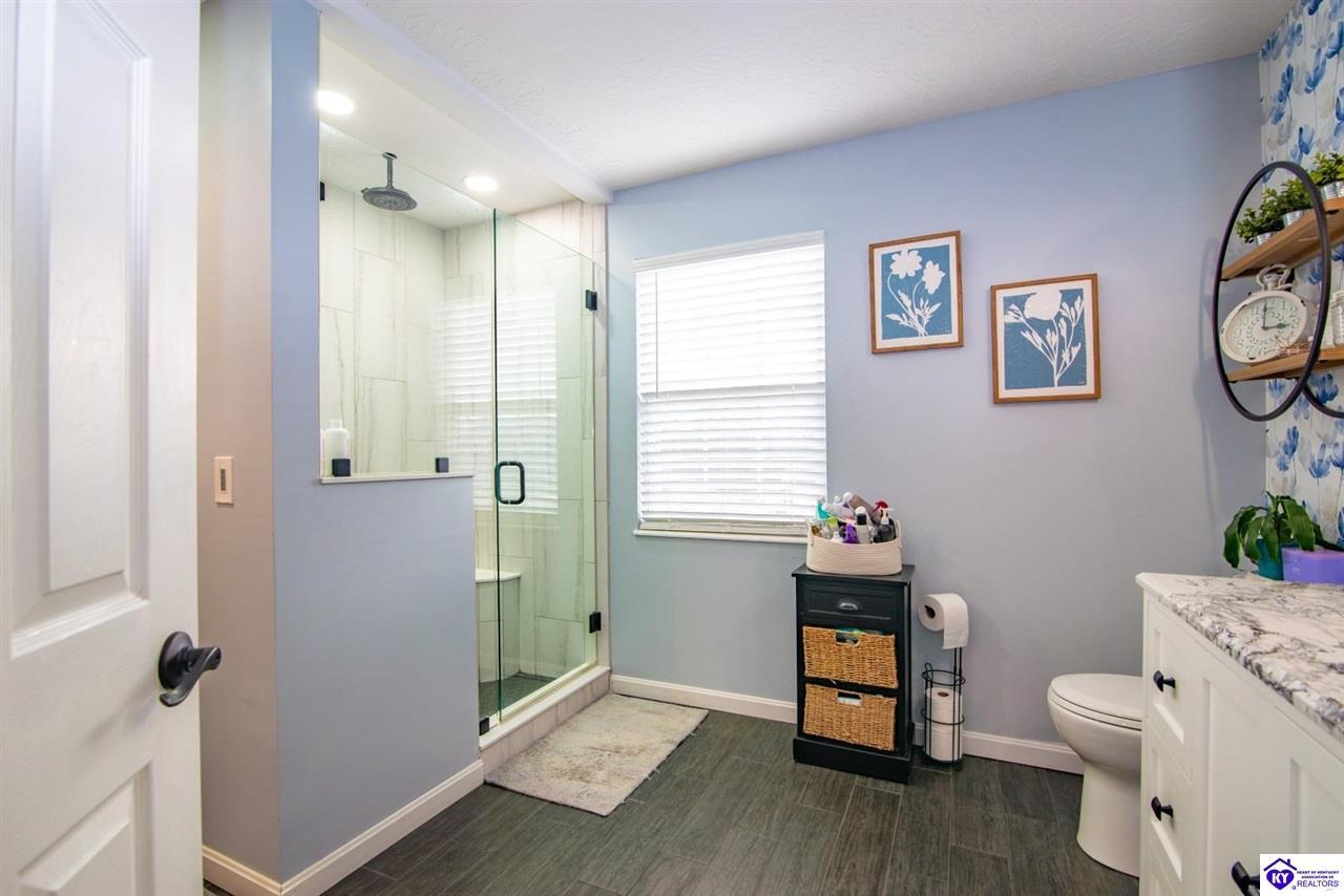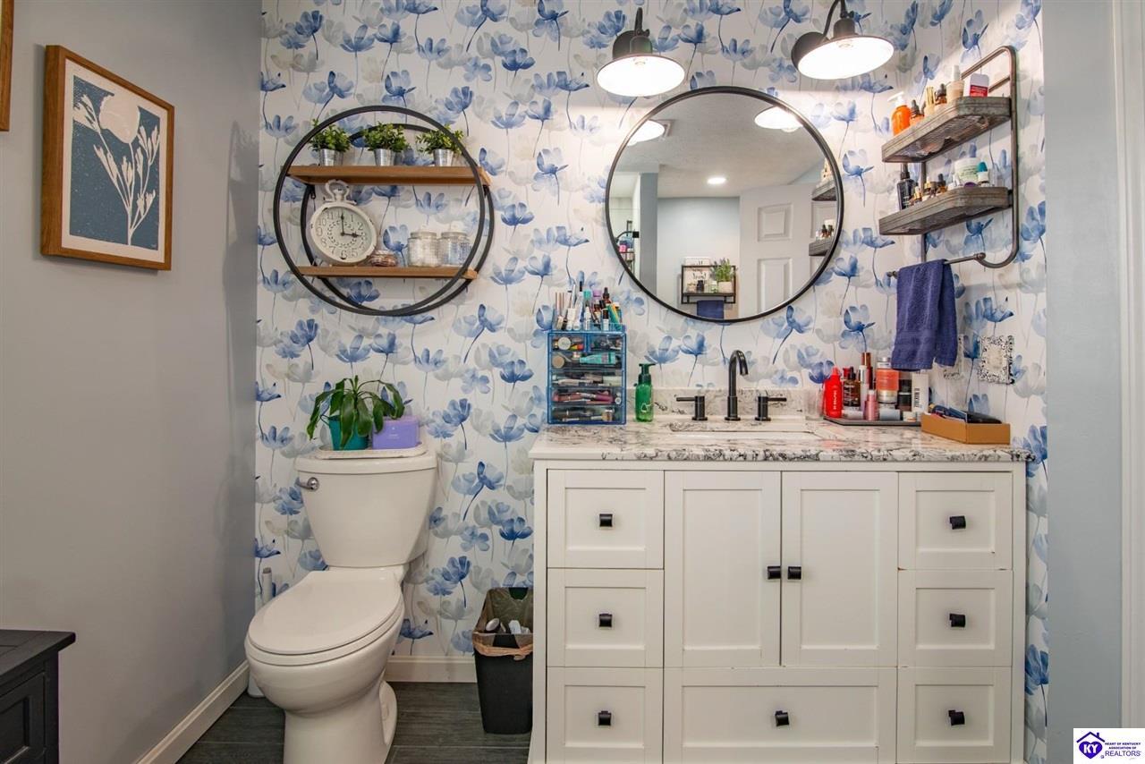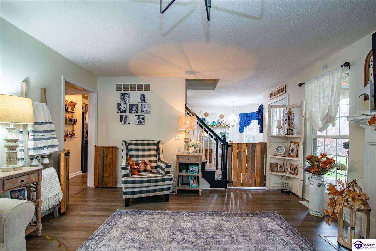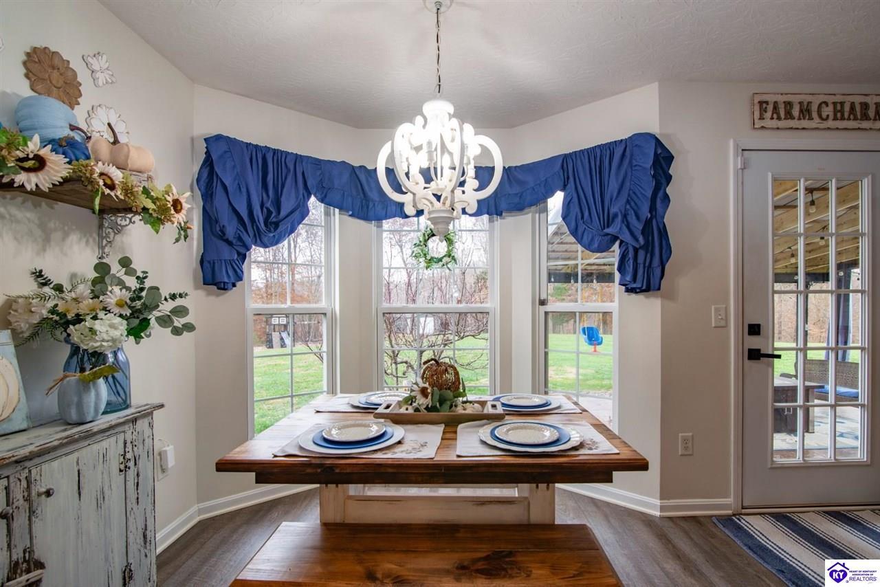Realtor's notes: Welcome to your dream home! This beautifully updated home offers the perfect blend of modern elegance and serene living, all set on a partially wooded 2.4 acres. Step inside to discover all the personal touches this home has to offer. A few of its many features include granite countertops, tiled backsplash, custom built-ins in the formal dining or office and a lovely wood burning fireplace in the living room. Upstairs, you'll find meticulously designed bedrooms, including a gorgeous primary suite complete with an ensuite bath with two vanities and a beautifully tiled walk-in shower. Adding significant convenience, is the laundry room located upstairs saving time and effort. The finished basement provides additional versatile space, perfect for a home theater or recreation and offers a beautiful kitchenette area with built-ins, wine fridge, and an area for your TV. Outside, you will appreciate the expansive driveway, the large covered patio ready for all your outdoor gatherings, and of course enjoy the tranquility and privacy of the beautiful landscape provided by the partially wooded lot. With its modern updates, ample space, and picturesque surroundings, this WELL MAINTAINED home is a must-see!! All of this, just minutes to I-65! Don't miss the opportunity to make it yours!
