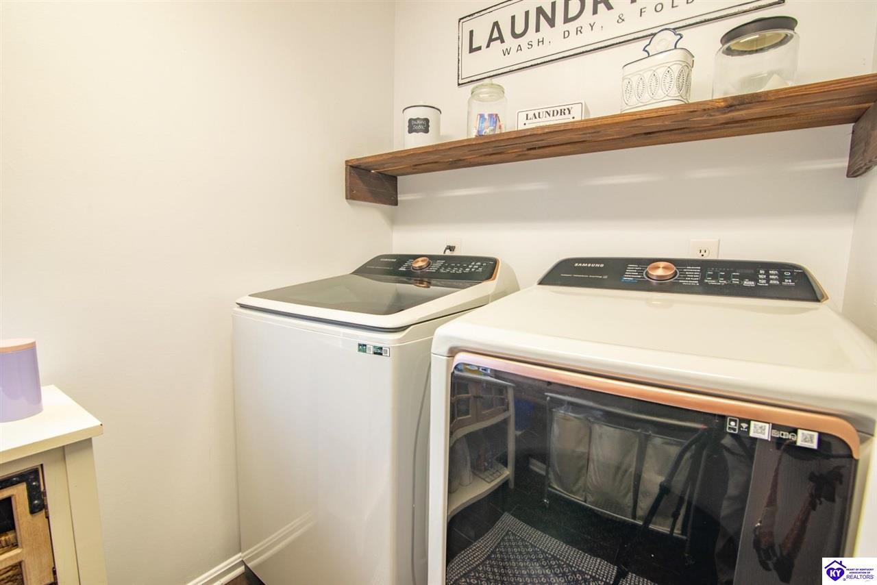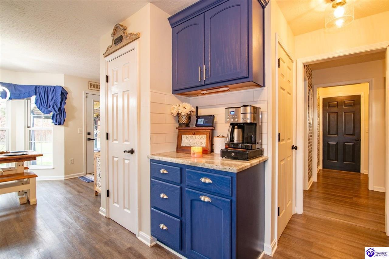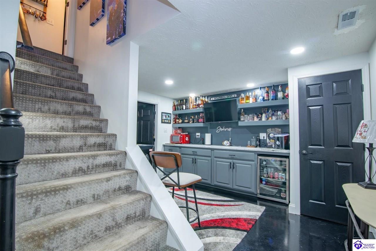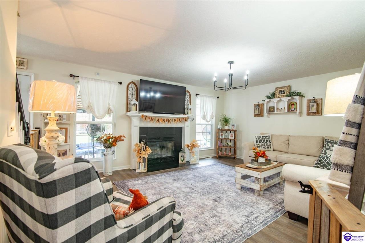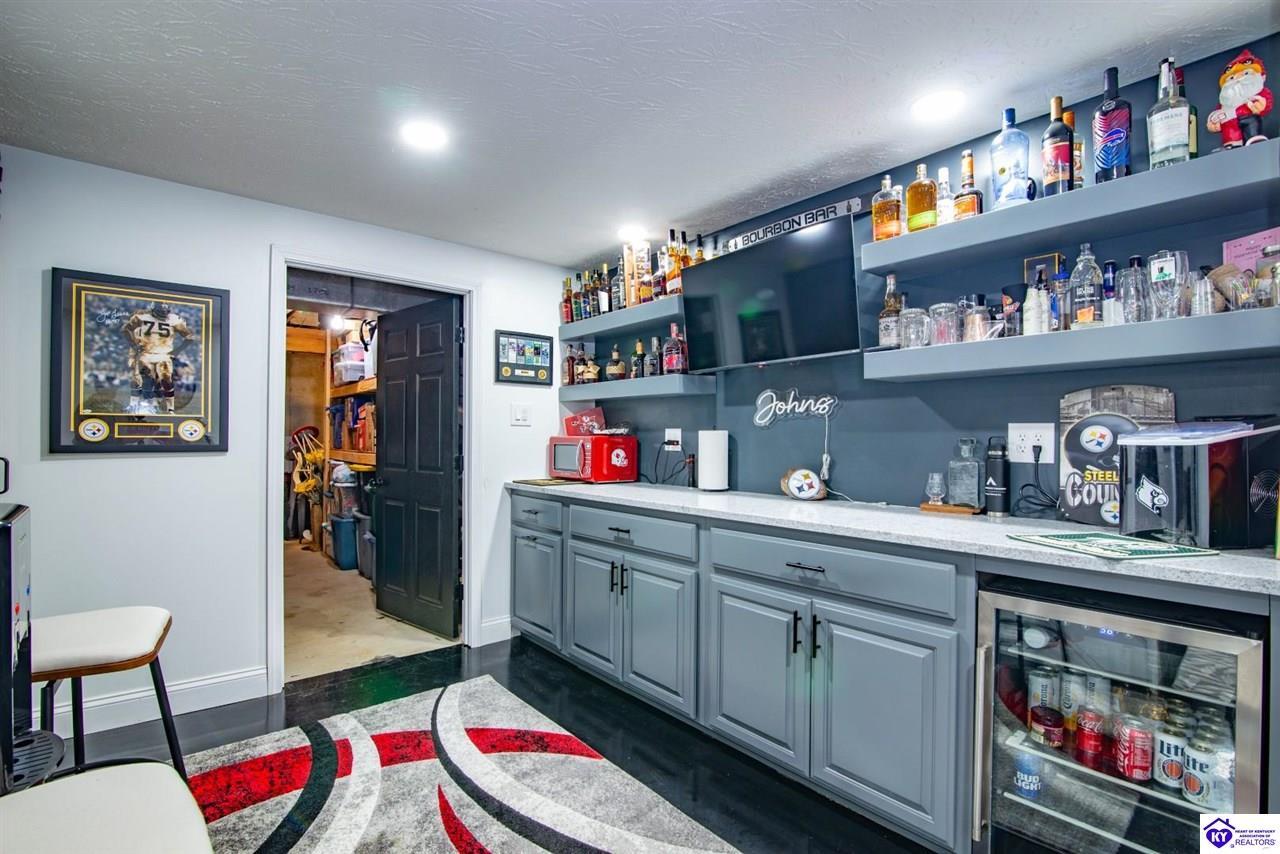 Realtor's notes: Welcome to your dream home! This beautifully updated home offers the perfect blend of modern elegance and serene living, all set on a partially wooded 2.4 acres. Step inside to discover all the personal touches this home has to offer. A few of its many features include granite countertops, tiled backsplash, custom built-ins in the formal dining or office and a lovely wood burning fireplace in the living room. Upstairs, you'll find meticulously designed bedrooms, including a gorgeous primary suite complete with an ensuite bath with two vanities and a beautifully tiled walk-in shower. Adding significant convenience, is the laundry room located upstairs saving time and effort. The finished basement provides additional versatile space, perfect for a home theater or recreation and offers a beautiful kitchenette area with built-ins, wine fridge, and an area for your TV. Outside, you will appreciate the expansive driveway, the large covered patio ready for all your outdoor gatherings, and of course enjoy the tranquility and privacy of the beautiful landscape provided by the partially wooded lot. With its modern updates, ample space, and picturesque surroundings, this WELL MAINTAINED home is a must-see!! All of this, just minutes to I-65! Don't miss the opportunity to make it yours!