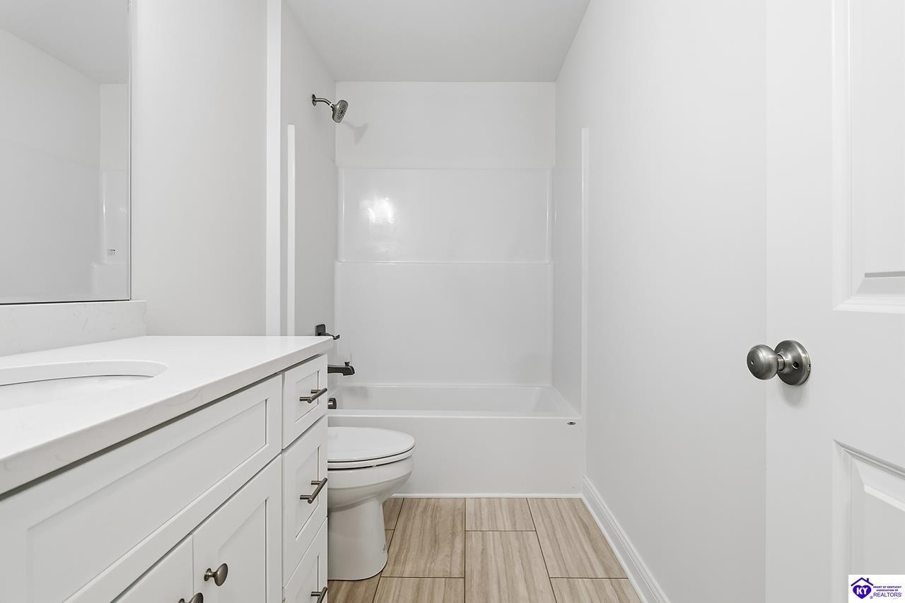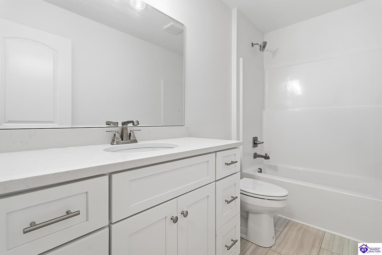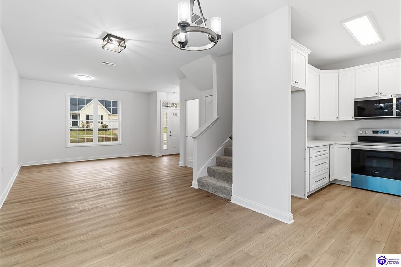 Realtor's notes: Move-in ready new construction! This beautiful 3 bedroom, 2.5 bath home is perfectly situated on a quiet cul-de-sac and features an open floor plan along with a spacious attached garage. As you make your way inside, you'll appreciate how the living area flows effortlessly into the dining space and kitchen, creating an inviting atmosphere filled with natural light. The kitchen showcases sleek white cabinetry paired with matching stainless steel appliances for a clean, modern look. A sliding glass door just off the dining area leads to the back deck - an ideal spot for entertaining, grilling, or simply unwinding outdoors. Upstairs, a versatile flex space awaits, perfect for a home office, play area, or second living space. The primary bedroom features a soaring vaulted ceiling and an en suite bathroom complete with a dual-sink vanity and walk-in shower. A spacious walk-in closet provides ample storage for clothing and accessories. The second-floor laundry room adds everyday convenience. Two additional bedrooms and another full bath complete the upper level. Don't miss your chance to own this brand-new, move-in ready home - schedule your showing today!