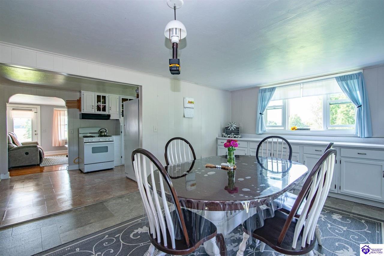 Realtor's notes: Welcome home to this inviting 3-bedroom ranch, perfectly set on 2.85 scenic acres. A welcoming covered front porch invites you to sit back and enjoy the peaceful surroundings. Inside, you'll find a large kitchen and dining room with abundant counter space and storage, ideal for entertaining. Hardwood flooring flows through most of the living areas, adding warmth and character. The property is well-equipped with a spacious insulated workshop/garage that can accommodate multiple vehicles, a barn suited for livestock, and a versatile storage shed that also doubles as a playhouse. A garden area provides the perfect space to grow your own vegetables or flowers, completing this picture of comfortable country living.