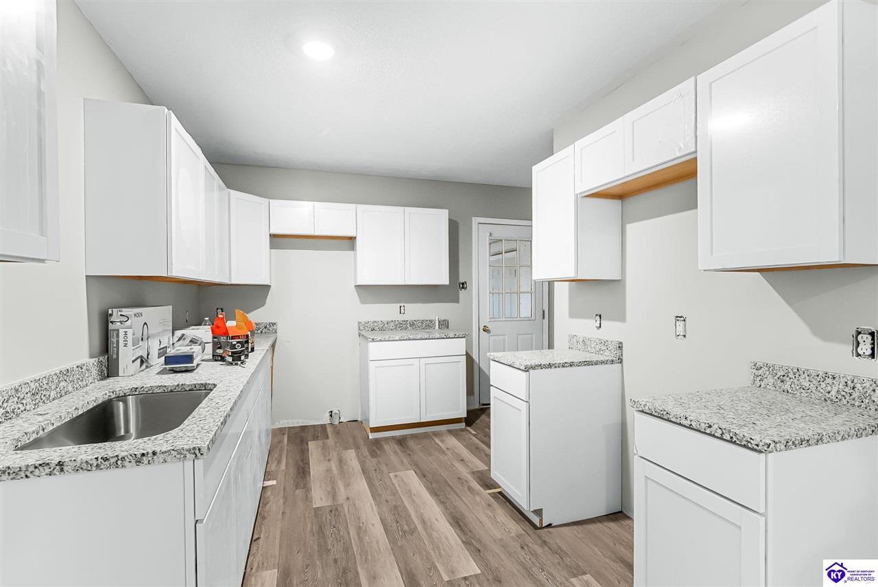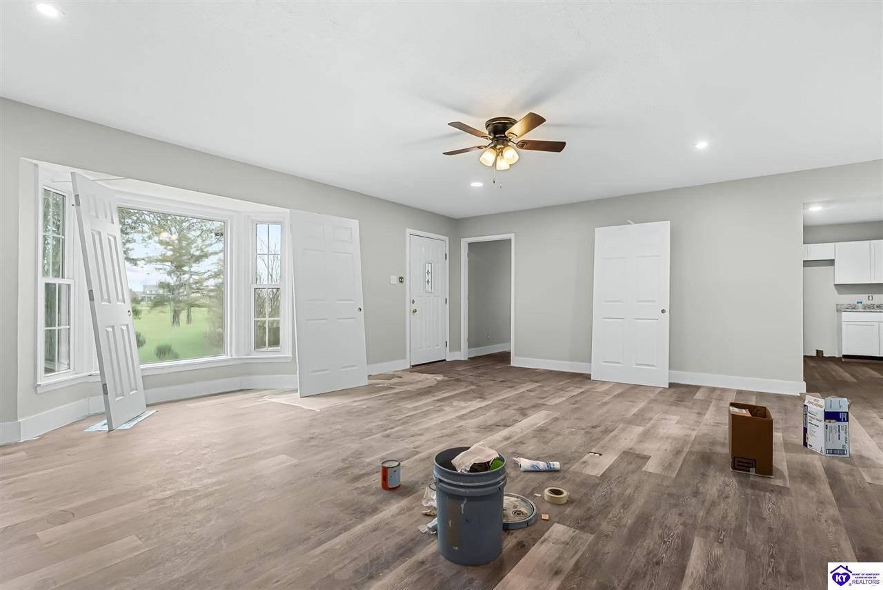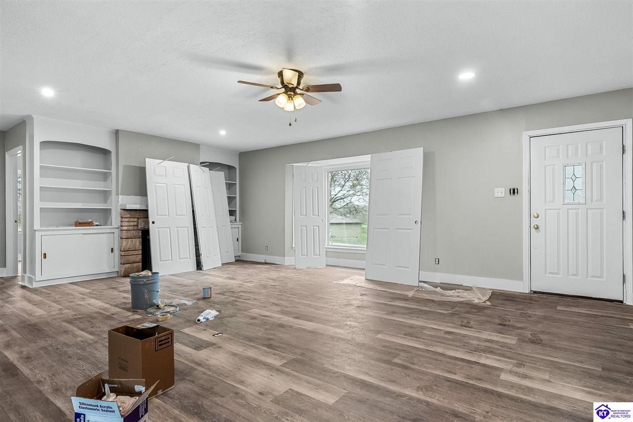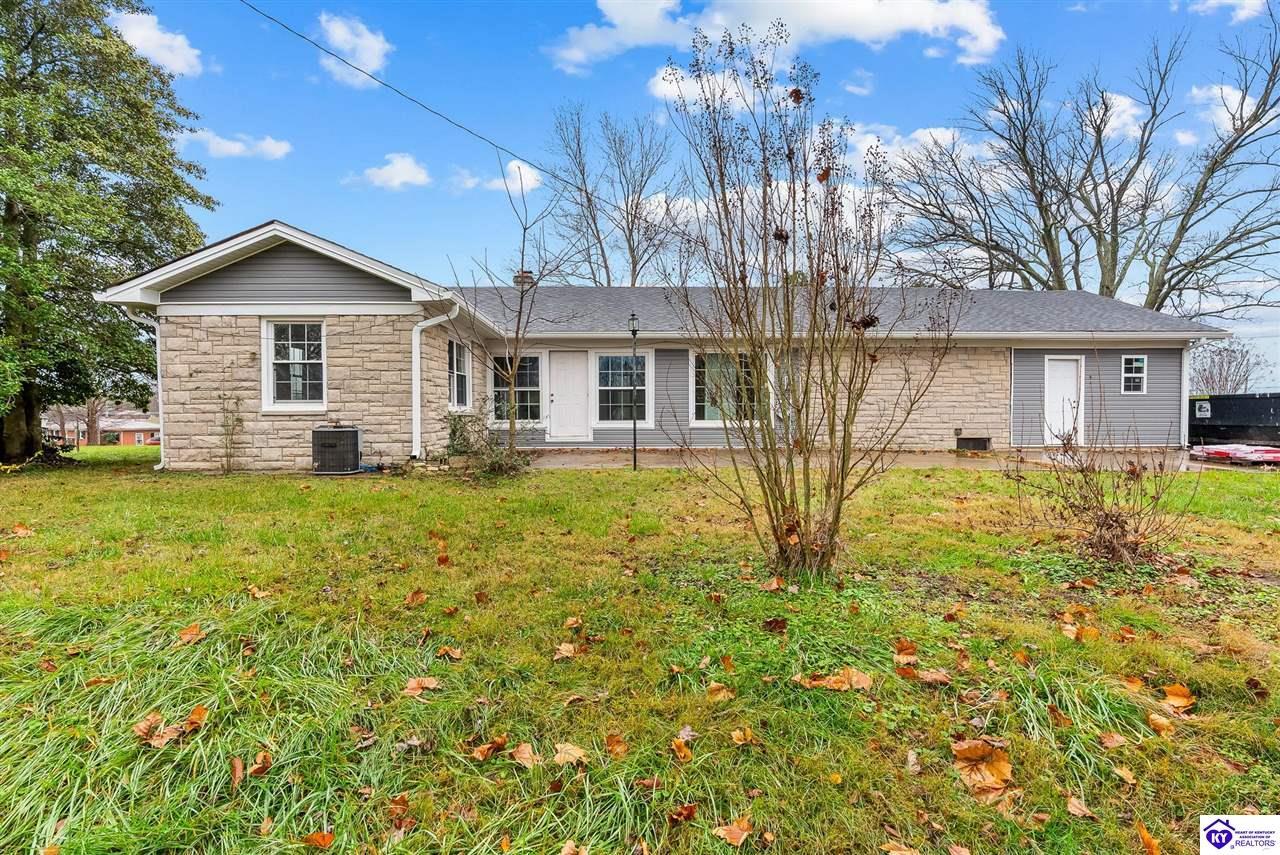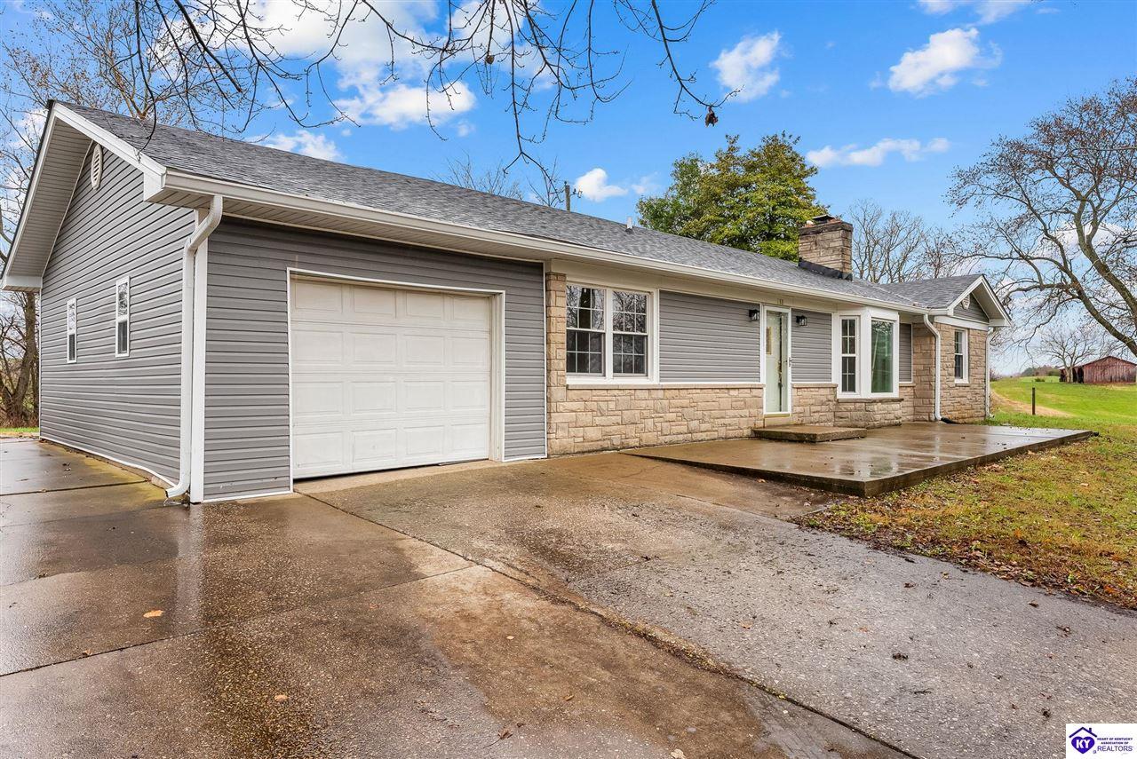 Realtor's notes: Welcome home to this newly updated and remodeled ranch on 2.72 acres of serene Kentucky countryside! Just minutes from Hodgenville and a quick drive to Elizabethtown, this spacious 3-bedroom, 2-bath home blends peaceful rural living with the modern updates today’s buyers are looking for. Step inside to an inviting open layout featuring a split bedroom floor plan, a cozy gas fireplace, and stylish vinyl flooring throughout. The bright kitchen offers granite countertops, stainless steel appliances, and plenty of workspace for cooking and entertaining. The primary suite is generously sized with a private bath and great closet space. Two additional main-level bedrooms sit on the opposite side of the home for added privacy. The partially finished walkout basement adds over 1,000 sq ft of additional living space, perfect for a potential fourth bedroom, family room, home office, or game room with plenty of unfinished storage remaining. Outside, you’ll love the wide-open yard, peaceful views, and room to roam. An attached front-entry garage, city water, electric heat and air, and an asphalt driveway complete this comfortable and convenient package. With nearly 3 acres, almost 3,000 finished square feet, and a move-in ready interior, this home delivers the space, privacy, and value you’ve been searching for. Remodel work will be completed within 30 days.