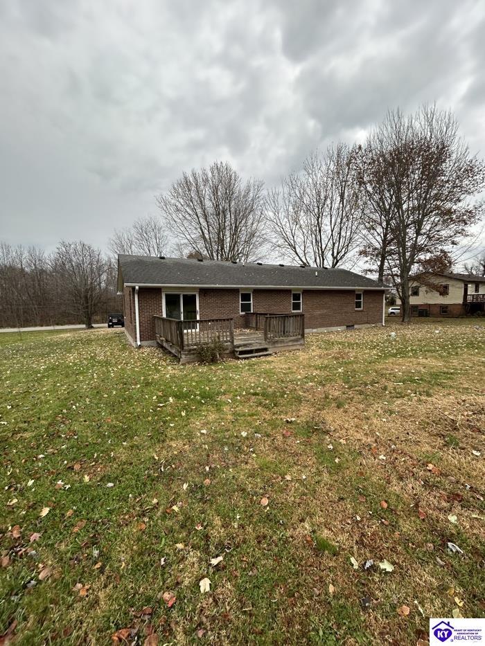 Realtor's notes: Ranch-style home at 2857 Rineyville Big Springs Rd offers 3 bedrooms and 2 full bathrooms, plus an extra room that could serve as a home office. The house features a welcoming covered front porch and a backyard deck that overlooks a private yard — ideal for outdoor relaxation. Inside, the layout combines comfort and practicality, with easy access from living areas to the backyard space. The covered porch and deck enhance outdoor living possibilities, while the extra room adds flexibility to adapt to family or work needs.