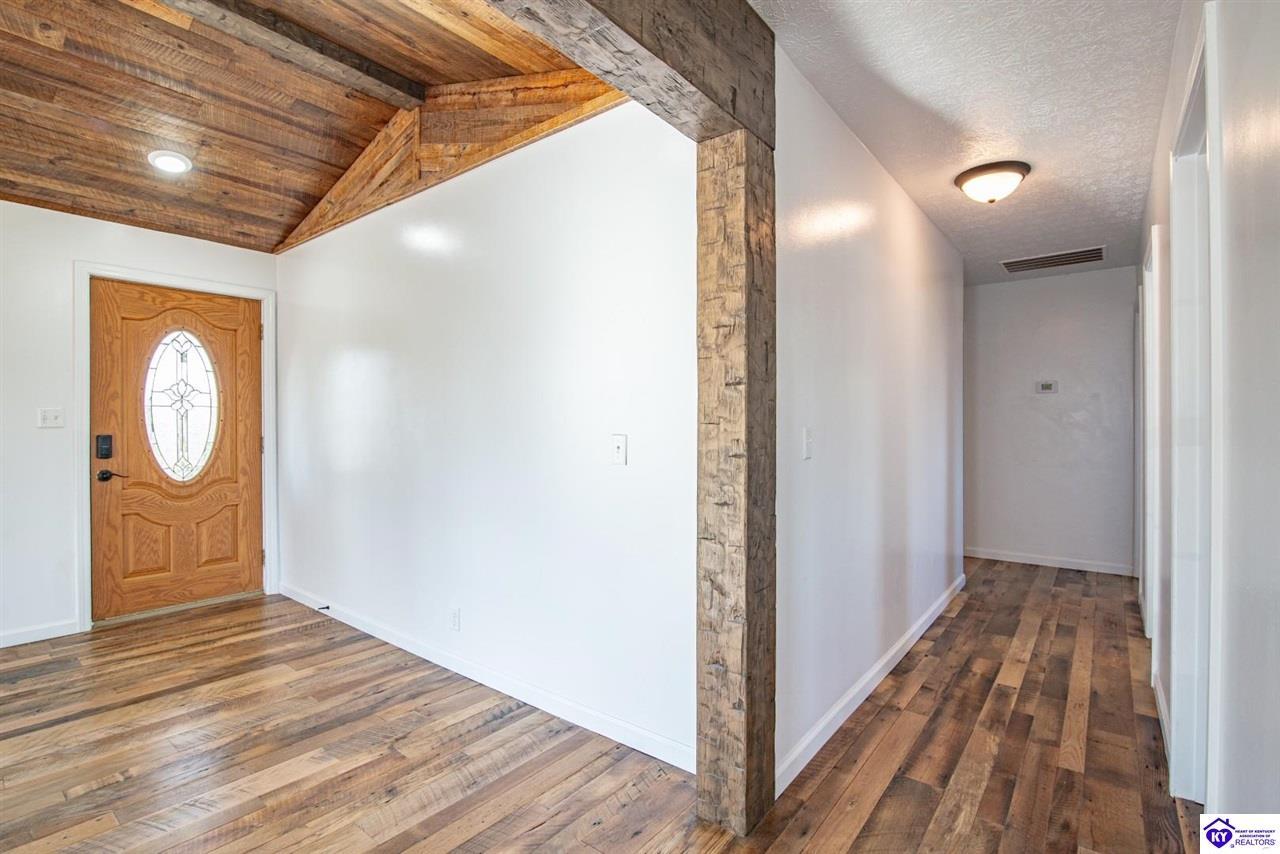 Realtor's notes: Beautifully Updated 3-Bedroom Ranch - Move-In Ready! This fully renovated 3-bedroom ranch features an inviting open floor plan with stunning reclaimed wood flooring and a vaulted ceiling accented in pine. The modern kitchen includes brand-new cabinets, solid-surface countertops, and a spacious island perfect for cooking and entertaining. Enjoy outdoor living on the new deck overlooking a large backyard.