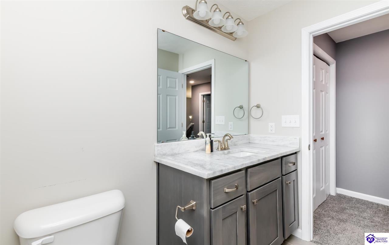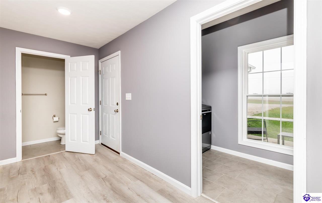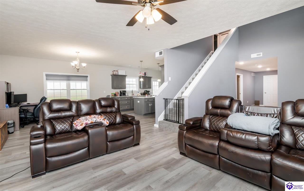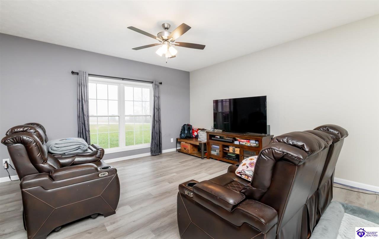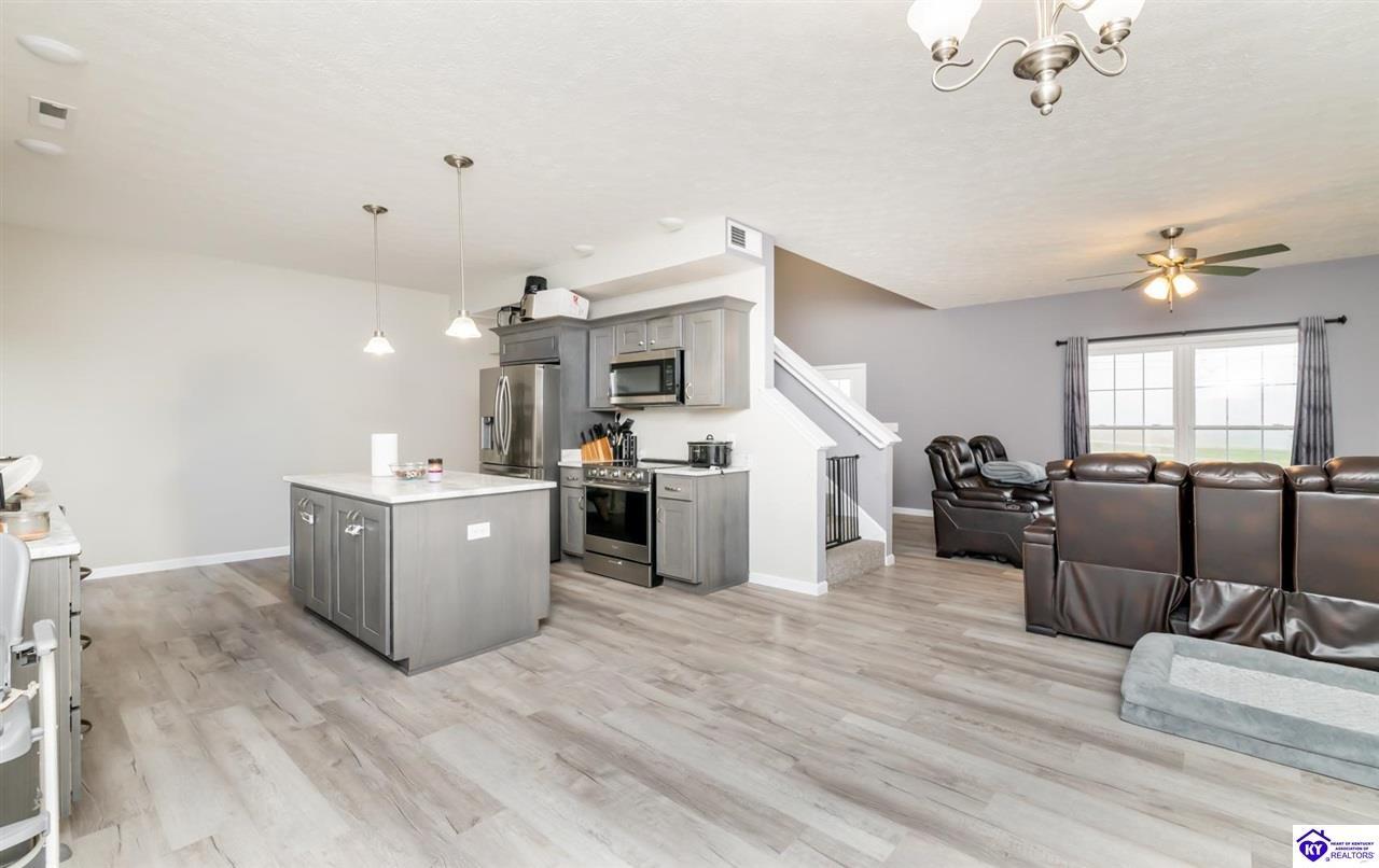 Realtor's notes: Discover modern comfort and peaceful living in this beautiful 1.5-story home situated on 1.16 acres in Brandenburg, KY. Just 3 years old, this well-maintained property offers the perfect blend of contemporary finishes and inviting charm. Step inside to an open, light-filled layout featuring granite countertops, stylish cabinetry, and plenty of space for cooking and entertaining. The first-floor primary bedroom provides convenience and privacy, complete with its own ensuite bath. Upstairs, you’ll find two additional bedrooms and a full bath—ideal for family, guests, or a home office. With 3 bedrooms, 2.5 baths, and over an acre of outdoor space to enjoy, this property delivers room to relax, grow, and make your own. Whether you envision gardening, outdoor gatherings, or simply taking in the scenery, the possibilities are endless. A rare find in a desirable location—move-in ready and waiting to welcome you home.