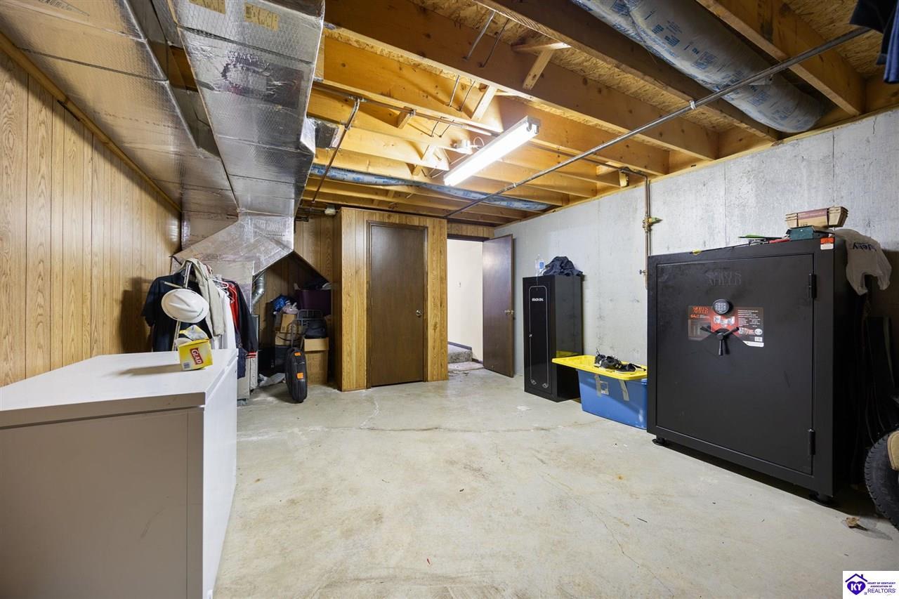 Realtor's notes: Nestled among mature trees on a peaceful 1.35-acre lot, this all-brick ranch offers the perfect blend of privacy and convenience. Ideally located just minutes from the Patriot Parkway, you’ll enjoy an easy commute to Fort Knox, Elizabethtown, and surrounding amenities. Well-maintained and move-in ready, this home is a blank canvas—comfortable as-is, yet priced right for any updates you may wish to make. The main level features 3 bedrooms and 2 full baths, along with a spacious living area that welcomes natural light. The partially finished basement adds valuable extra space with a cozy family room, a half bath, a utility room, and access to a 1-car garage. With no HOA fees and room to stretch out, this property delivers the privacy and flexibility you’ve been searching for. Don’t miss your chance to make it yours. Schedule your showing today before it’s gone!