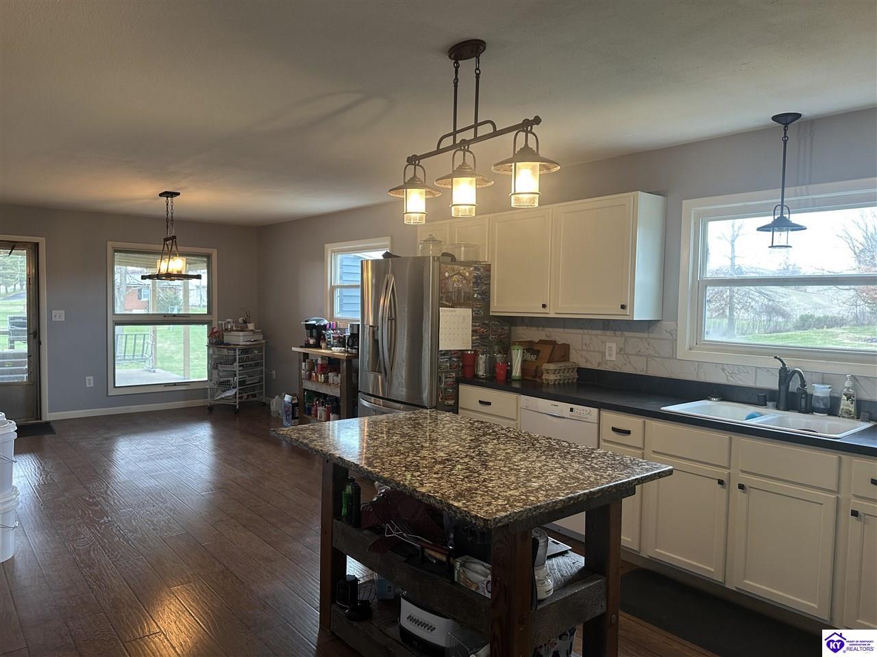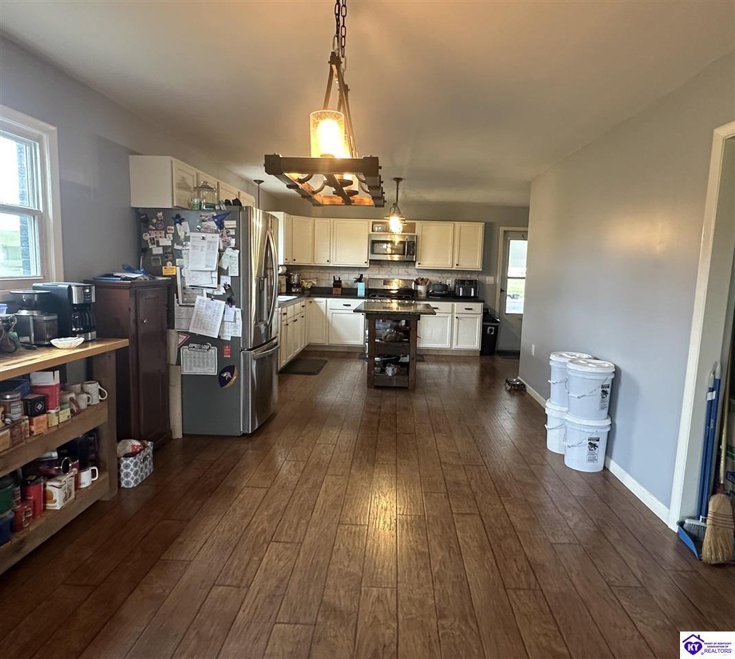 Realtor's notes: NEW LISTING with a ton of room and charm featuring 3 (Could be 5) Bedrooms as there are 2 rooms in the Unfinished, Walk-out Basement, 2 Baths, an Office, and an Open Concept Kitchen and Dining, Enjoy the fireplace this winter as you snuggle up on the couch. This uniquely designed home offers a covered back patio overlooking a beautiful pasture where you can sit and enjoy the sunset. Outside you will enjoy the Detached Garage/Workshop, and the Carport that allows 2 vehicles to park for those rainy and snowy days. This property is conveniently located within 10 minutes to Campbellsville and within 25 minutes to Lebanon. A MUST SEE! Data believed correct; however, not guaranteed. Buyer to verify data prior to offer.
