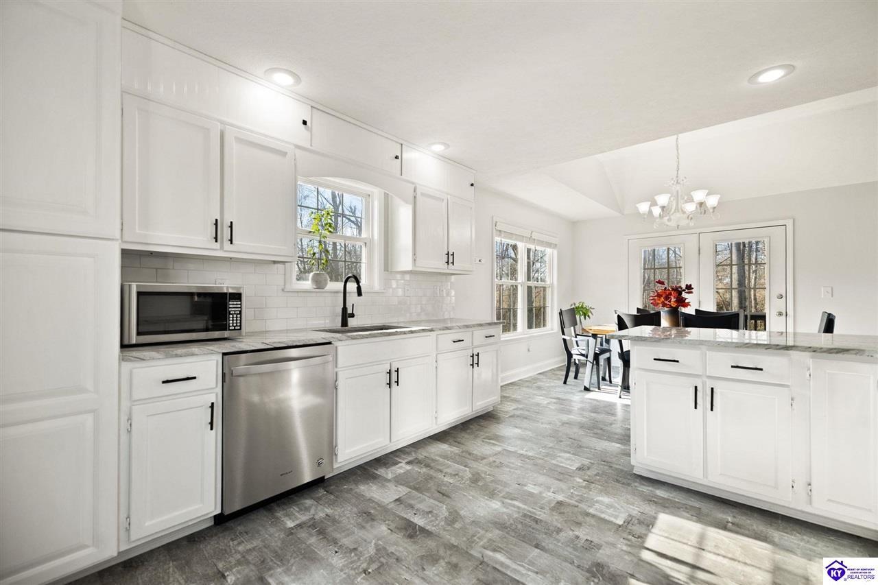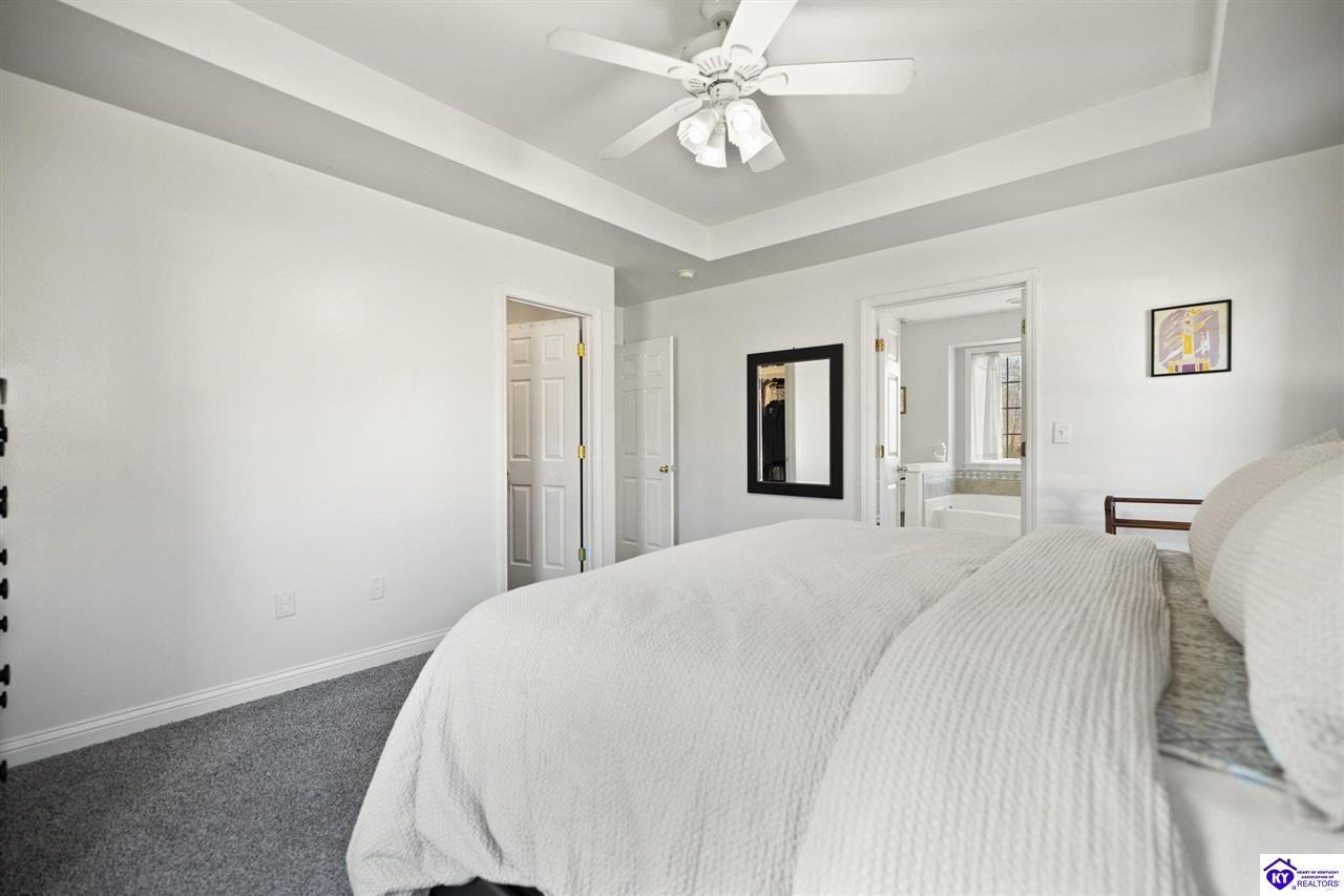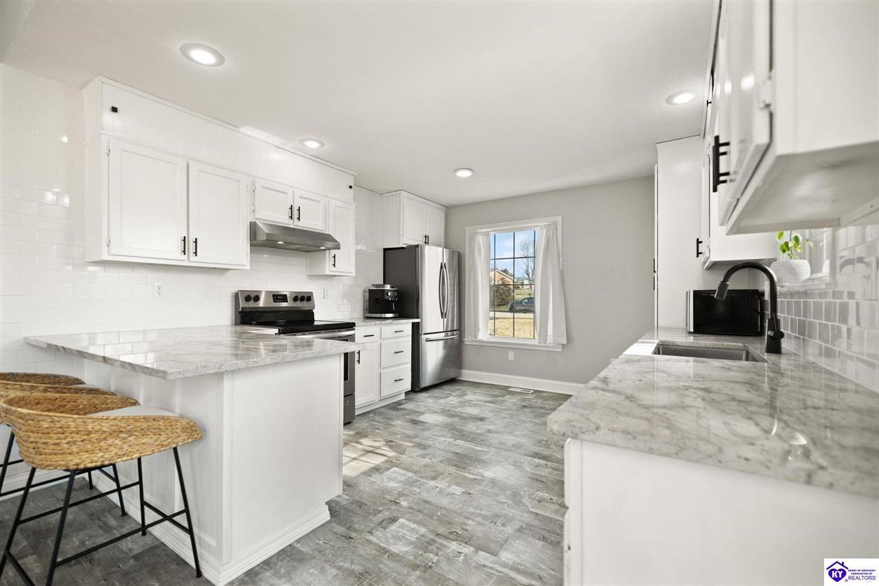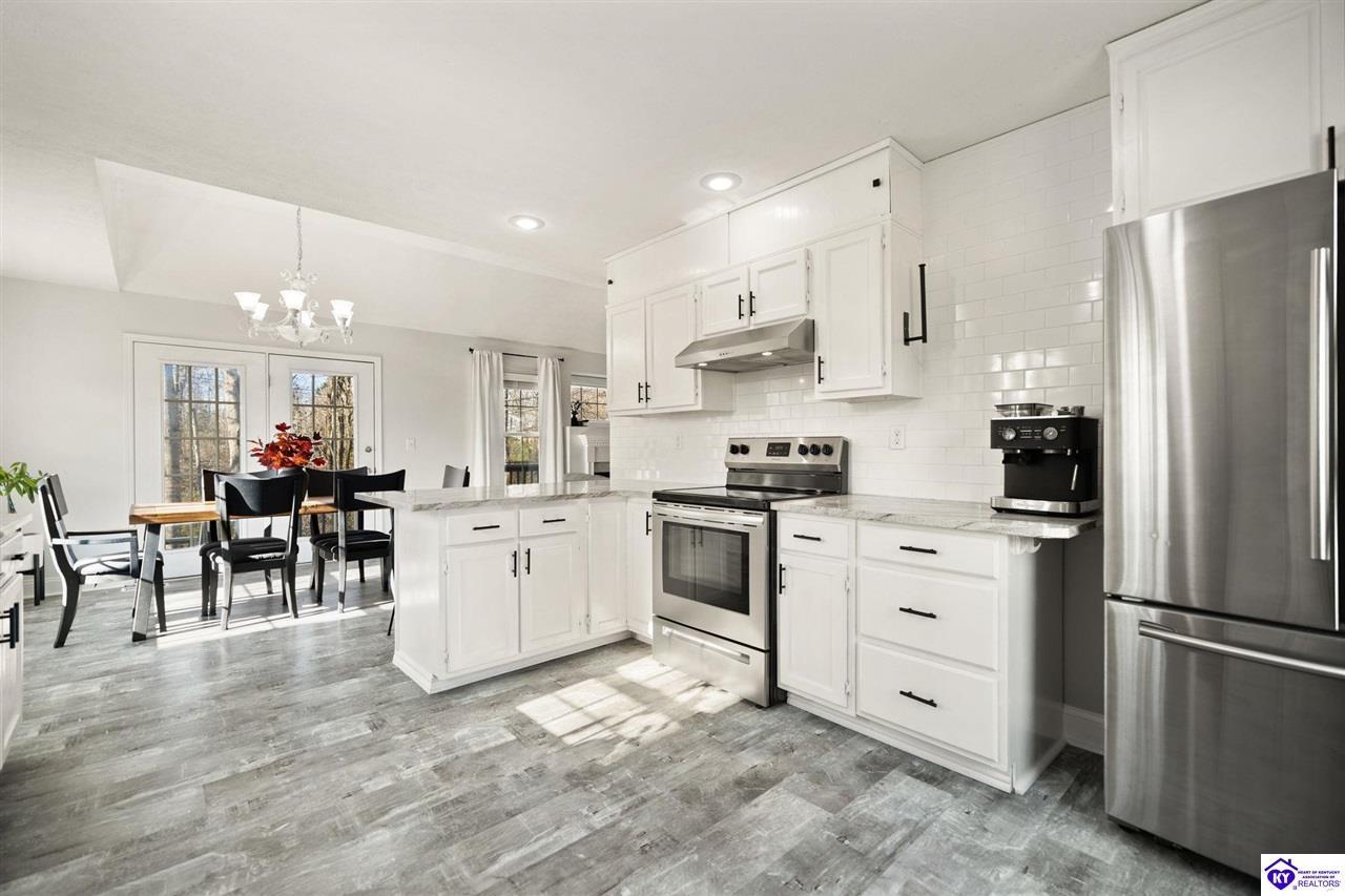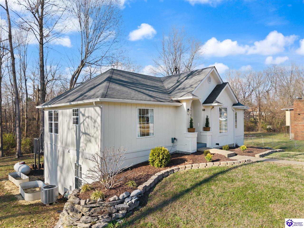 Realtor's notes: Welcome to 608 Harvard Dr a beautifully updated home nestled in a peaceful setting with a wooded backyard in Elizabethtown. This move-in-ready property offers modern upgrades, spacious living areas, and thoughtful details throughout. The kitchen was tastefully refreshed with granite countertops, a new sink, and a stylish tile backsplash , complemented by all new kitchen appliances installed in 2020 perfect for everyday living and entertaining. The home features fresh, neutral paint throughout, including the garage, creating a bright and cohesive feel. The main living area boasts new LVP flooring and soaring 10’ ceilings, while the living room centers around a propane gas fireplace for cozy evenings. The primary suite features a tray ceiling, plush new carpet , and an updated en-suite bath with dual granite vanities and new sinks. All bathrooms include tile flooring, plus a new powder room vanity for added convenience. Downstairs, the walkout basement offers additional living space with tile and laminate flooring , accented walls in the basement bedroom, and versatility for guests, a home office, or recreation area. Outside, enjoy a wooded backyard from the large deck or patio. The backyard also includes a shed with electric, ideal for storage or a workshop. Additional highlights include upgraded electrical fixtures, a two-car garage with automatic openers, and auxiliary heat added to the furnace in 2024 for extra comfort and efficiency. This home combines modern updates with timeless comfort in a desirable location schedule your private tour today and experience everything 608 Harvard Dr has to offer.