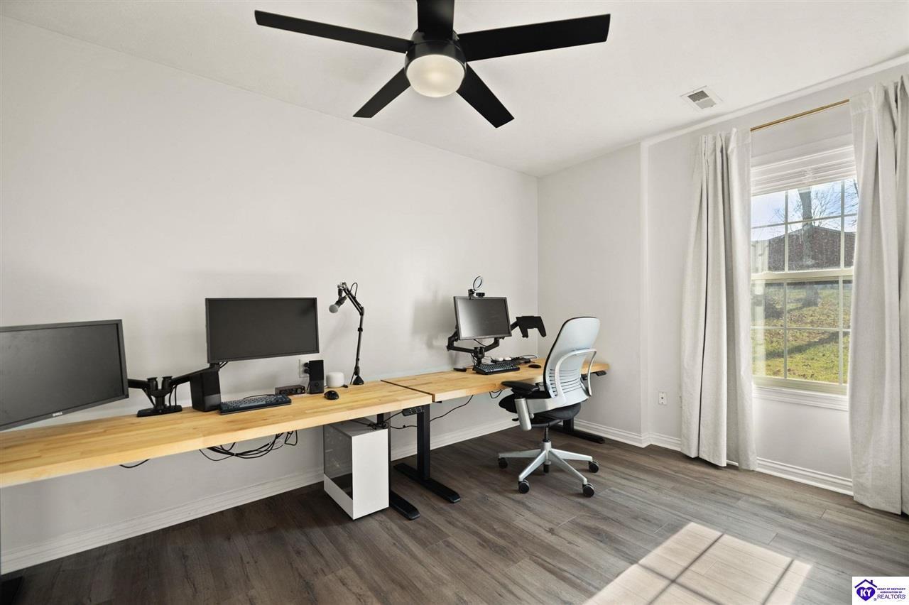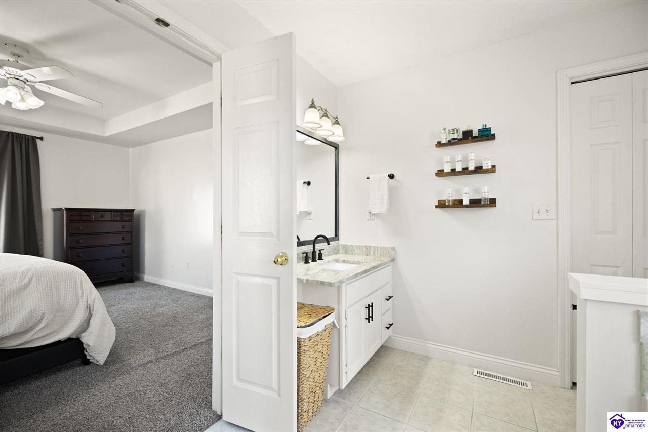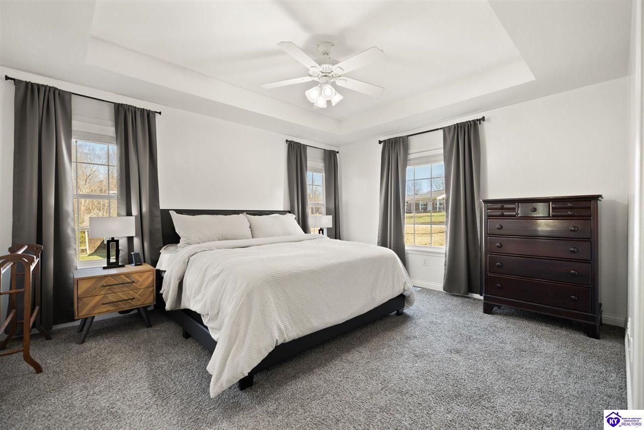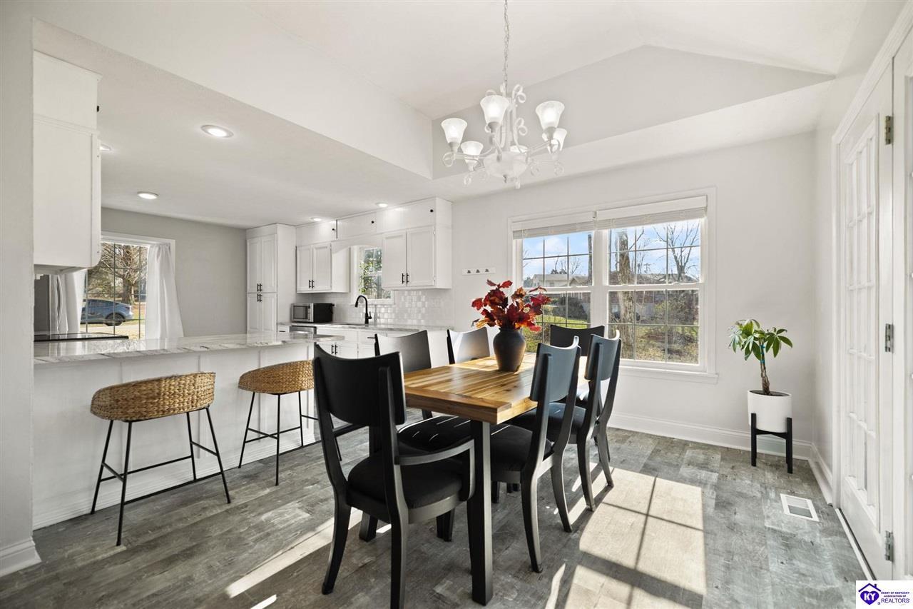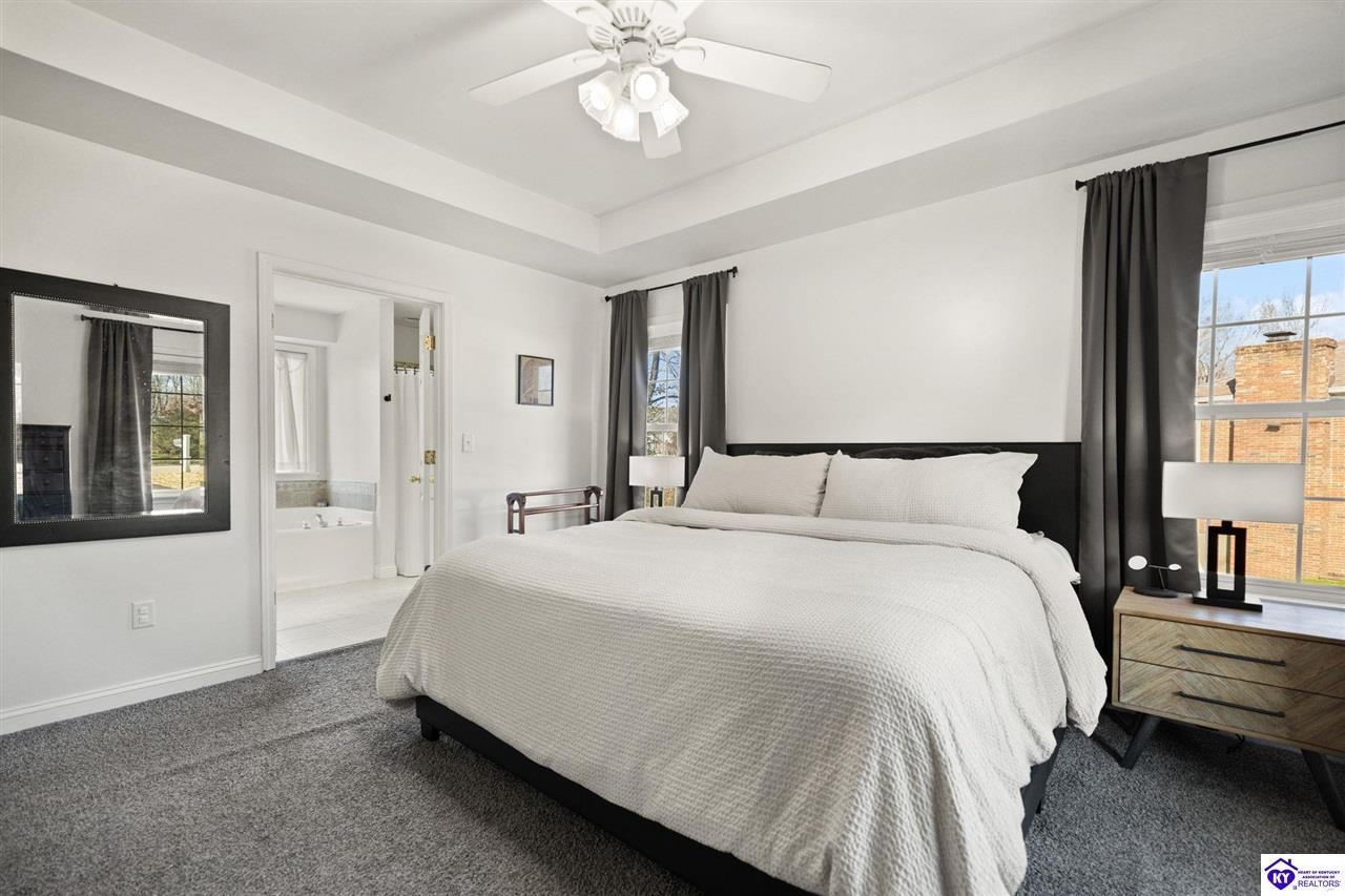 Realtor's notes: Welcome to 608 Harvard Dr a beautifully updated home nestled in a peaceful setting with a wooded backyard in Elizabethtown. This move-in-ready property offers modern upgrades, spacious living areas, and thoughtful details throughout. The kitchen was tastefully refreshed with granite countertops, a new sink, and a stylish tile backsplash , complemented by all new kitchen appliances installed in 2020 perfect for everyday living and entertaining. The home features fresh, neutral paint throughout, including the garage, creating a bright and cohesive feel. The main living area boasts new LVP flooring and soaring 10’ ceilings, while the living room centers around a propane gas fireplace for cozy evenings. The primary suite features a tray ceiling, plush new carpet , and an updated en-suite bath with dual granite vanities and new sinks. All bathrooms include tile flooring, plus a new powder room vanity for added convenience. Downstairs, the walkout basement offers additional living space with tile and laminate flooring , accented walls in the basement bedroom, and versatility for guests, a home office, or recreation area. Outside, enjoy a wooded backyard from the large deck or patio. The backyard also includes a shed with electric, ideal for storage or a workshop. Additional highlights include upgraded electrical fixtures, a two-car garage with automatic openers, and auxiliary heat added to the furnace in 2024 for extra comfort and efficiency. This home combines modern updates with timeless comfort in a desirable location schedule your private tour today and experience everything 608 Harvard Dr has to offer.