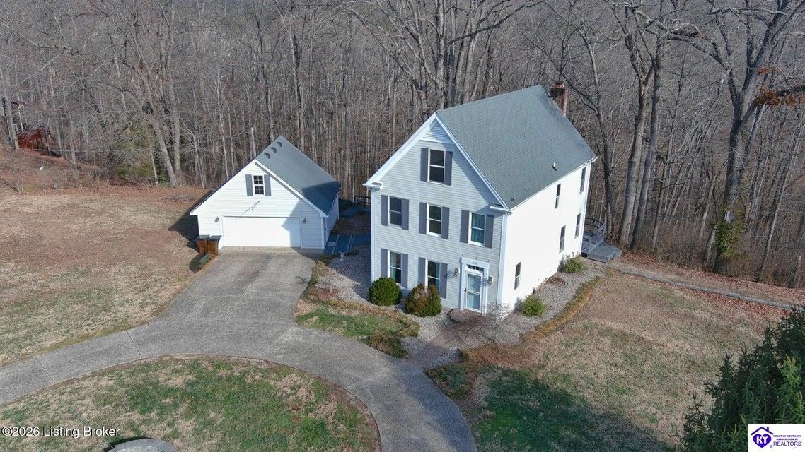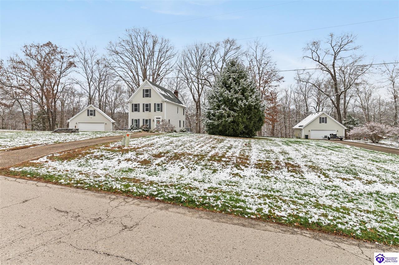 Realtor's notes: Beautiful 2-story home featuring 4 bedrooms and 2.5 baths,situated on 3 gorgeous acres. A grand circular driveway welcomes you. There are two oversized 2.5-car garages, each offering loft space. Inside, wood floors grace the entryway, leading to an office/parlor, flowing into the dining room and kitchen. The eat-in kitchen boasts an island and coffee bar. The living room with a cozy fireplace and access to the large deck overlooking peaceful woods. A powder room completes the main floor.Upstairs, the primary suite includes a private bath. Three additional bedrooms and a full hall bath. A bonus loft offers extra guest space, an office, or playroom. One of the garages has been transformed into the ultimate man-cave, complete with a bar and a loft—ideal for entertaining or relaxing.