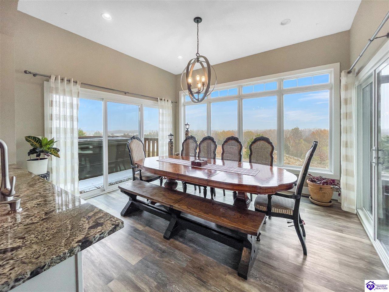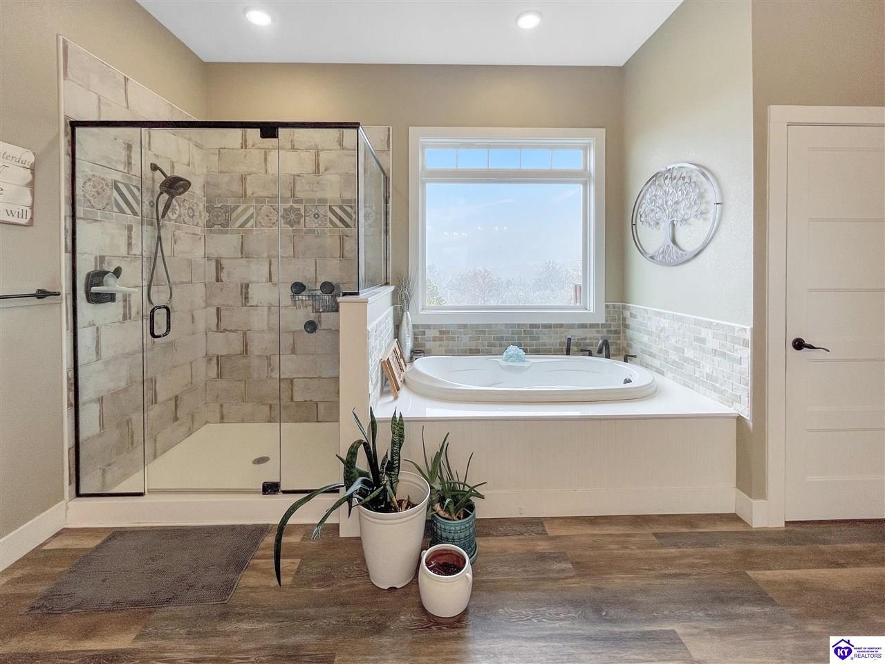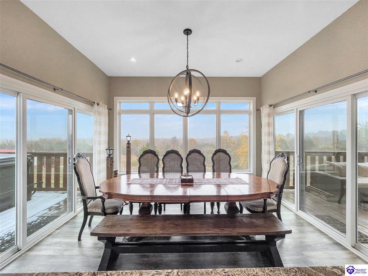 Realtor's notes: Set on a private cul-de-sac, this custom built home sits on 6.75 acres of land. When you walk in, you step into the living room and your attention is immediately pulled toward the kitchen and dining area because of all the natural light that comes in. With sliding doors on both sides and a large center window, the dining room offers a panoramic view of the backyard and easy access to both decks. The living room has a double-sided fireplace that connects the inside of the home to the back deck. There are two decks, and the primary bedroom has its own private access, leading straight out to the hot tub. A lot of thought went into the layout and design of the primary suite, with a large bathroom that includes custom cabinets, plenty of counter space, a soaking tub, a 5-foot tiled shower, and a huge walk-in closet. On the other side of the main floor are two additional bedrooms with a Jack and Jill bathroom, giving a nice separation from the primary suite. You’ll also find a huge pantry on the main level with lots of shelving and counter space. Downstairs, the basement includes a bedroom, full bathroom, utility garage, a full concrete safe room, storage space, and a fully finished hidden space under the stairs that the owner designed as a fun hideout for kids. The home is also equipped with two HVAC systems and two water heaters