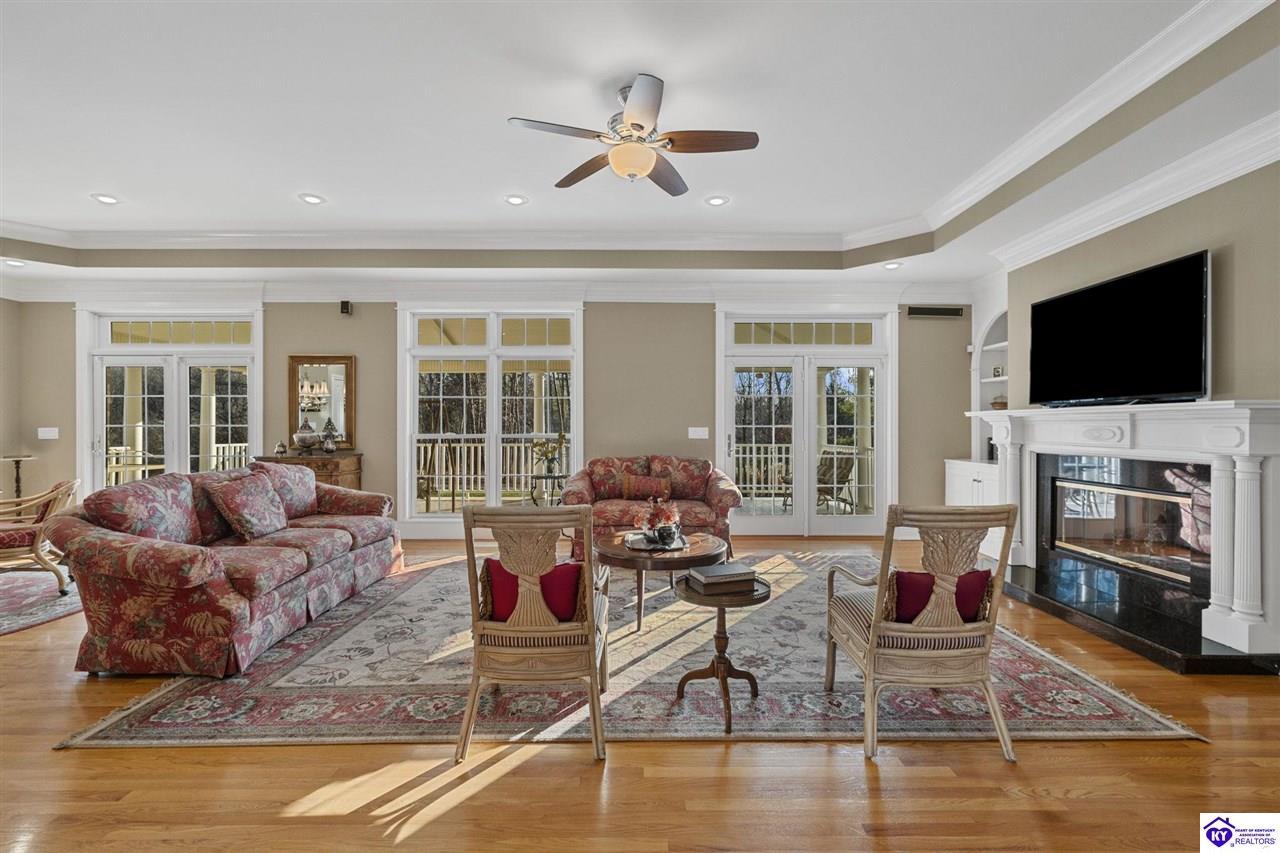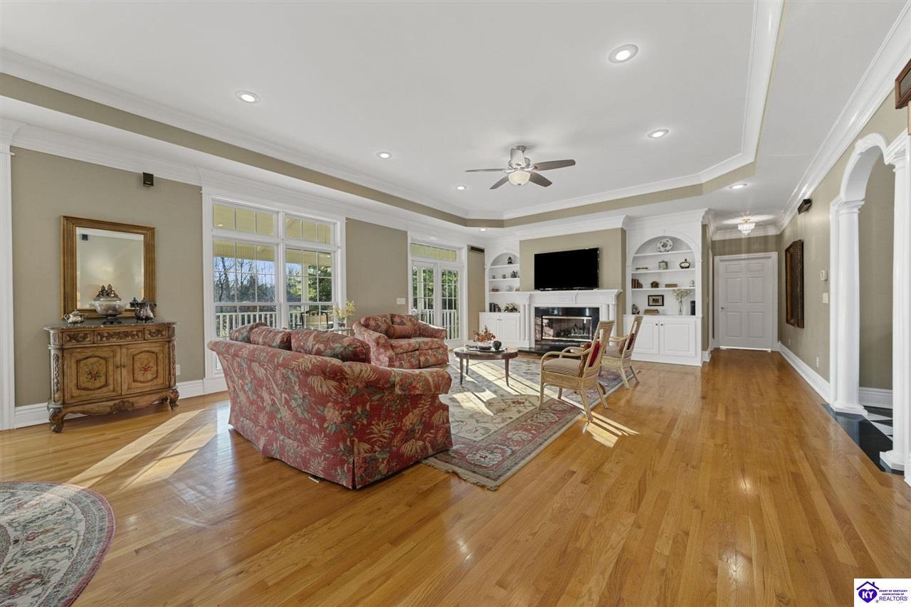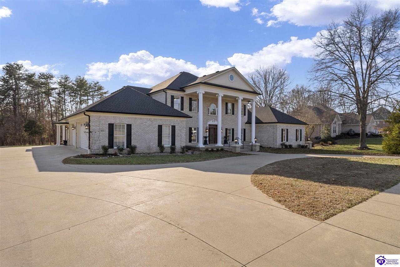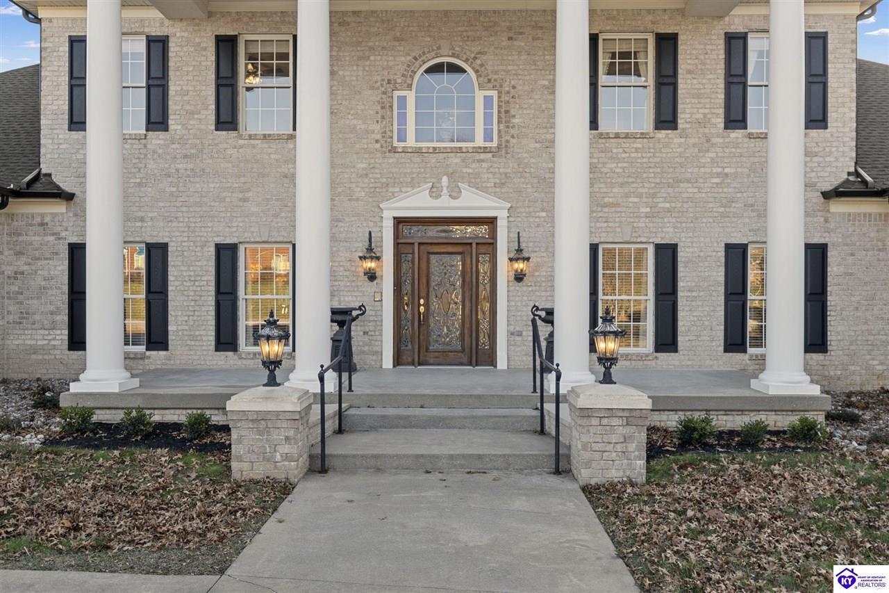 Realtor's notes: Situated in one of Hardin County’s most prestigious subdivisions, this estate-caliber, custom-built residence offers an exceptional lifestyle just moments from Freeman Lake Park, where scenic walking and biking trails, tennis courts, playgrounds, and outdoor recreation are all within walking distance. Designed and meticulously maintained by its original owner, this home reflects timeless architecture, elevated craftsmanship, and enduring quality throughout. The interior is truly impressive. The open-concept main level is flooded with natural light, creating a seamless flow ideal for both everyday living and elegant entertaining. A dramatic two-story foyer welcomes you with a striking marble entryway, immediately establishing the refined tone found throughout the home. With over 9,100 square feet of finished living space, the residence features 5 spacious bedrooms, 5 full bathrooms, and 1 half bath, offering comfort, privacy, and flexibility on a grand scale. The fully finished walkout basement is designed for unforgettable gatherings, featuring expansive entertaining areas, a convenient kitchenette, and a private bedroom with a full bathroom, perfect for guests or multi-generational living. Additional highlights include a three-car garage with level interior access for wheelchair accessibility, a large covered back porch ideal for outdoor entertaining, and a backyard perfectly positioned for a future luxury pool. This remarkable home is an entertainer’s dream, combining sophistication, scale, and an unbeatable location in one of Elizabethtown’s most coveted communities.