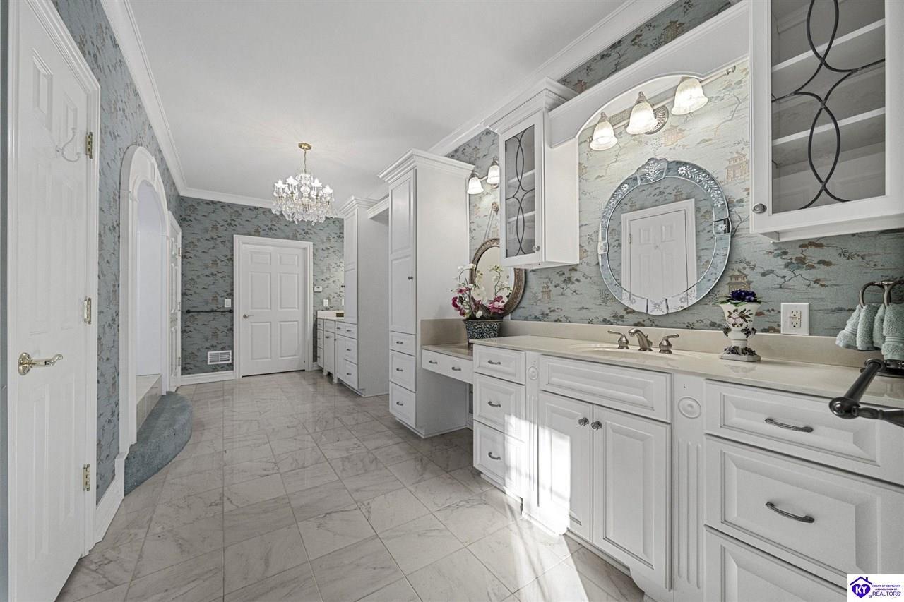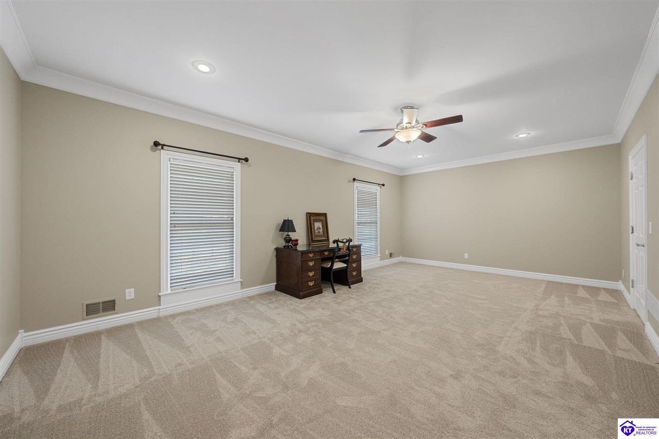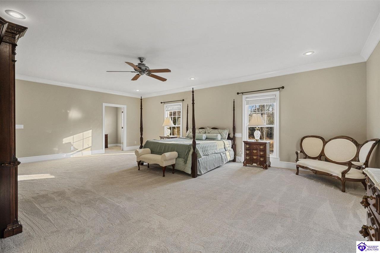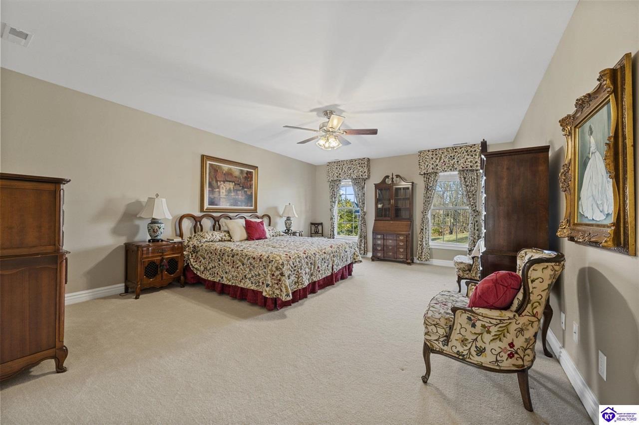 Realtor's notes: Situated in one of Hardin County’s most prestigious subdivisions, this estate-caliber, custom-built residence offers an exceptional lifestyle just moments from Freeman Lake Park, where scenic walking and biking trails, tennis courts, playgrounds, and outdoor recreation are all within walking distance. Designed and meticulously maintained by its original owner, this home reflects timeless architecture, elevated craftsmanship, and enduring quality throughout. The interior is truly impressive. The open-concept main level is flooded with natural light, creating a seamless flow ideal for both everyday living and elegant entertaining. A dramatic two-story foyer welcomes you with a striking marble entryway, immediately establishing the refined tone found throughout the home. With over 9,100 square feet of finished living space, the residence features 5 spacious bedrooms, 5 full bathrooms, and 1 half bath, offering comfort, privacy, and flexibility on a grand scale. The fully finished walkout basement is designed for unforgettable gatherings, featuring expansive entertaining areas, a convenient kitchenette, and a private bedroom with a full bathroom, perfect for guests or multi-generational living. Additional highlights include a three-car garage with level interior access for wheelchair accessibility, a large covered back porch ideal for outdoor entertaining, and a backyard perfectly positioned for a future luxury pool. This remarkable home is an entertainer’s dream, combining sophistication, scale, and an unbeatable location in one of Elizabethtown’s most coveted communities.